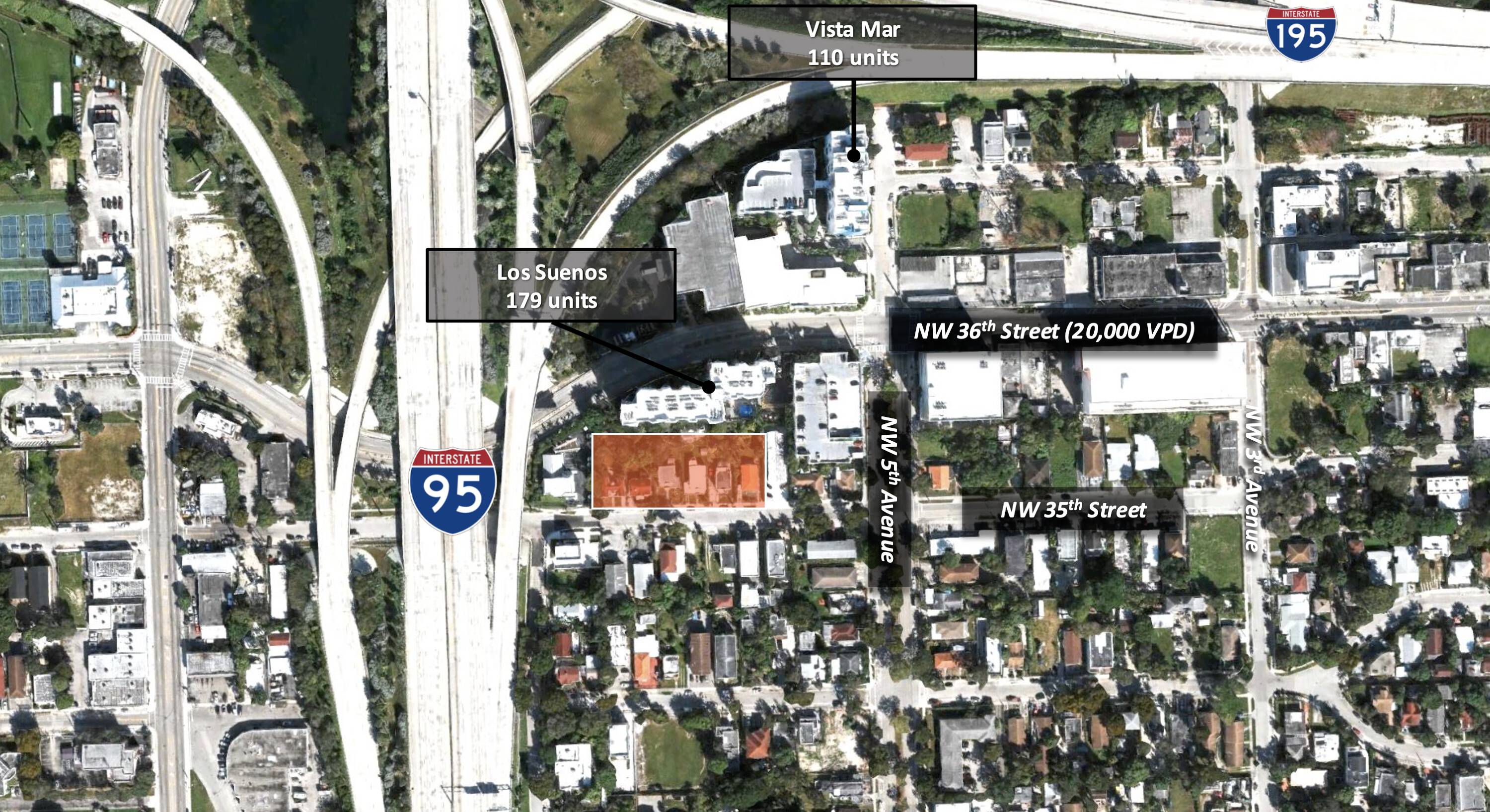 This 41,025 square foot infill development site is located at 535-585 NW 35th Street, Miami, FL 33127. Zoned T5-O, the property permits up to 5 stories, plus an additional 3 with bonus, and 150 residential units per acre by right. Approved uses include residential, hotel, office, and mixed-use via bonus with the recently implemented NRD-2 zoning overlay. The site will be sold permit-ready, allowing for 141 units as approved. The site offers the opportunity to capitalize on the Live Local Act (LLA) and potentially develop up to 20 stories and 350 residential units. The LLA allows the site to utilize the maximum height within 1 mile, which is T6-36-O, allowing 36 stories pulled from nearby sites in Edgewater and Midtown. Furthermore, the maximum units per acre can be 1,000, and the maximum FLR is 36, per the City of Miami LLA processes and procedures. The property consists of six folios and is strategically located on NW 35th Street between NW 5th Ave and NW 6th Ave, the northeastern corridor of Wynwood Norte, minutes away from Miami’s trendy Wynwood Arts District, Midtown Miami, and the Design District. The site is highly accessible from the I-195 exit at North Miami Avenue, which connects to I-95, with approximately 140,000 daily car traffic.