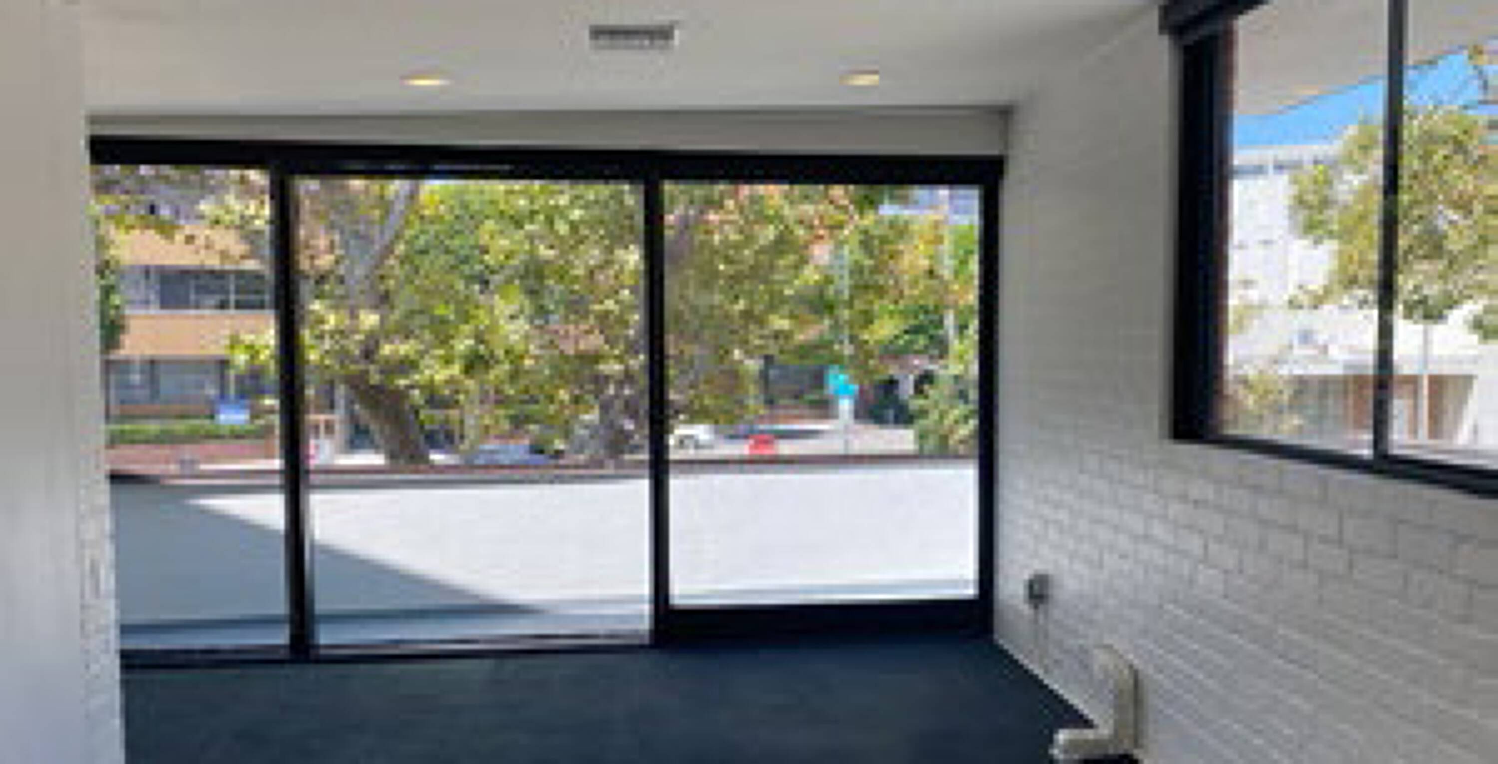 Office space is available for rent in Beverly Hills. The space features floor-to-ceiling glass, a bathroom, a marble entry, three window offices, a conference room, and interior offices. It is located one block south of Olympic Boulevard, fronting on Beverly Drive, just outside the Beverly Hills triangle and near restaurants and shops.
