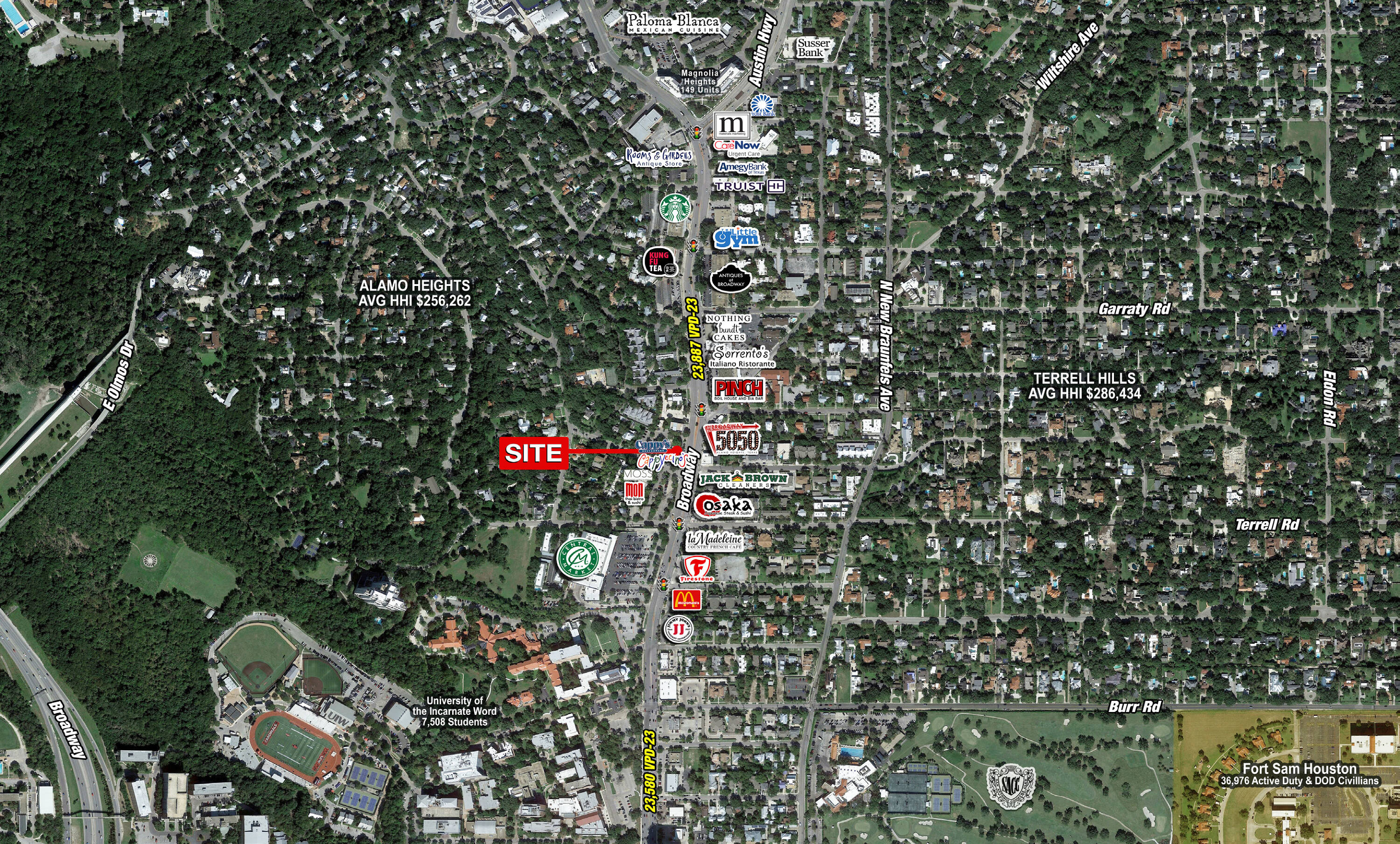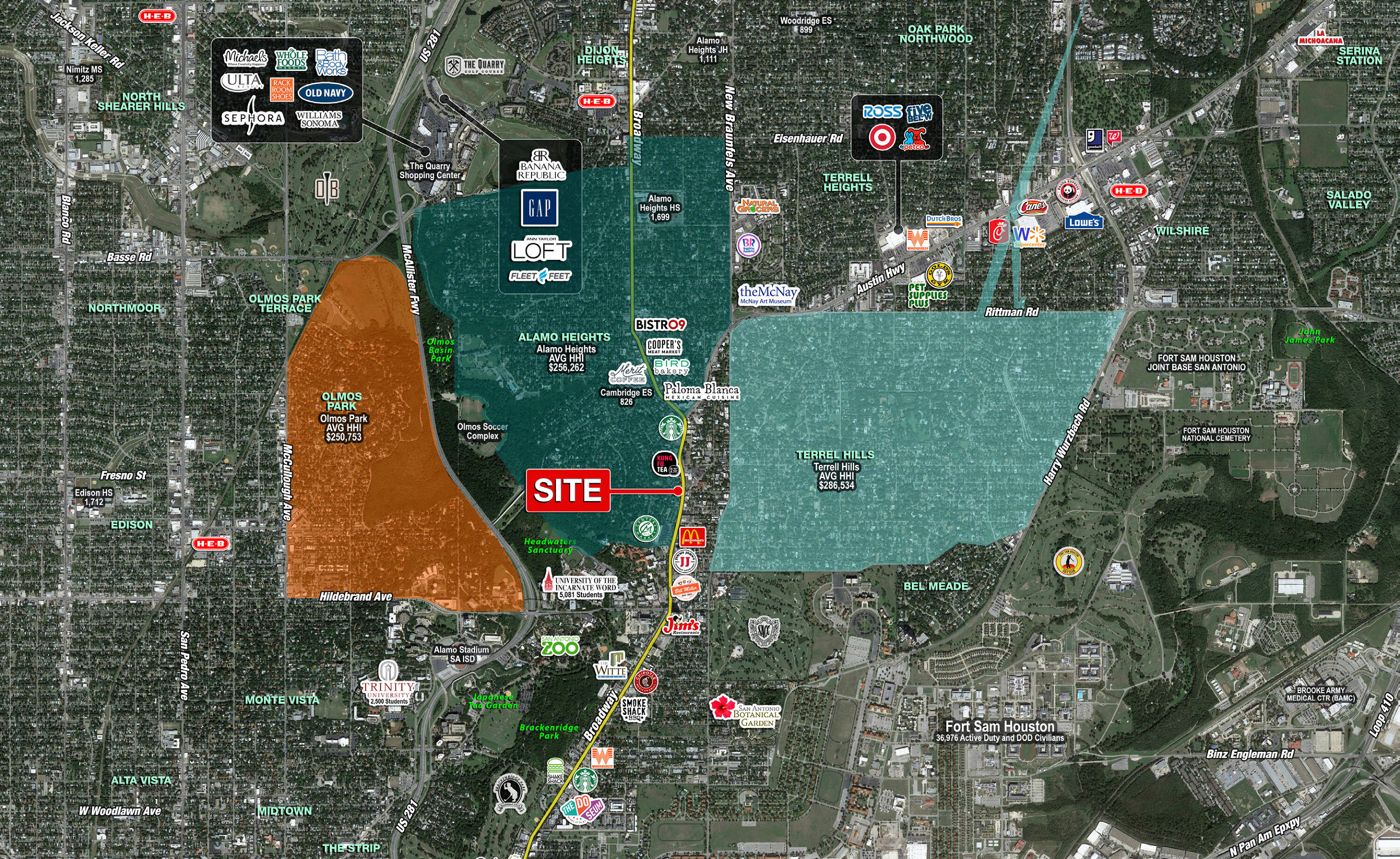 This property features: Located in the center of affluent neighborhoods (Terrell Hills & Alamo Heights).; Adjacent to the only HEB Central Market in the city.; Well‑positioned, mixed‑use project.