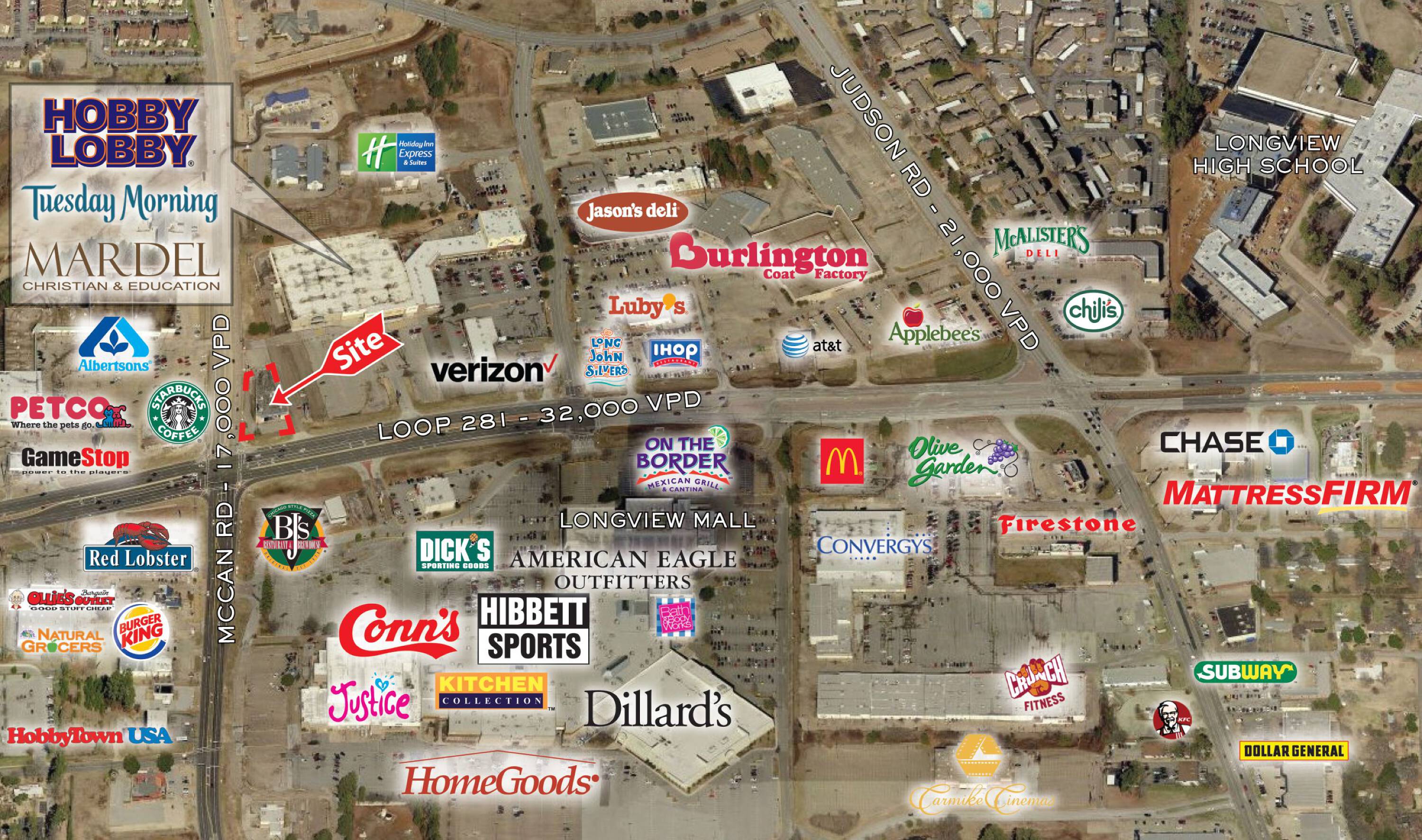 Prime retail space available at a top intersection in Longview.