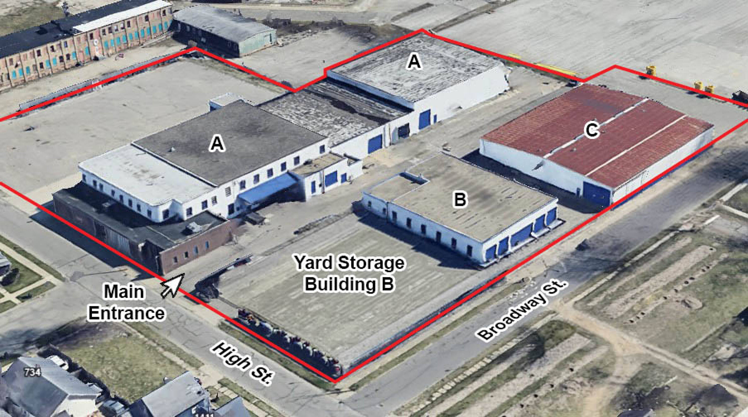 Industrial complex with multiple buildings near downtown South Bend.