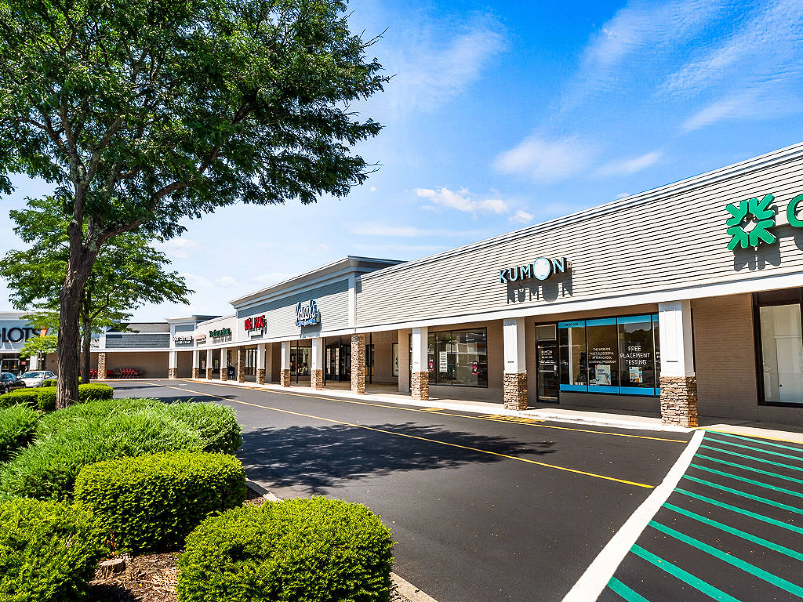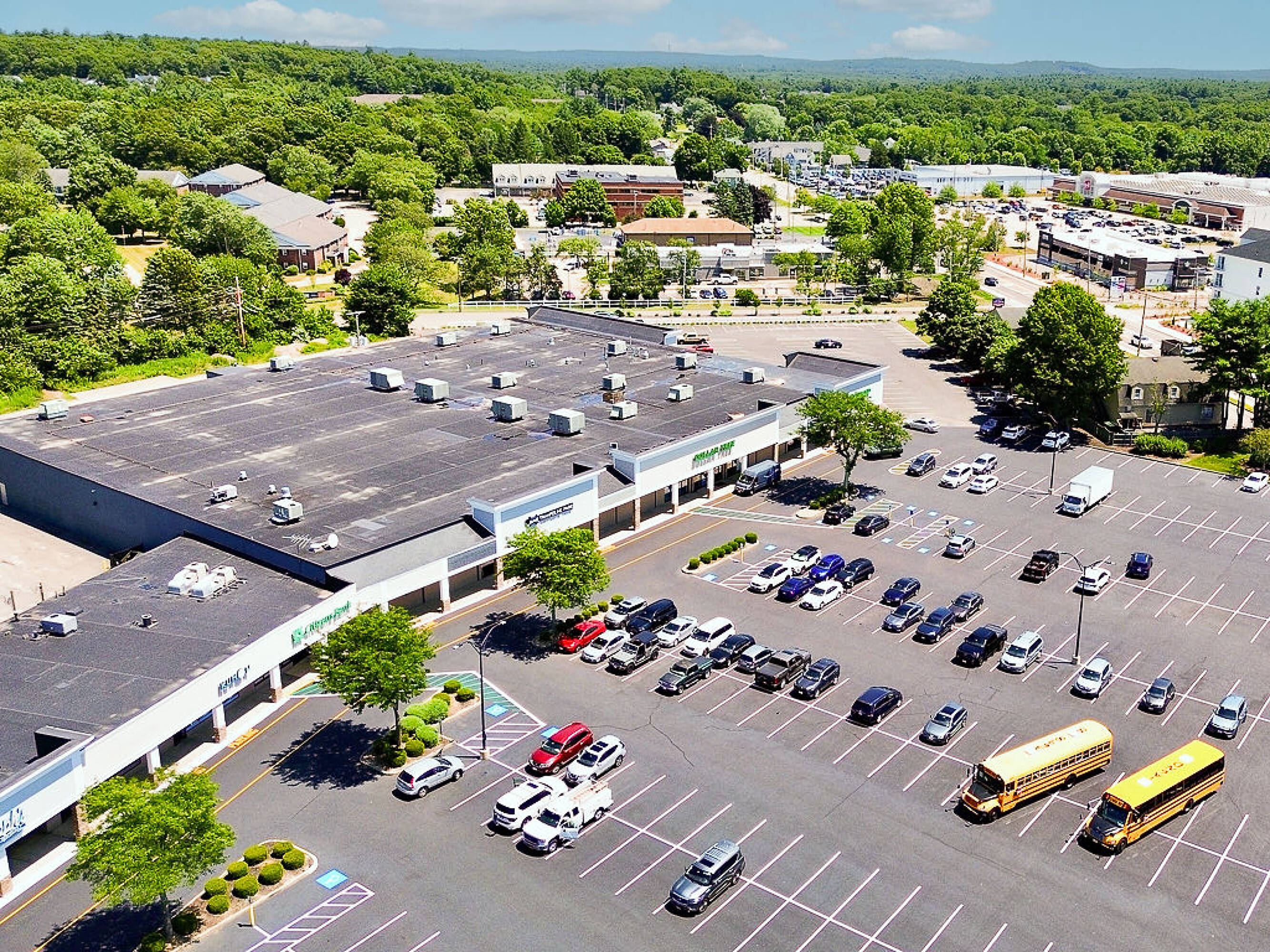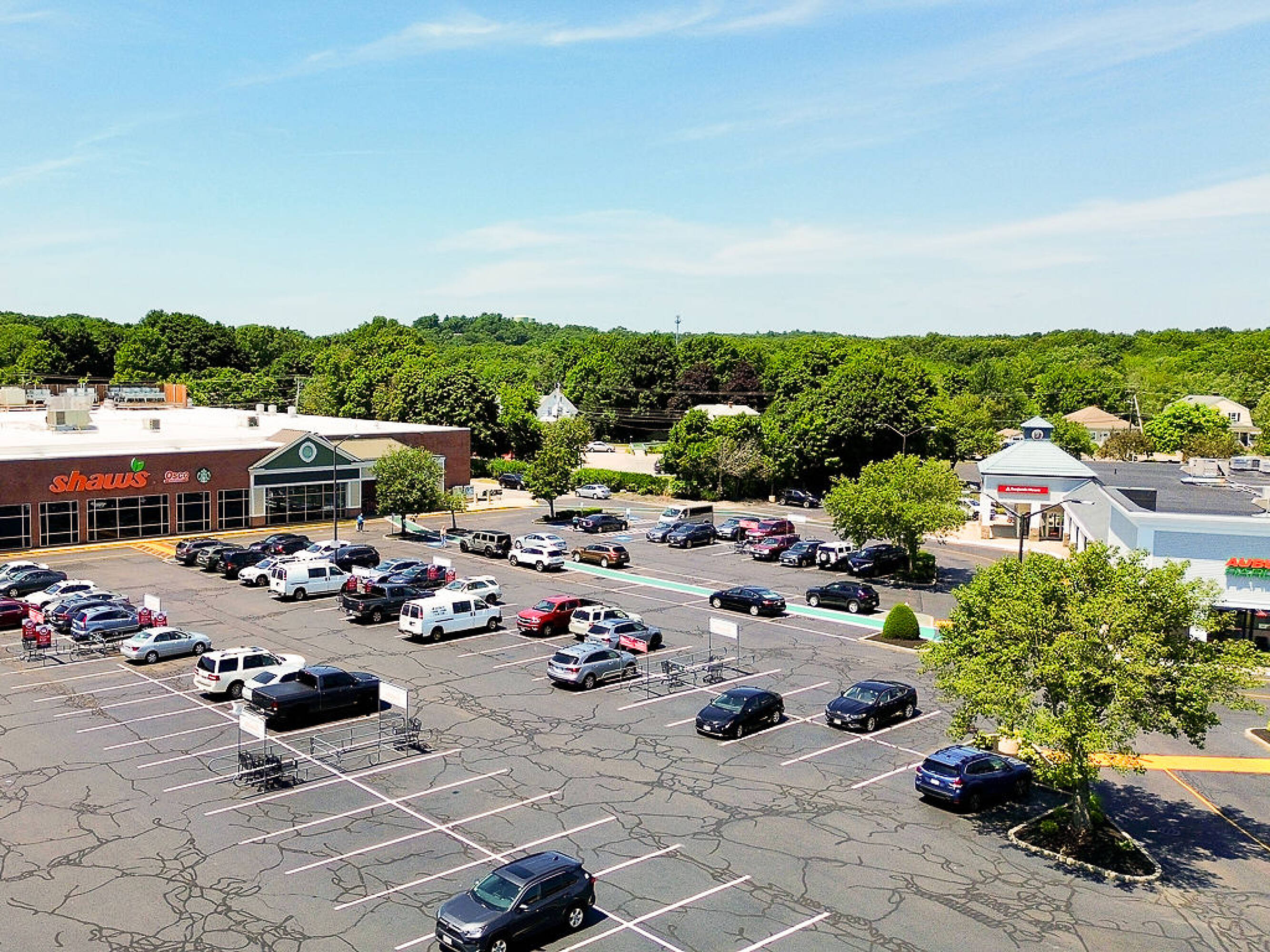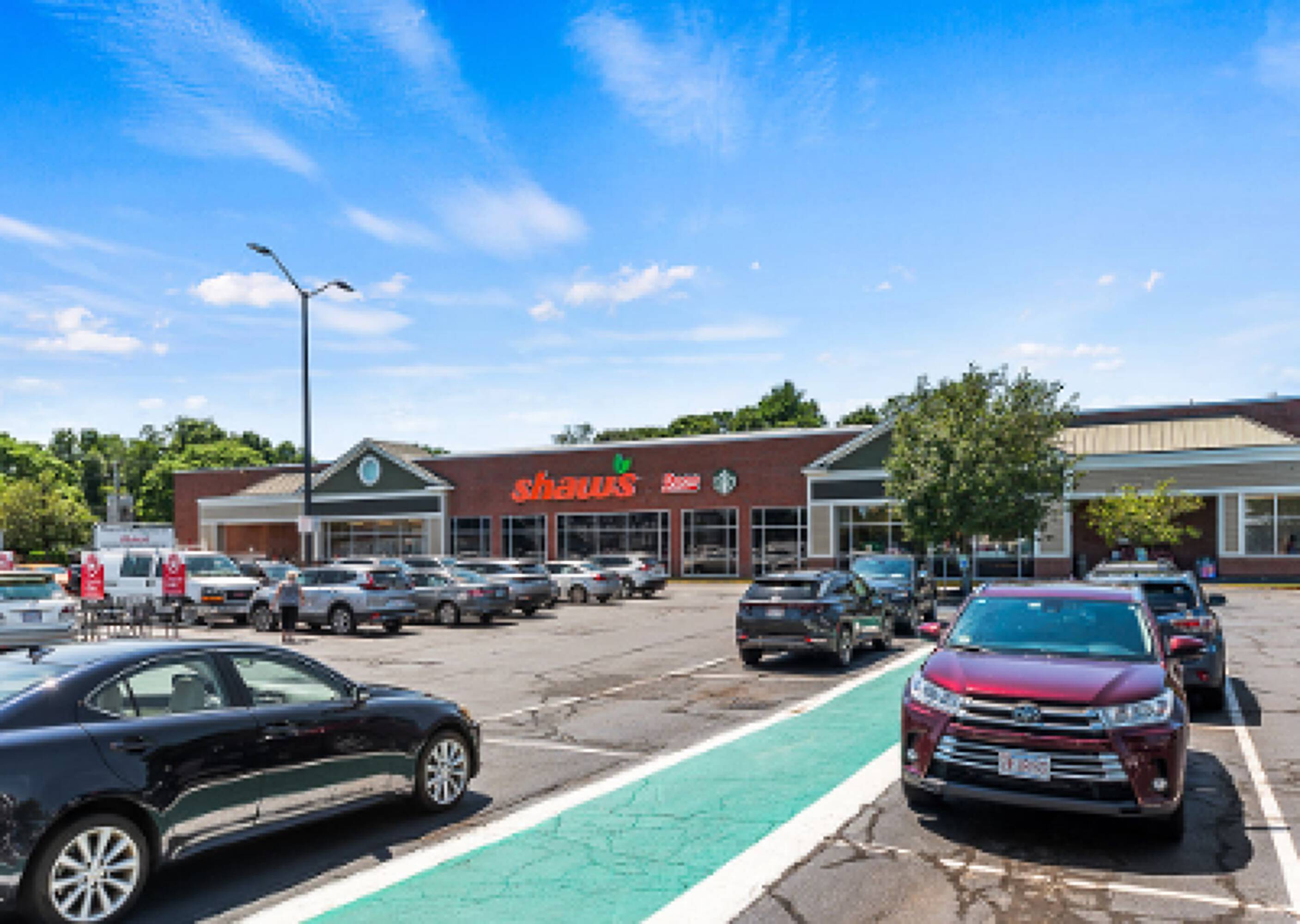 Premier shopping center anchored by Shaws Supermarket in Franklin, MA.