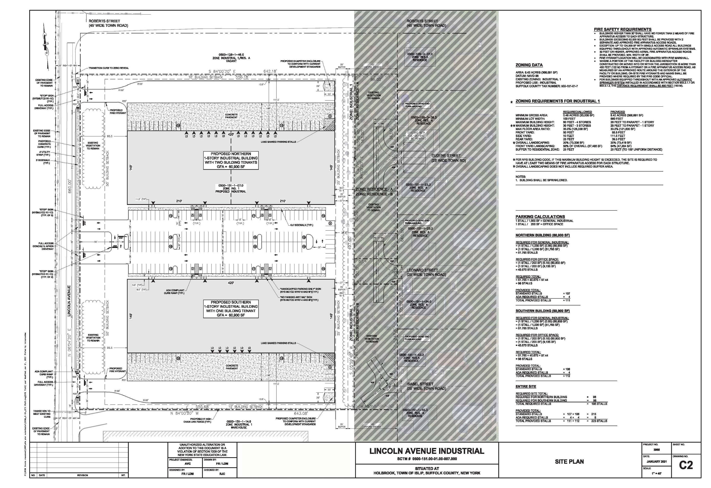 Industrial development site with approved plans for two 60,000-SF buildings.