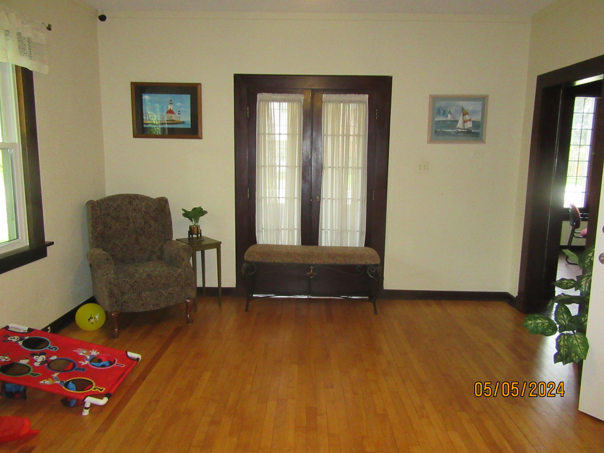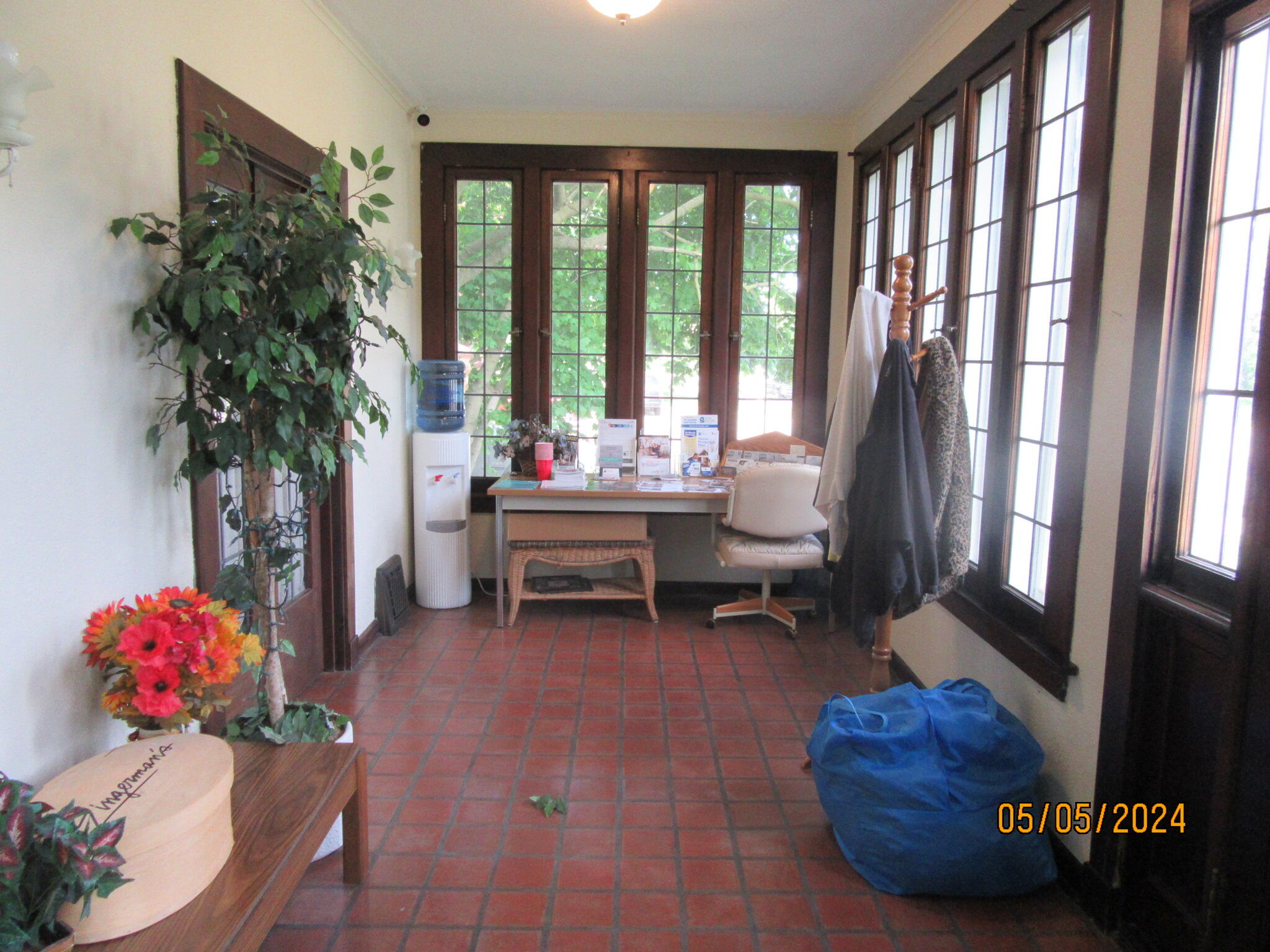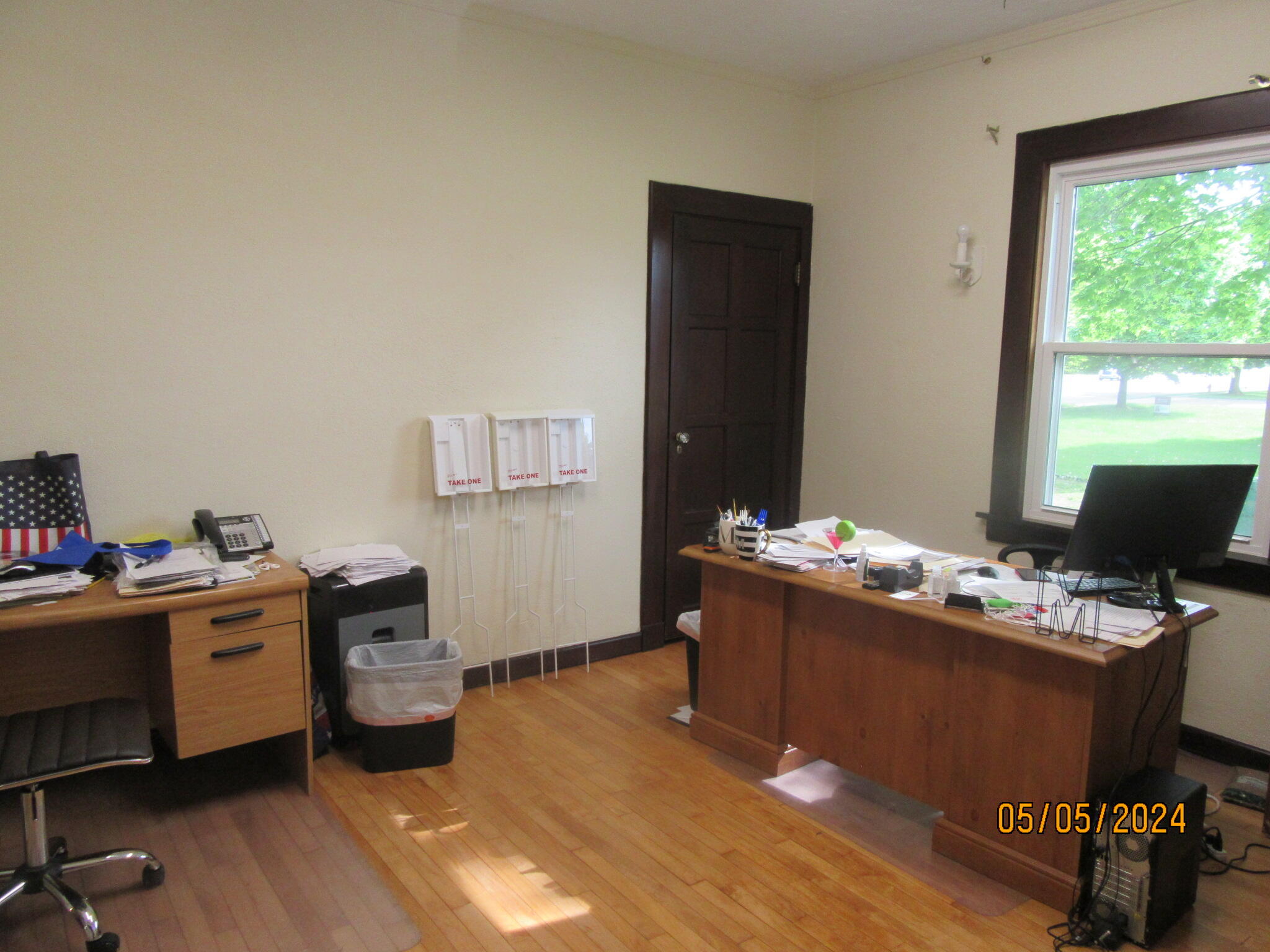 Office building with hardwood floors and a large carriage garage.