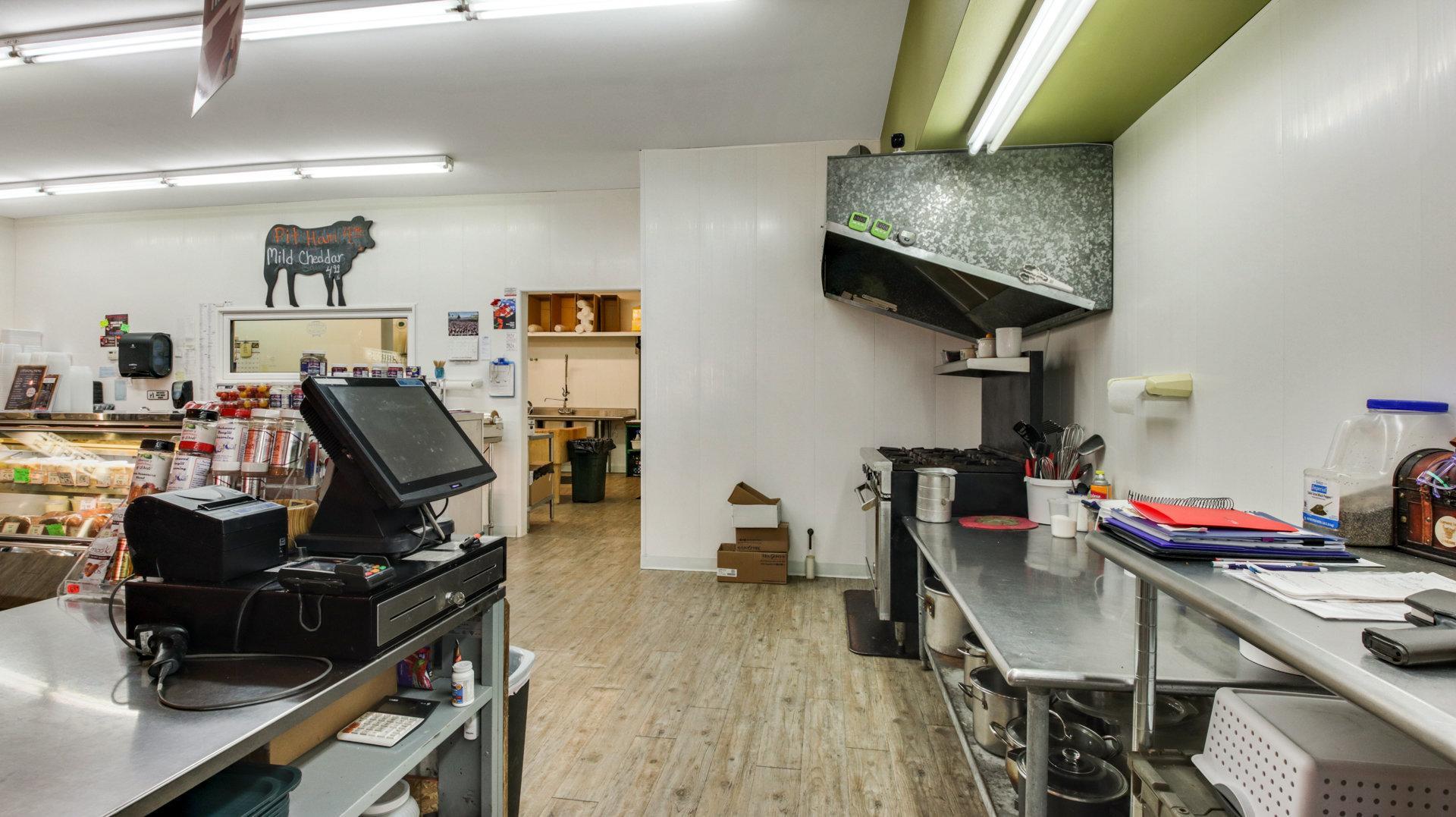 Renovated retail space operating as a smokehouse deli.