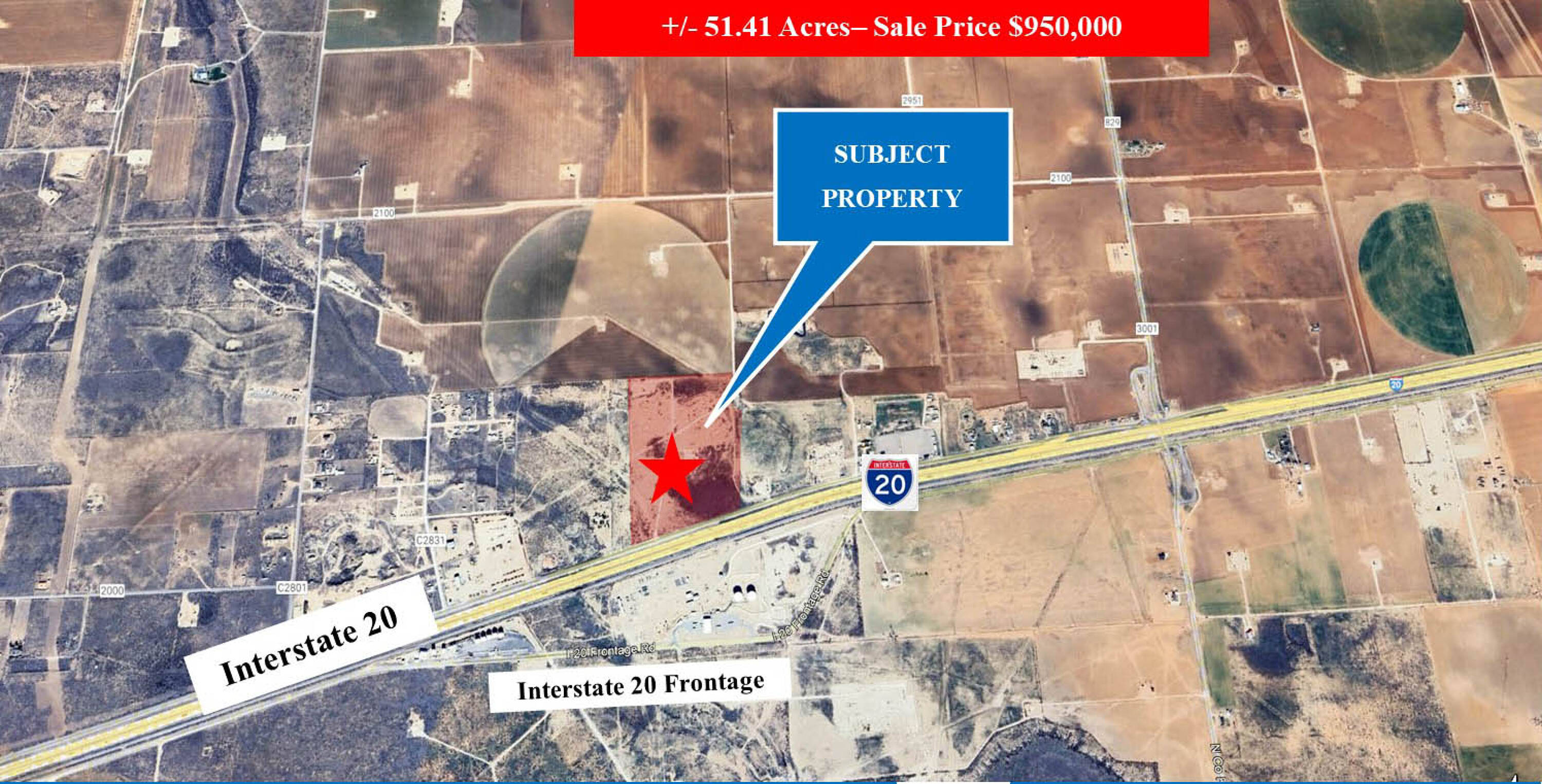 Commercial land with Interstate 20 frontage between Midland and Stanton.