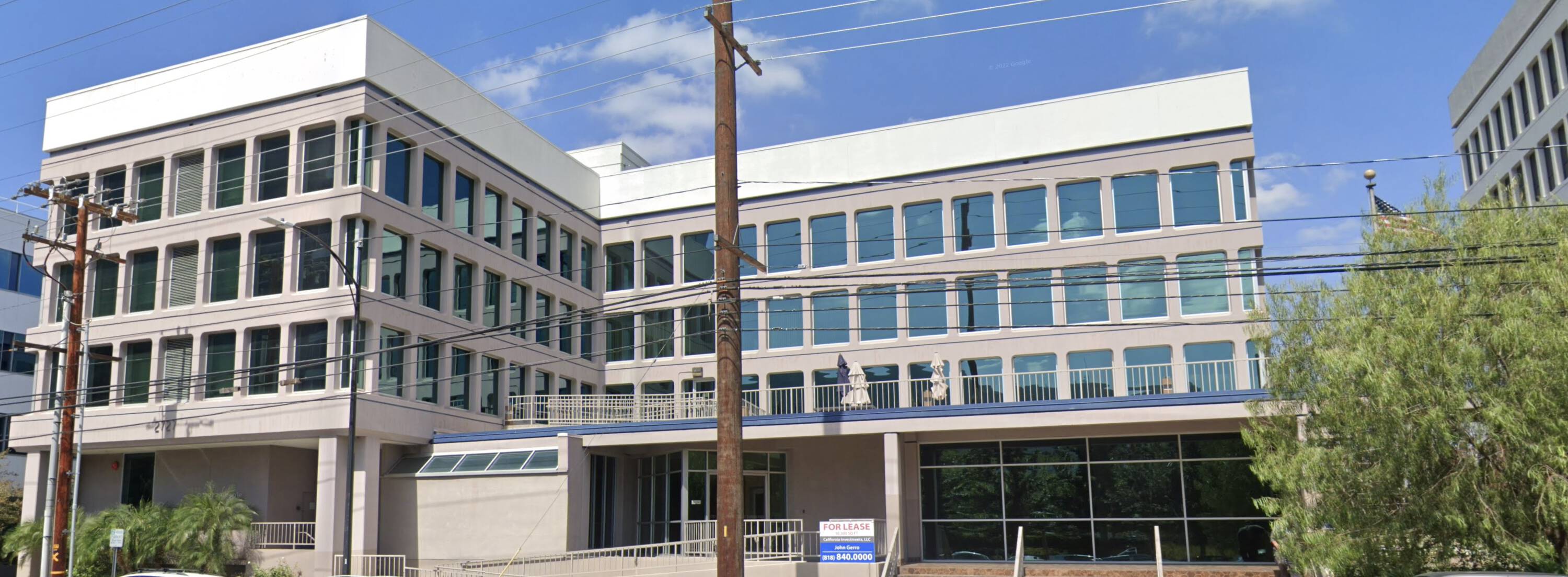 Prominent Burbank building near studios and St. Joseph Hospital.