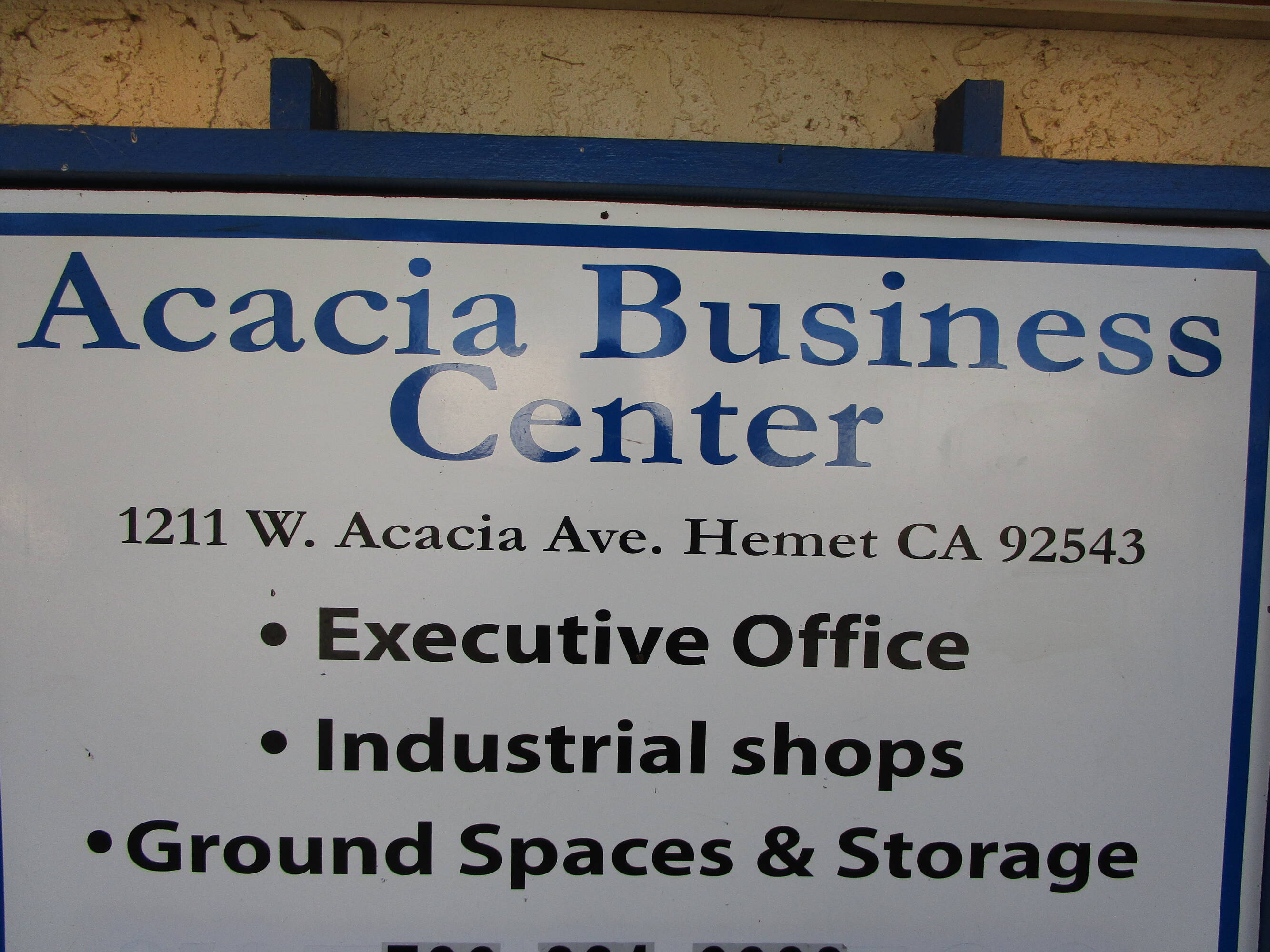 Acacia Business Center offers executive office suites for rent. Suite B is approximately 132 rentable square feet and is available for $450.00 per month. Suite C is approximately 120 rentable square feet and is available for $450.00 per month. Suite F is approximately 122 rentable square feet, is leased. Suite G is approximately 144 rentable square feet, is leased for $475.00 per month. Suite K is approximately 163 rentable square feet and is available for $550.00 per month. Suite M is approximately 214 rentable square feet and is available for $650.00 per month.