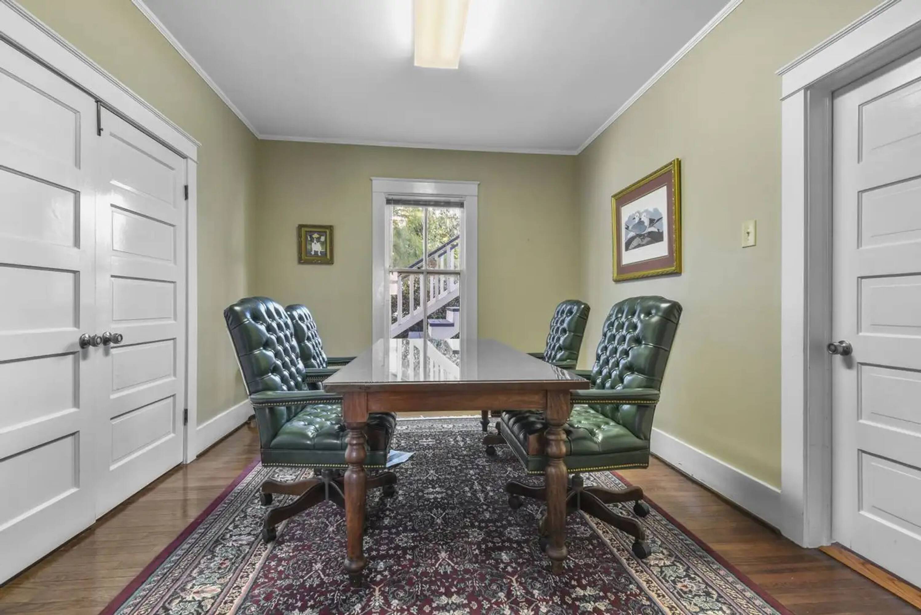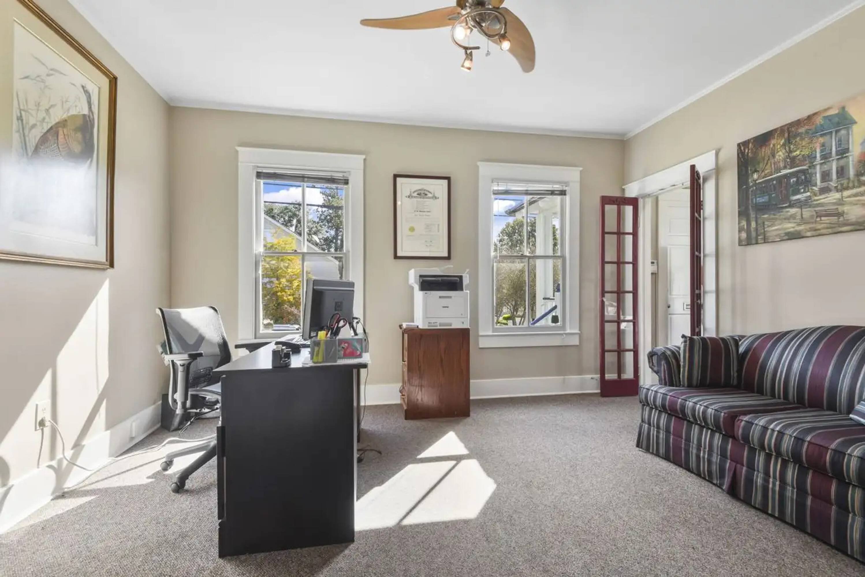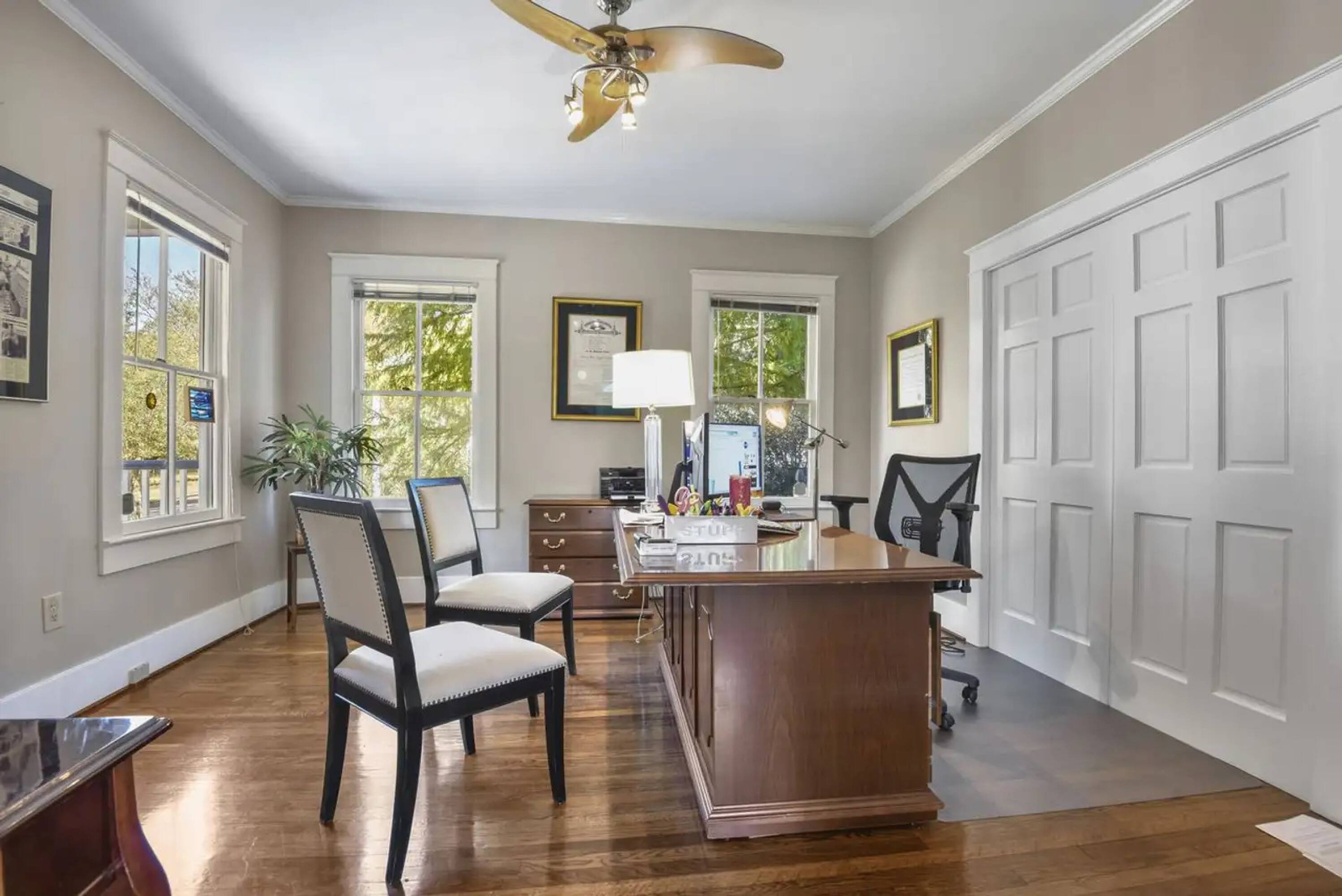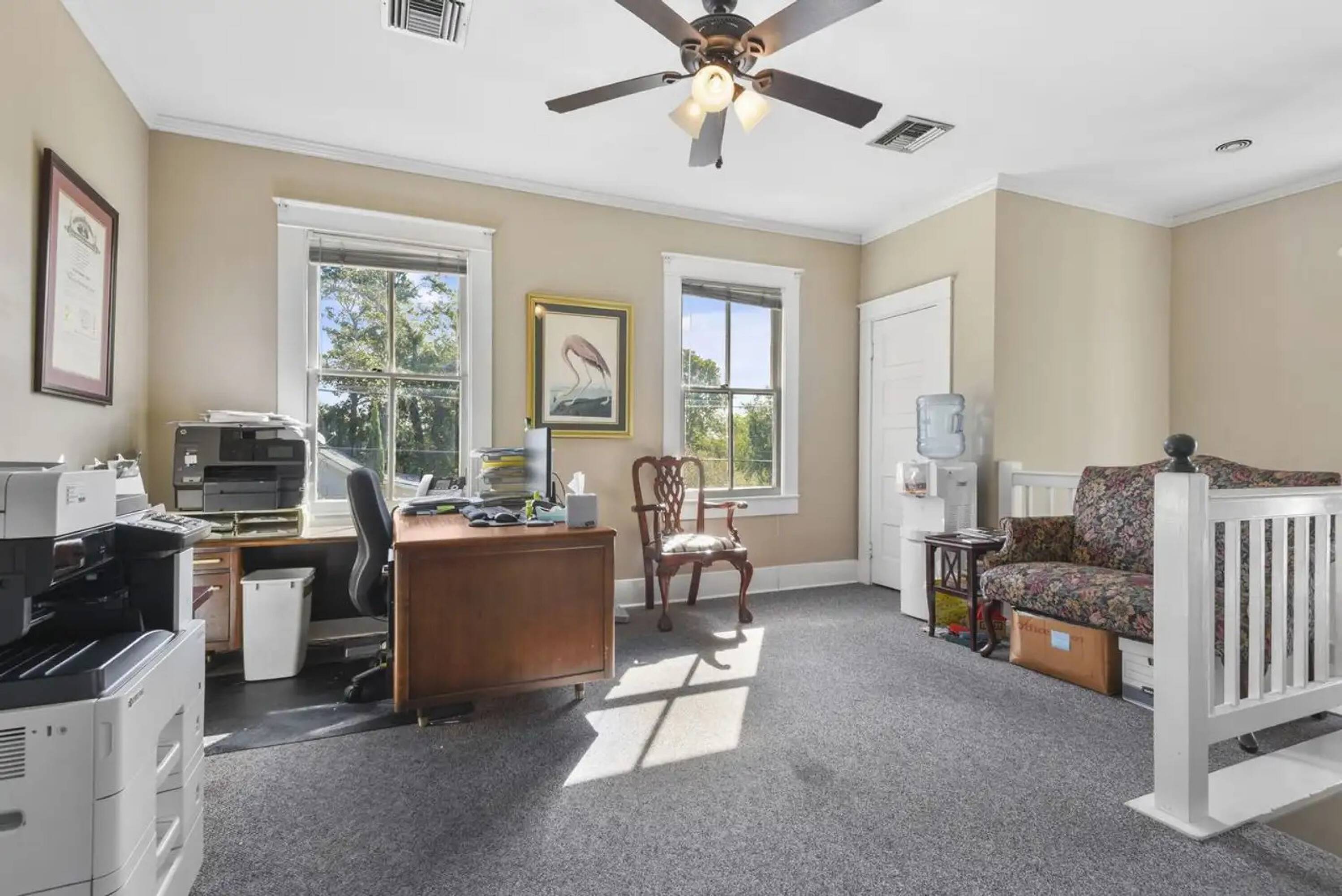 This two-story office building offers a total area of 2,300 square feet and includes 10 parking spaces. Each story is equipped with its own conference room, bathroom, and multiple offices. Owner-financing options are available, subject to the buyer's financial qualifications.