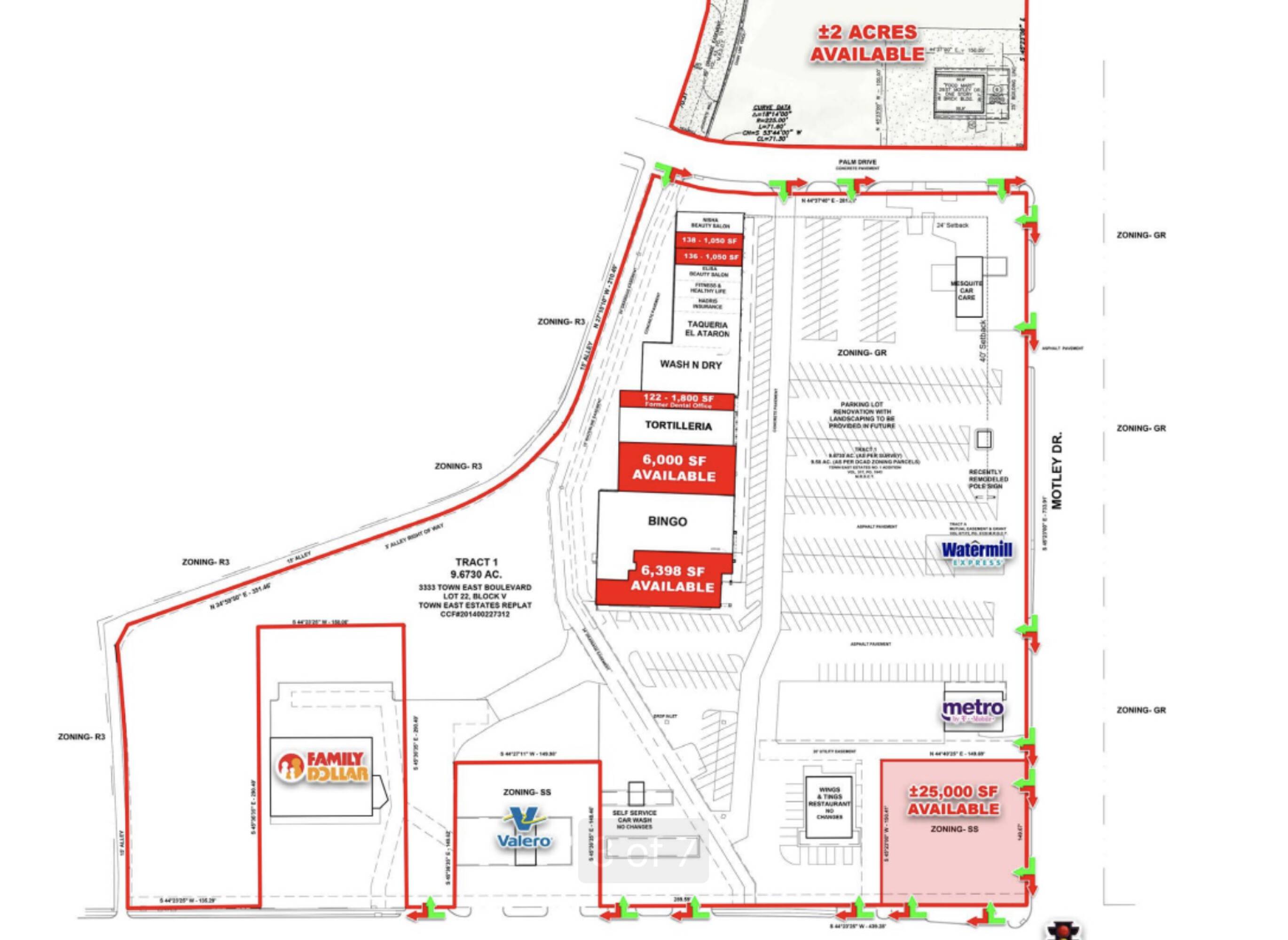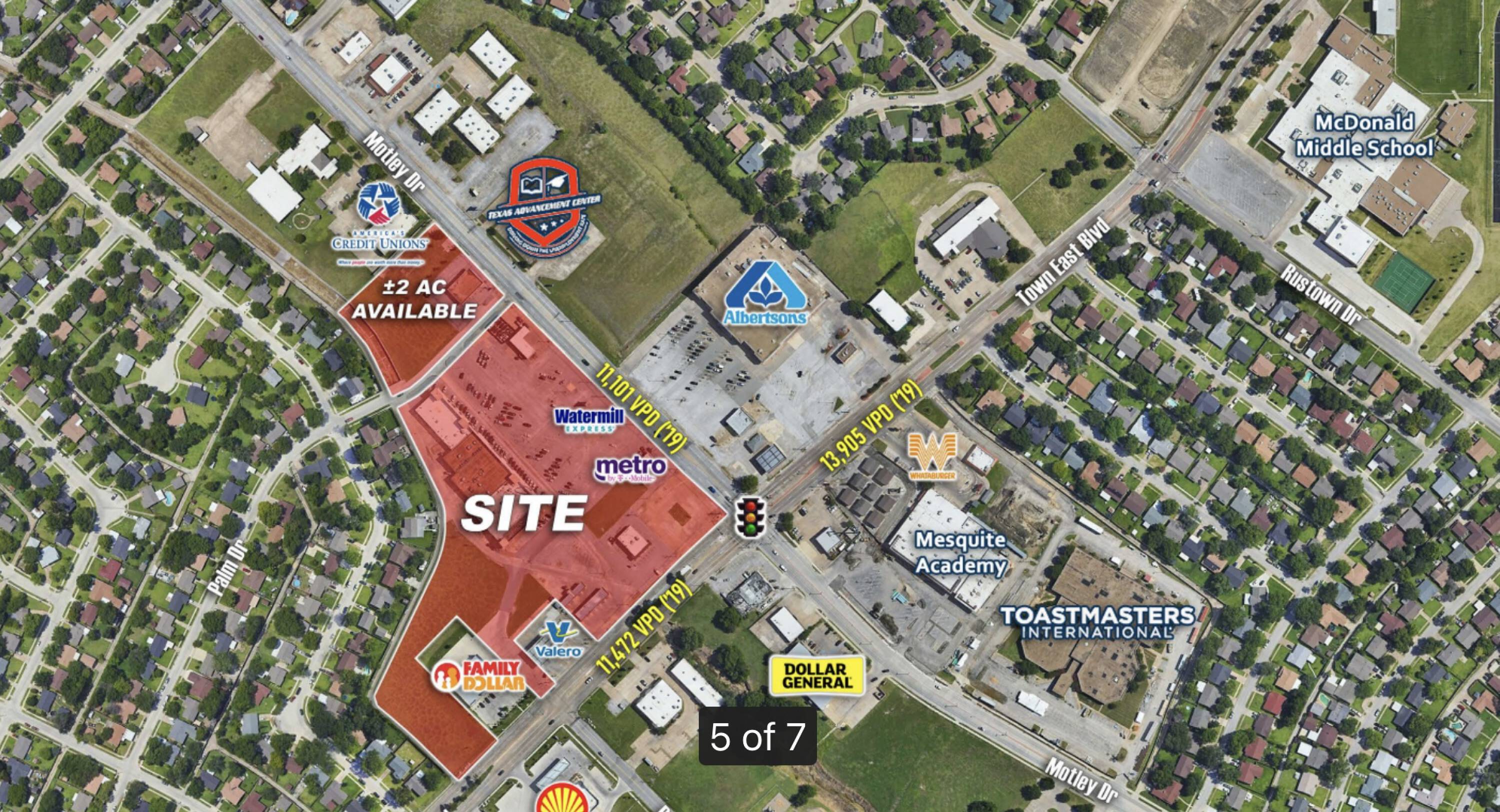 Highly visible retail and pad sites near Town East Mall.