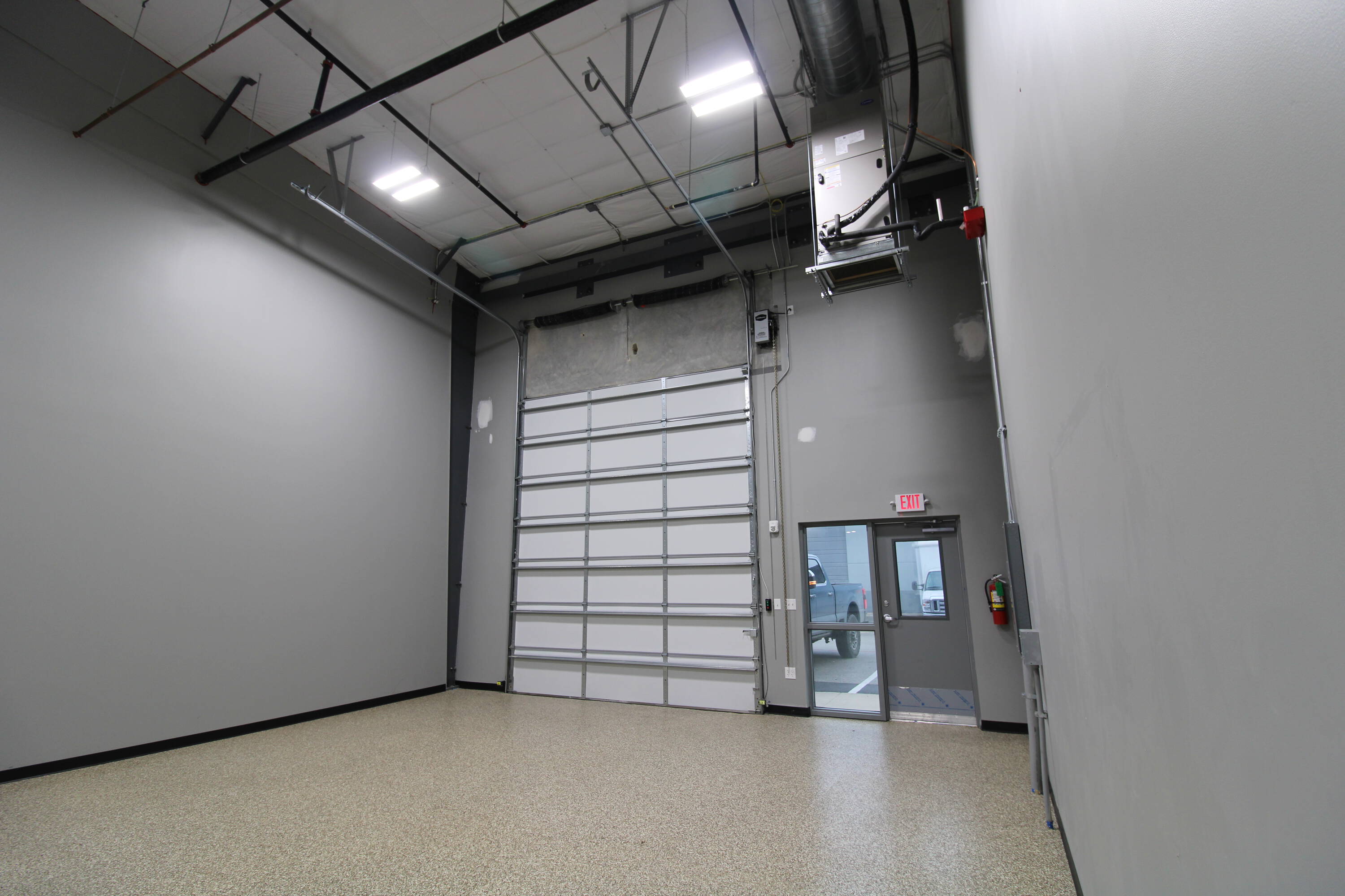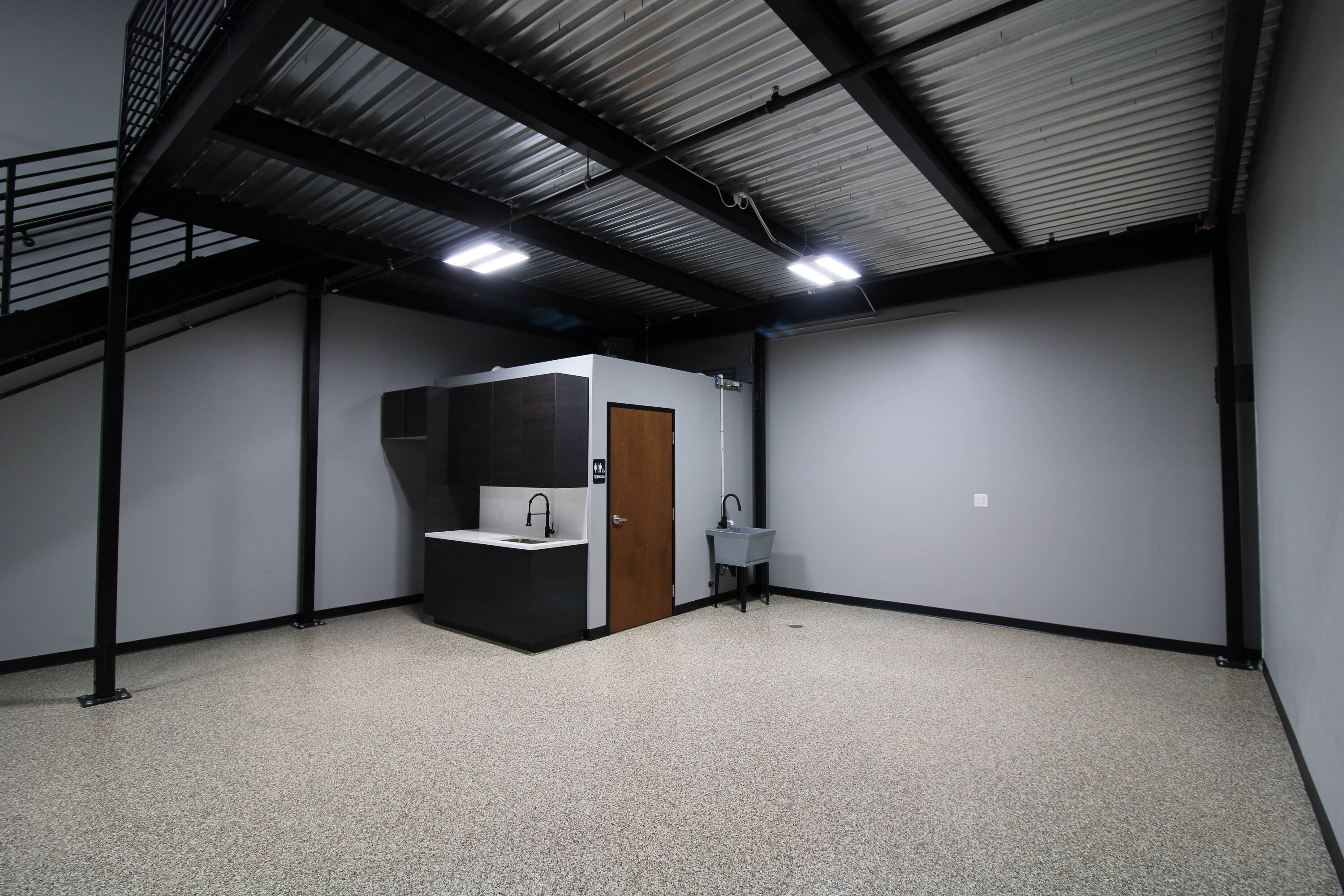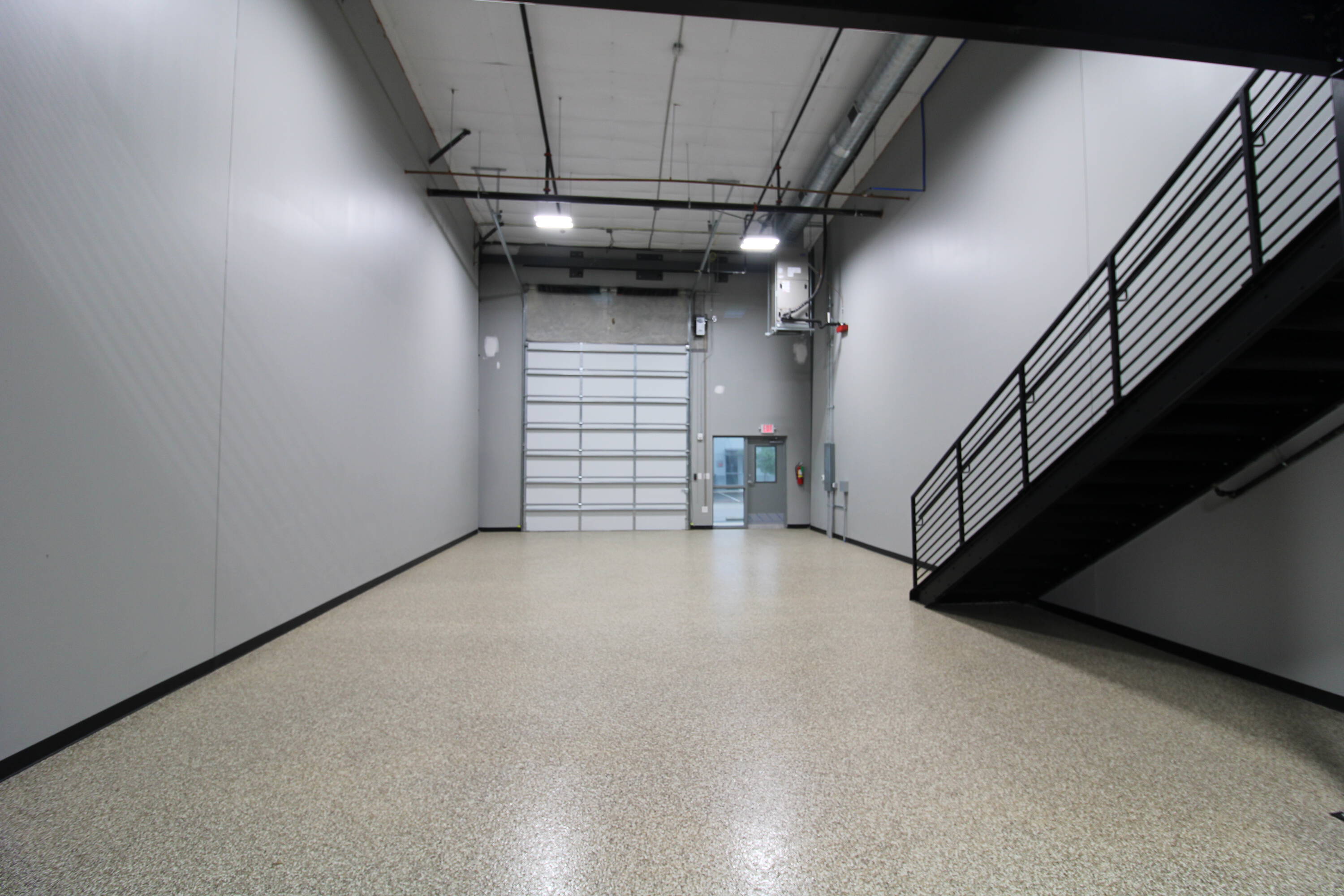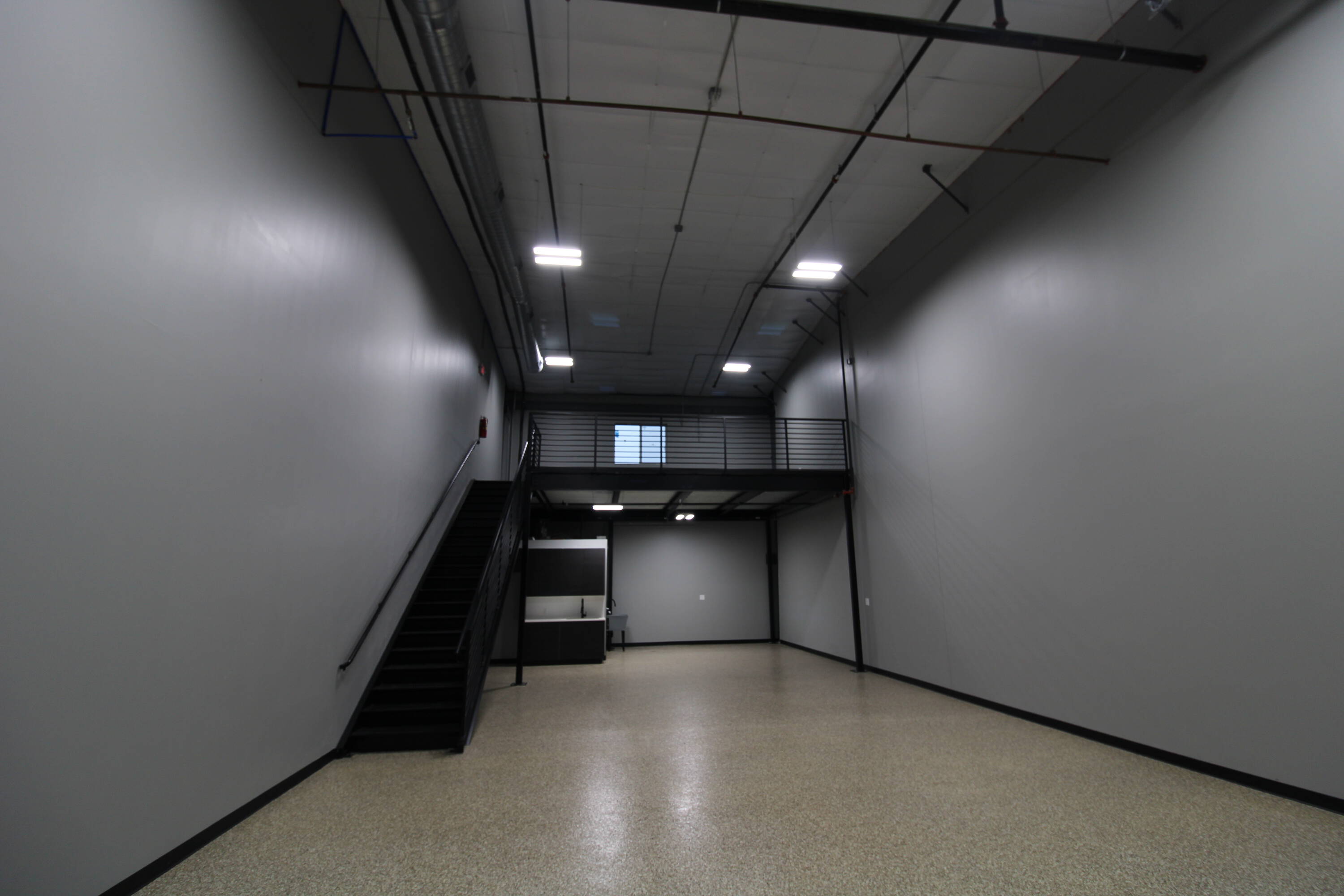 Flex space with mezzanine, light industrial zoning, and modern amenities.