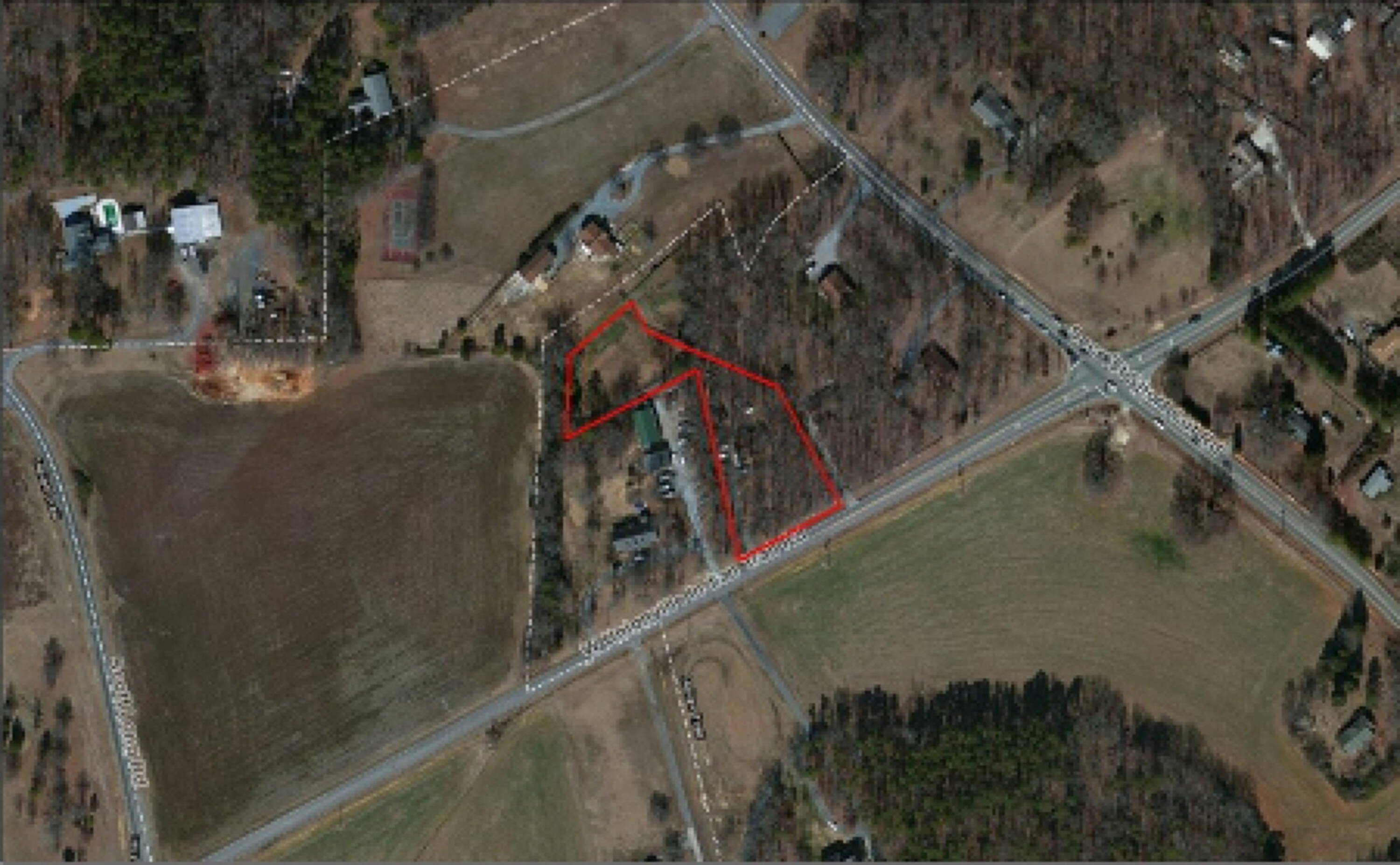 Commercial land parcel near major roads and residential areas.