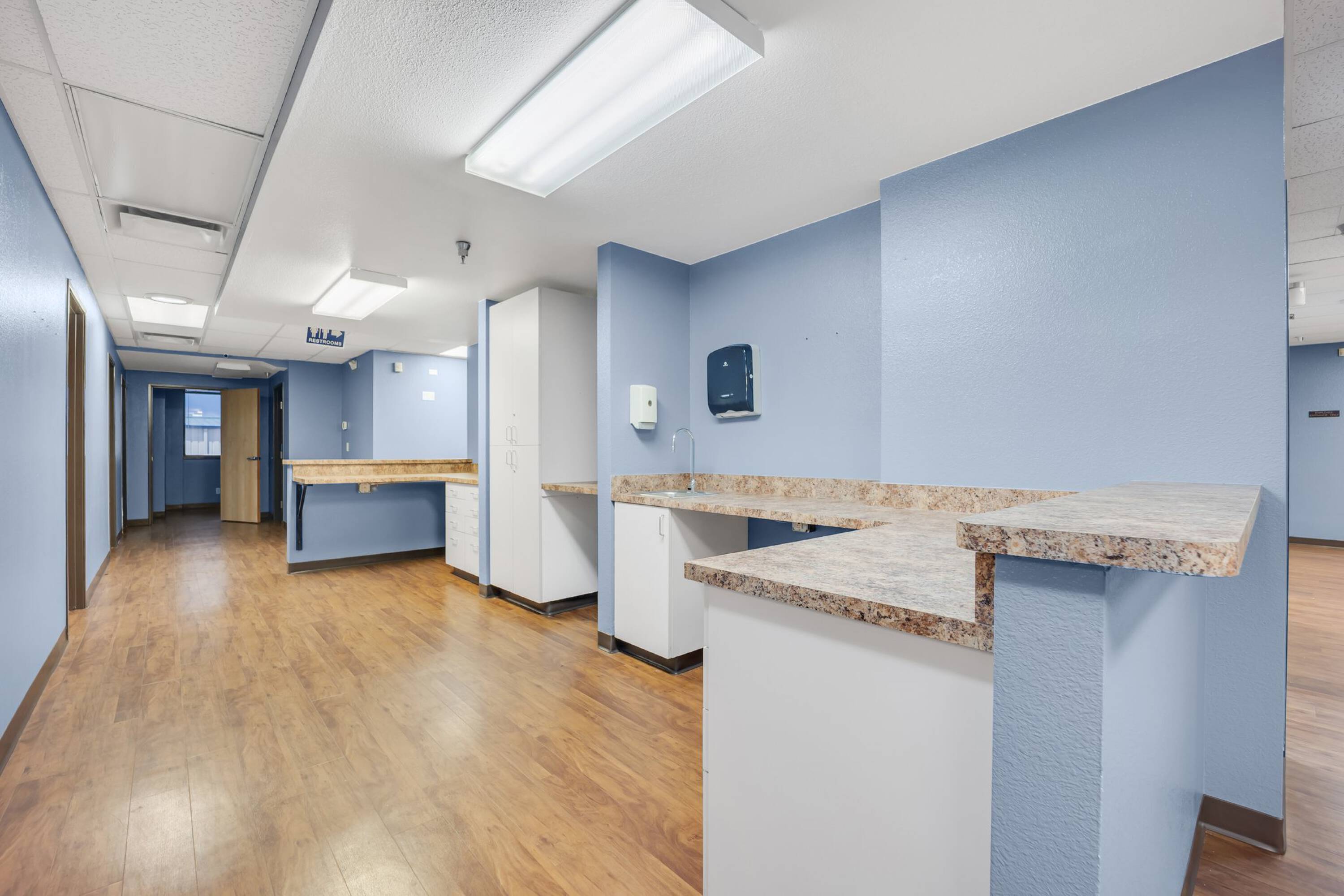 Spacious medical office with 17 exam rooms and ample parking.