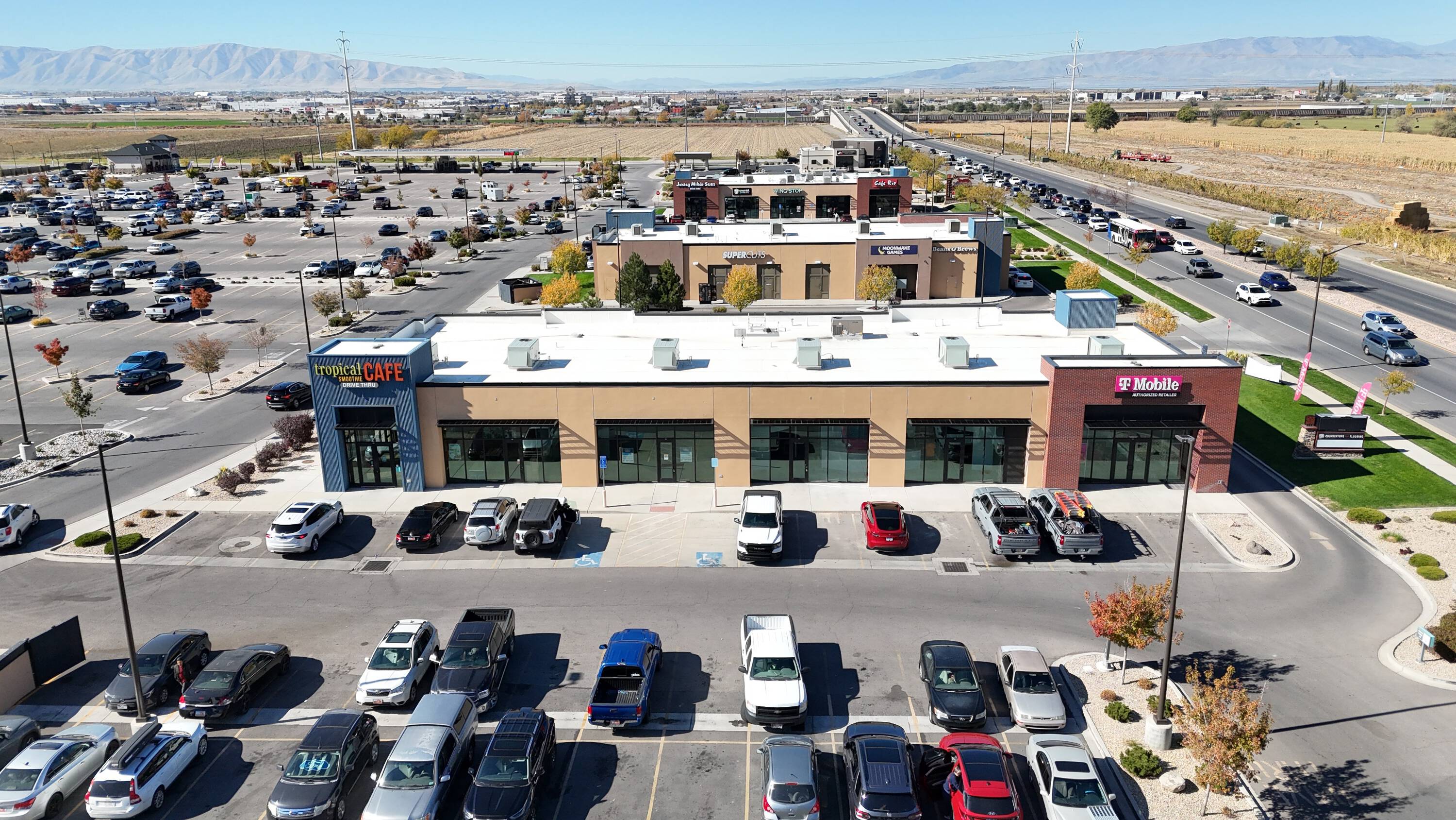 Retail spaces with drive-thru and shop space available for rent.