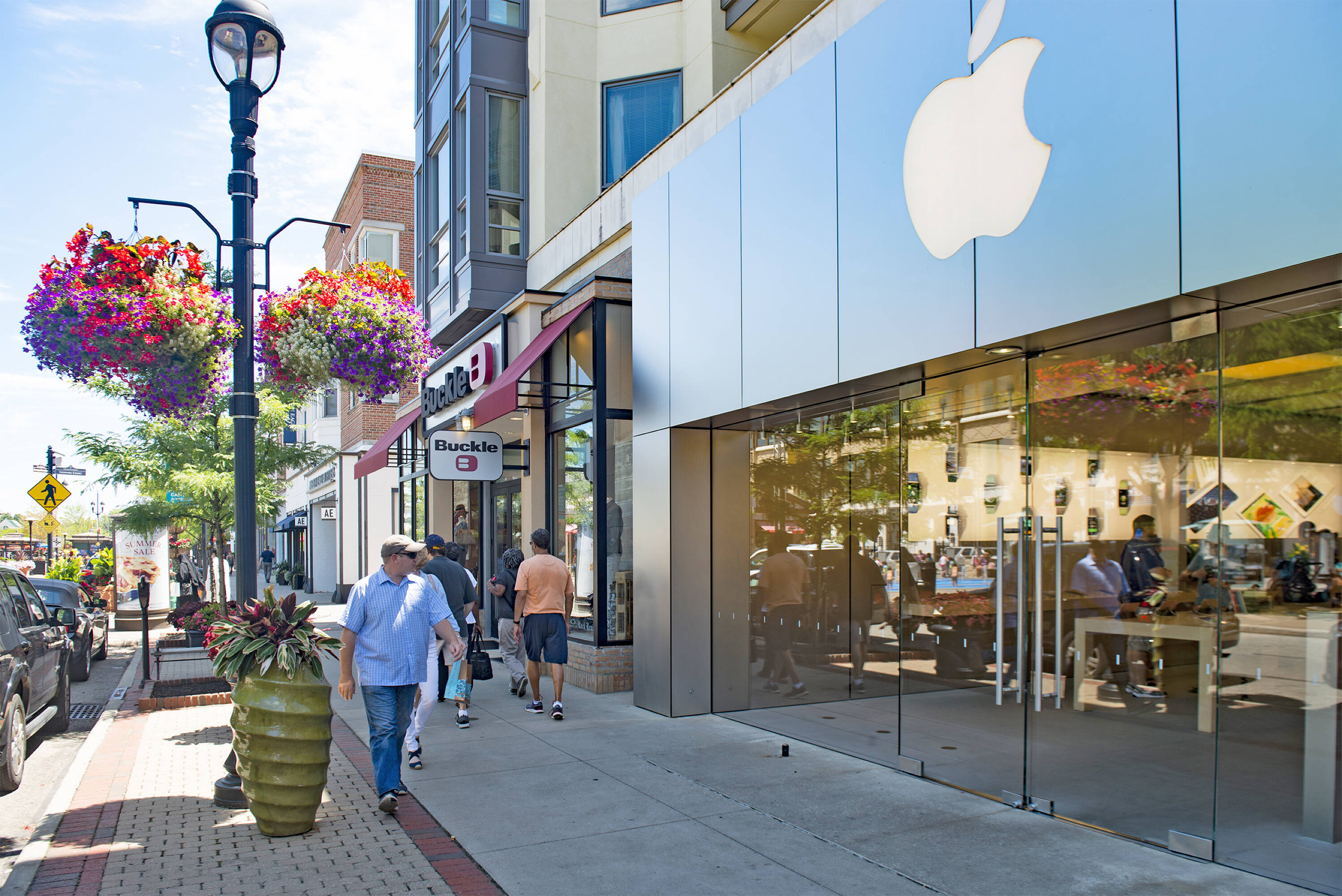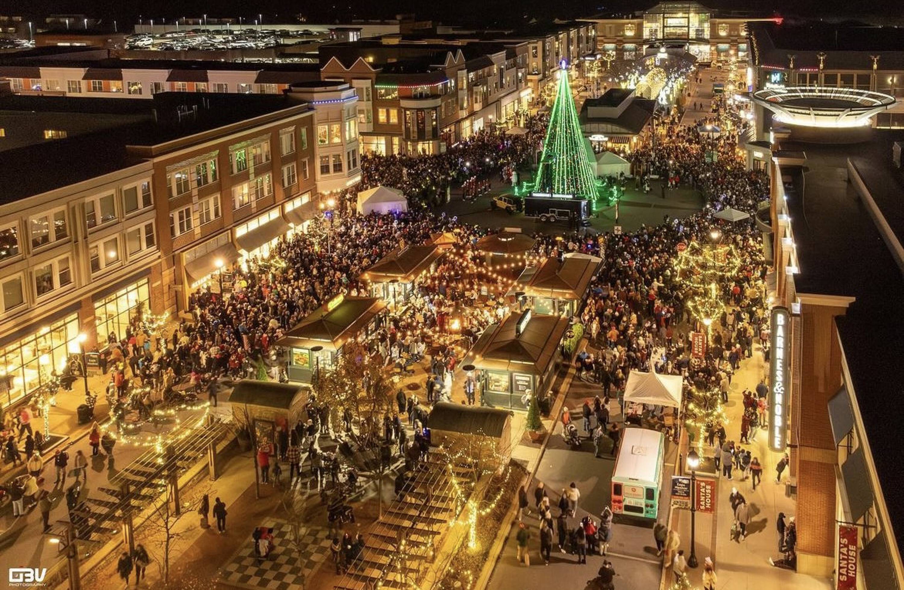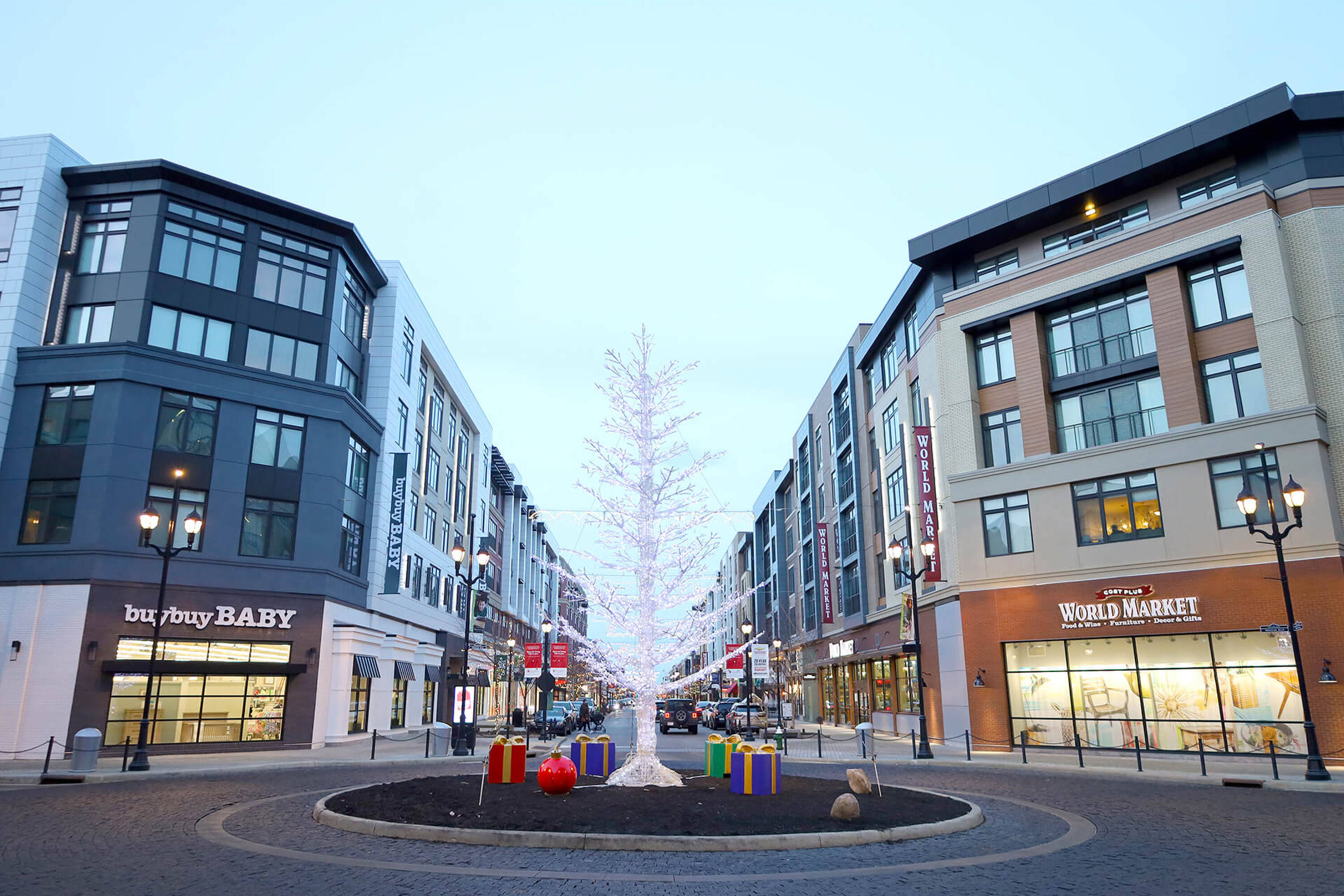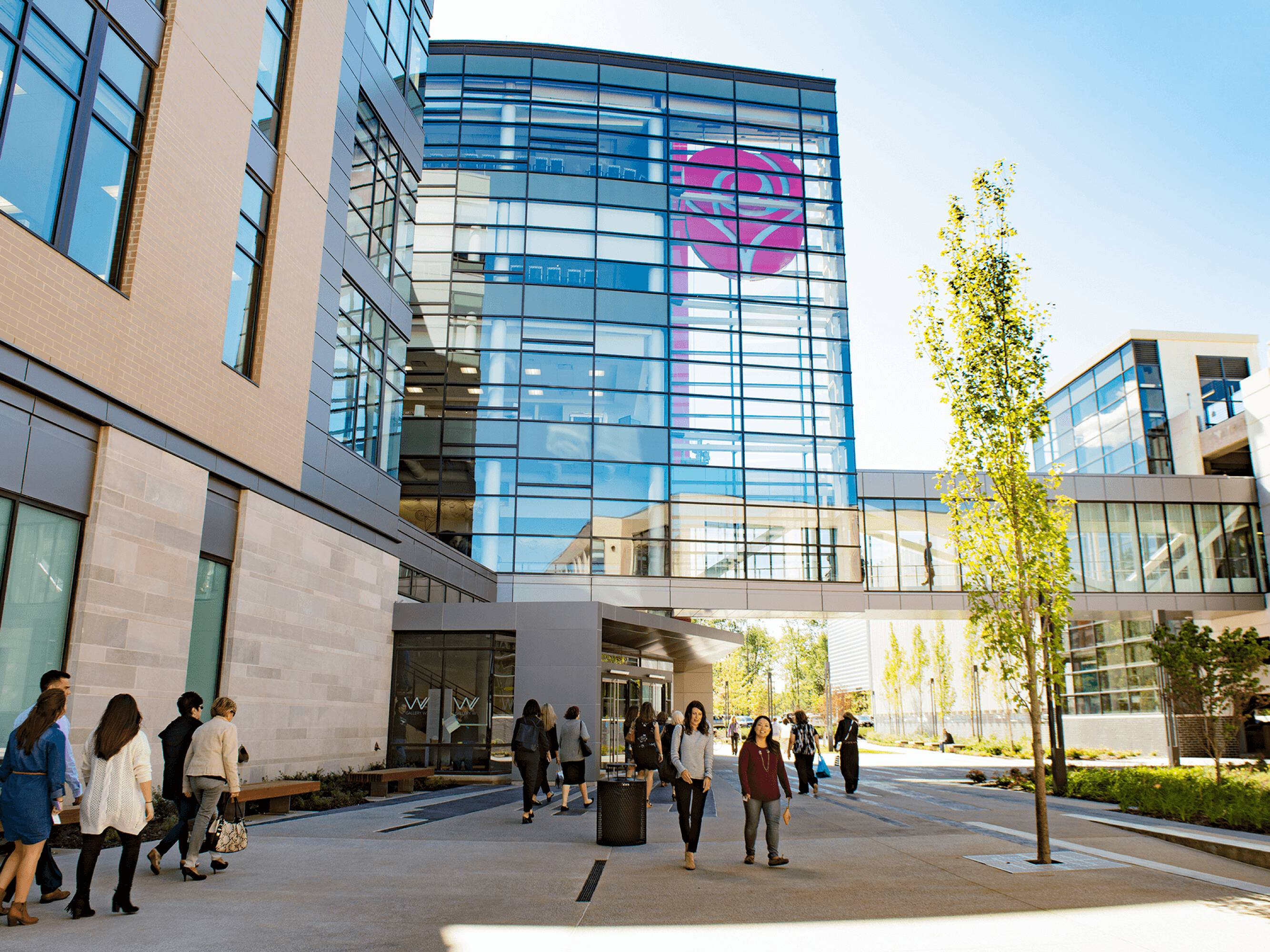 Retail and office spaces in a mixed-use destination.