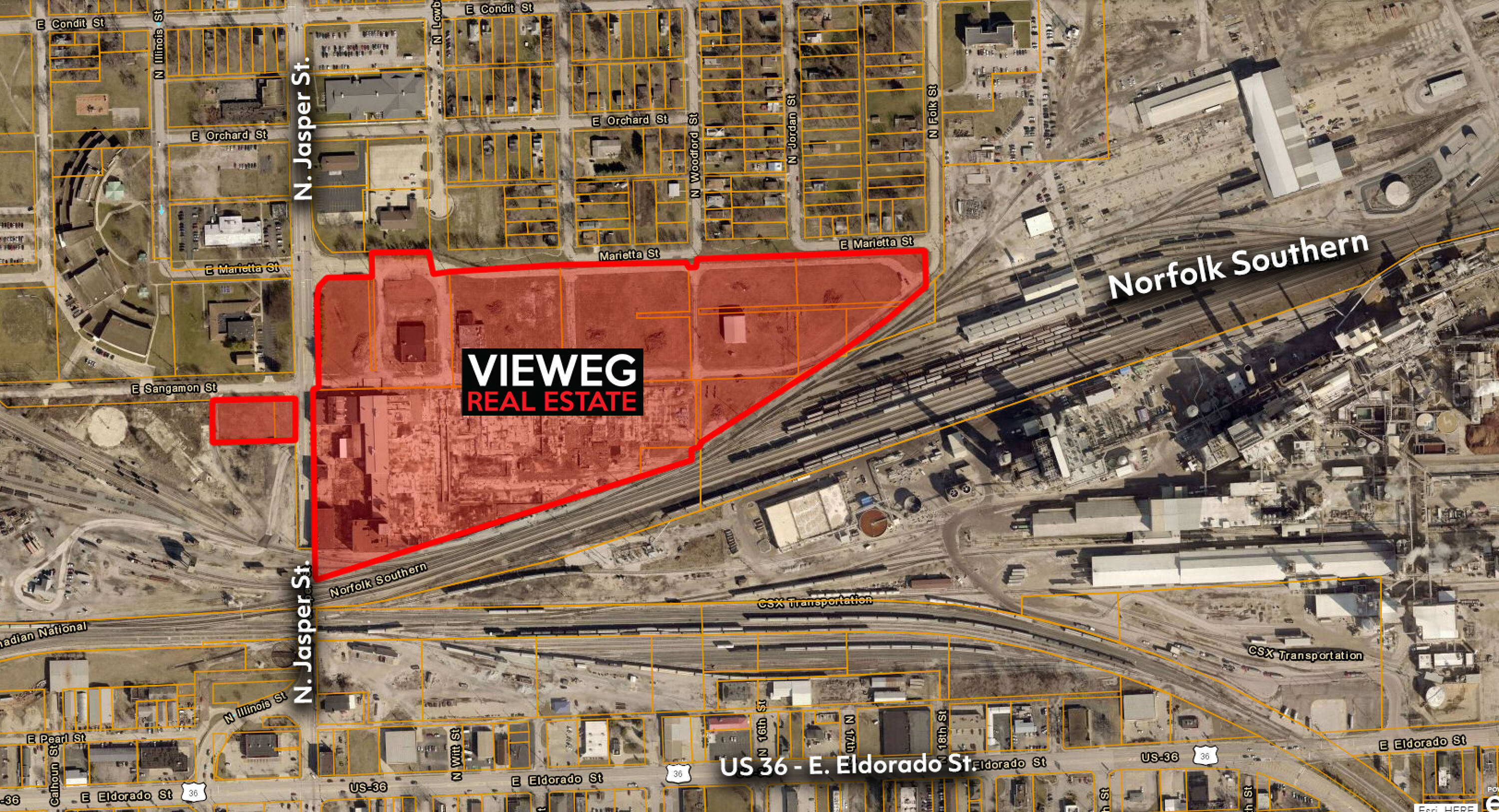 This property features: Prime location zoned M2 for Heavy Industrial.; Direct access to rail.; Market reach of over 95 million people within 500 miles for same‑day delivery.