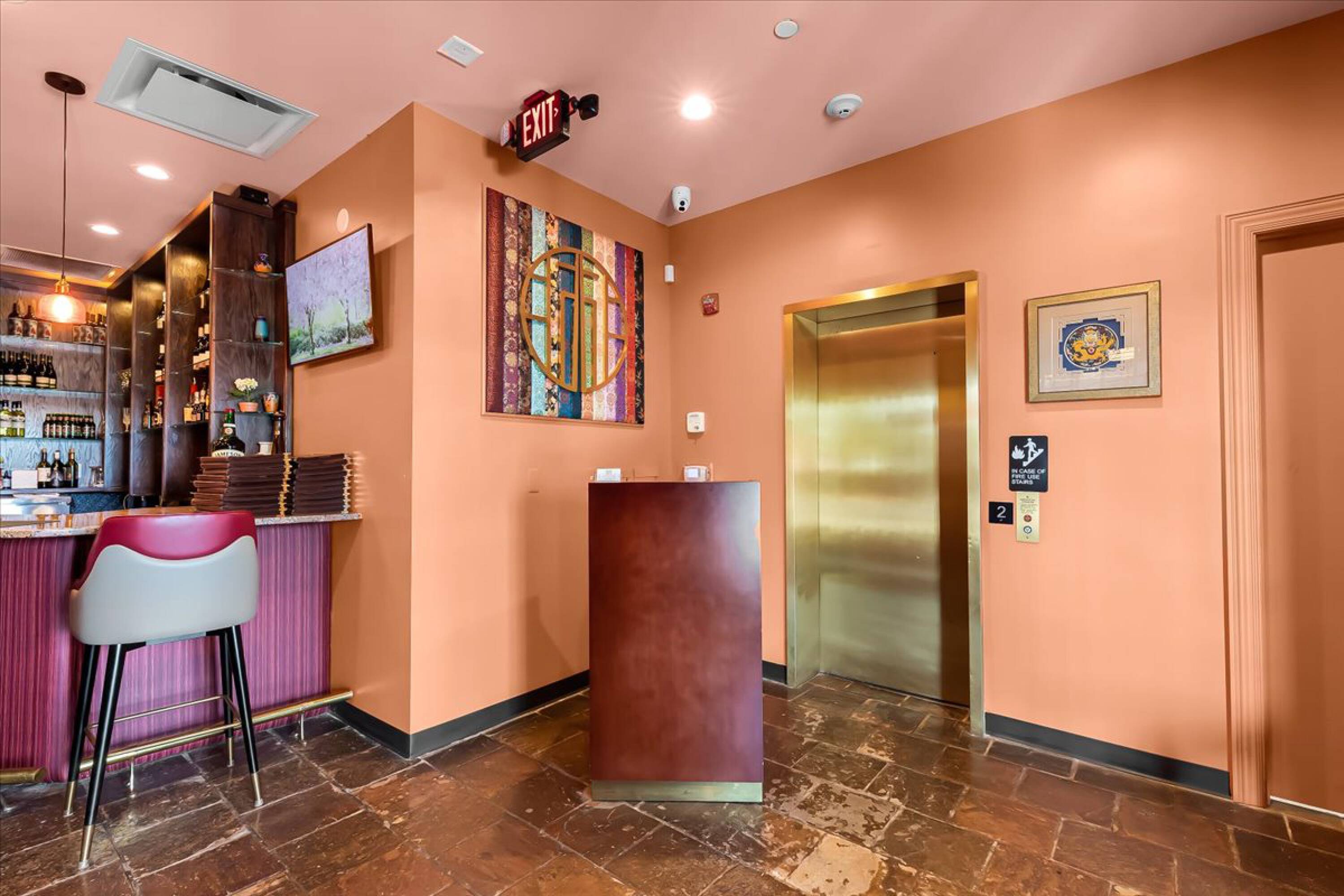 Freestanding, two-story restaurant with outdoor patio and elevator.