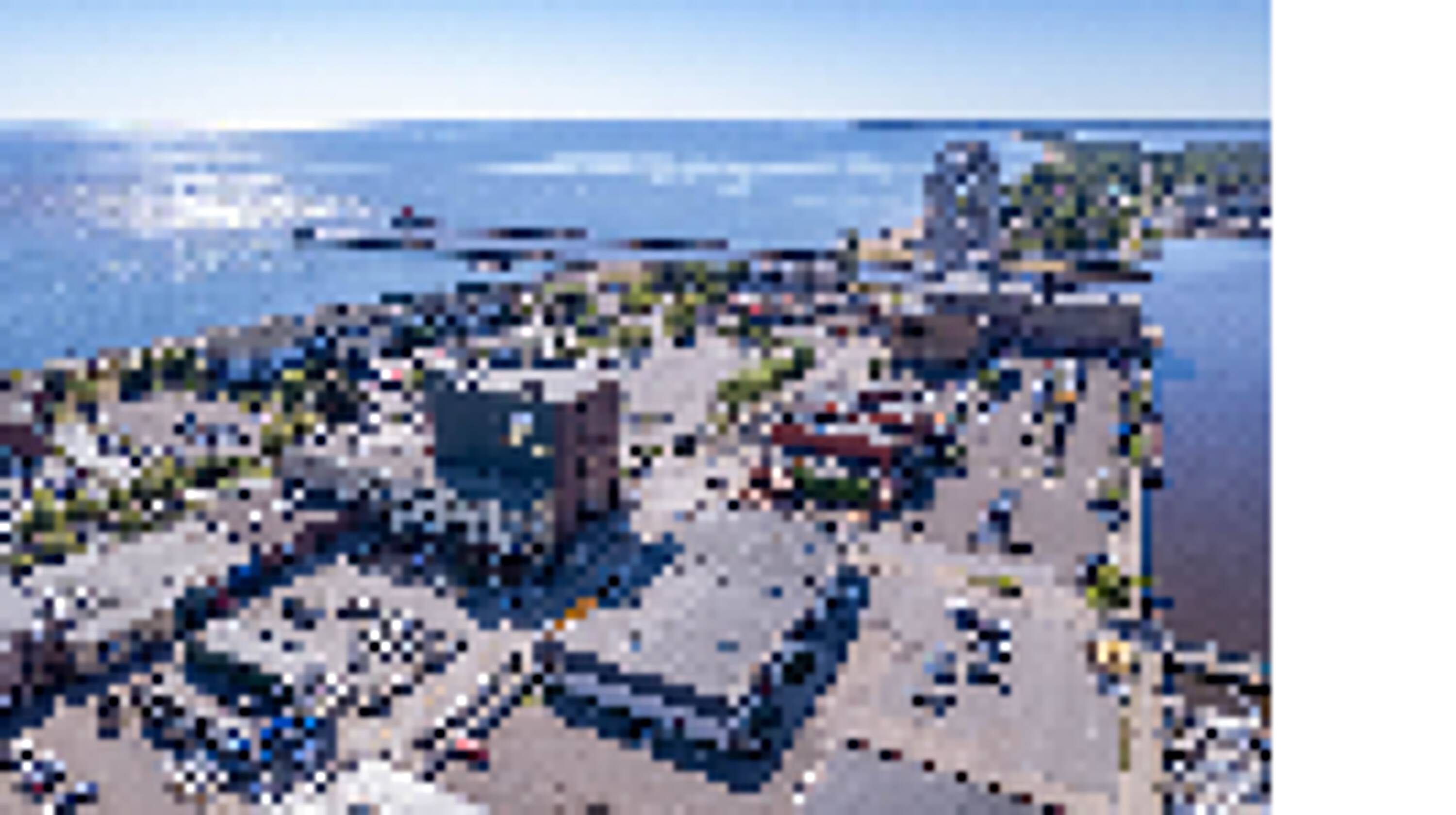 Historic building in Canal Park with lake and harbor views.