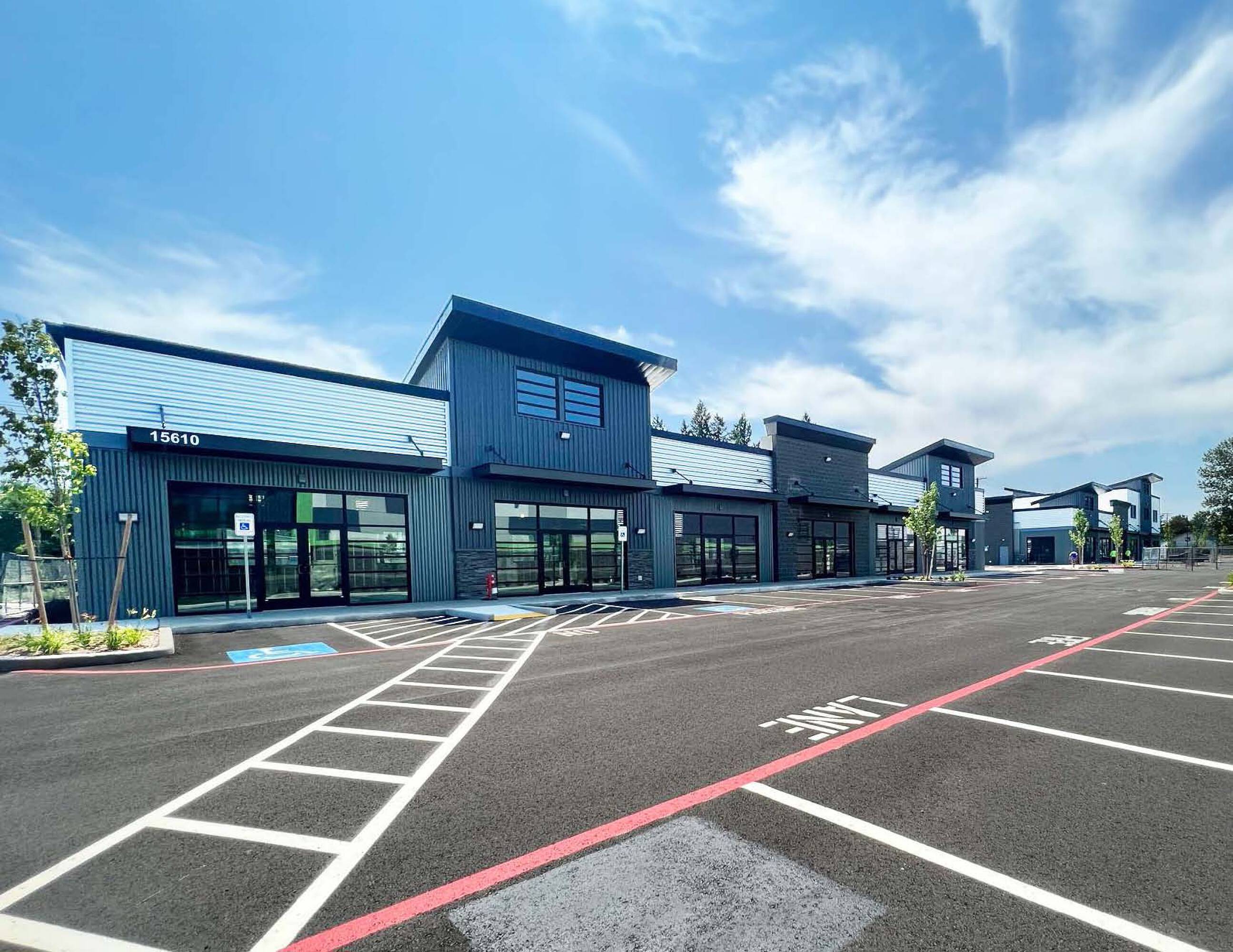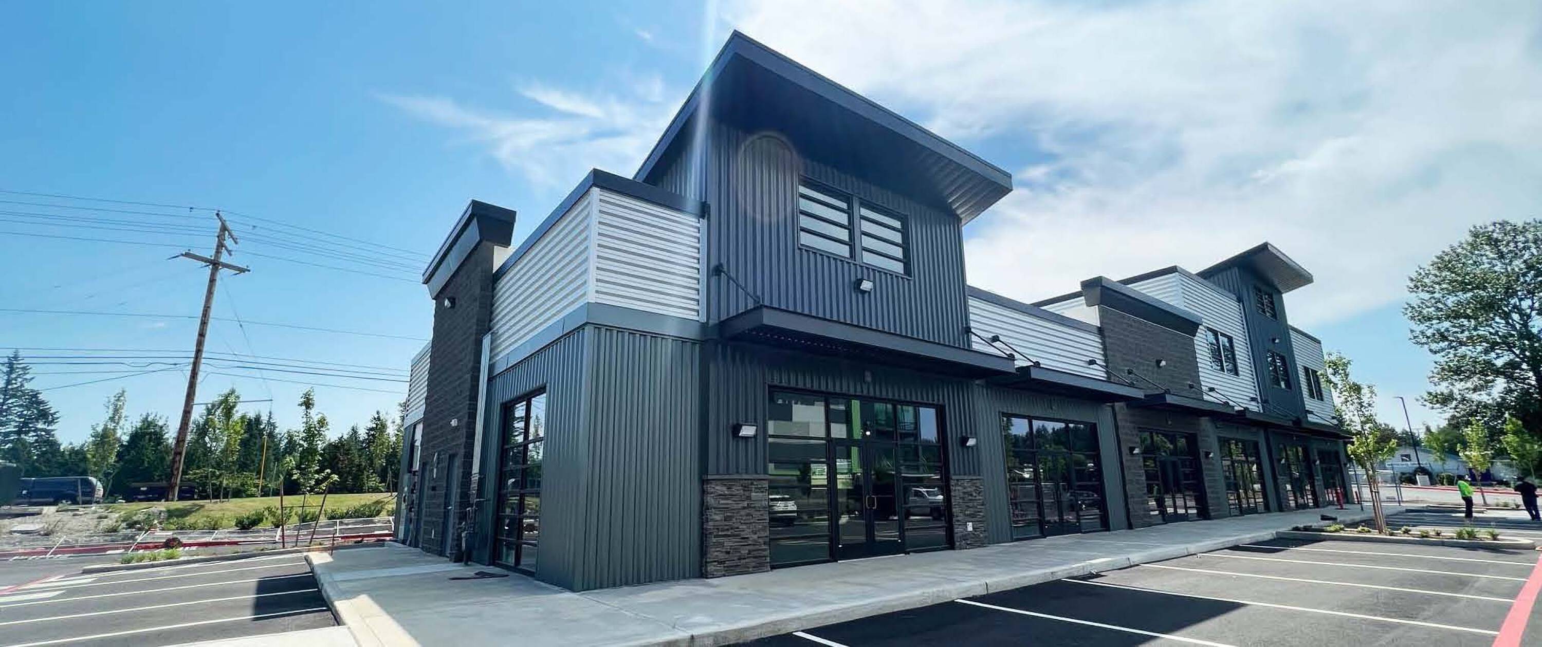 Retail and office spaces with drive-thru availability for lease.