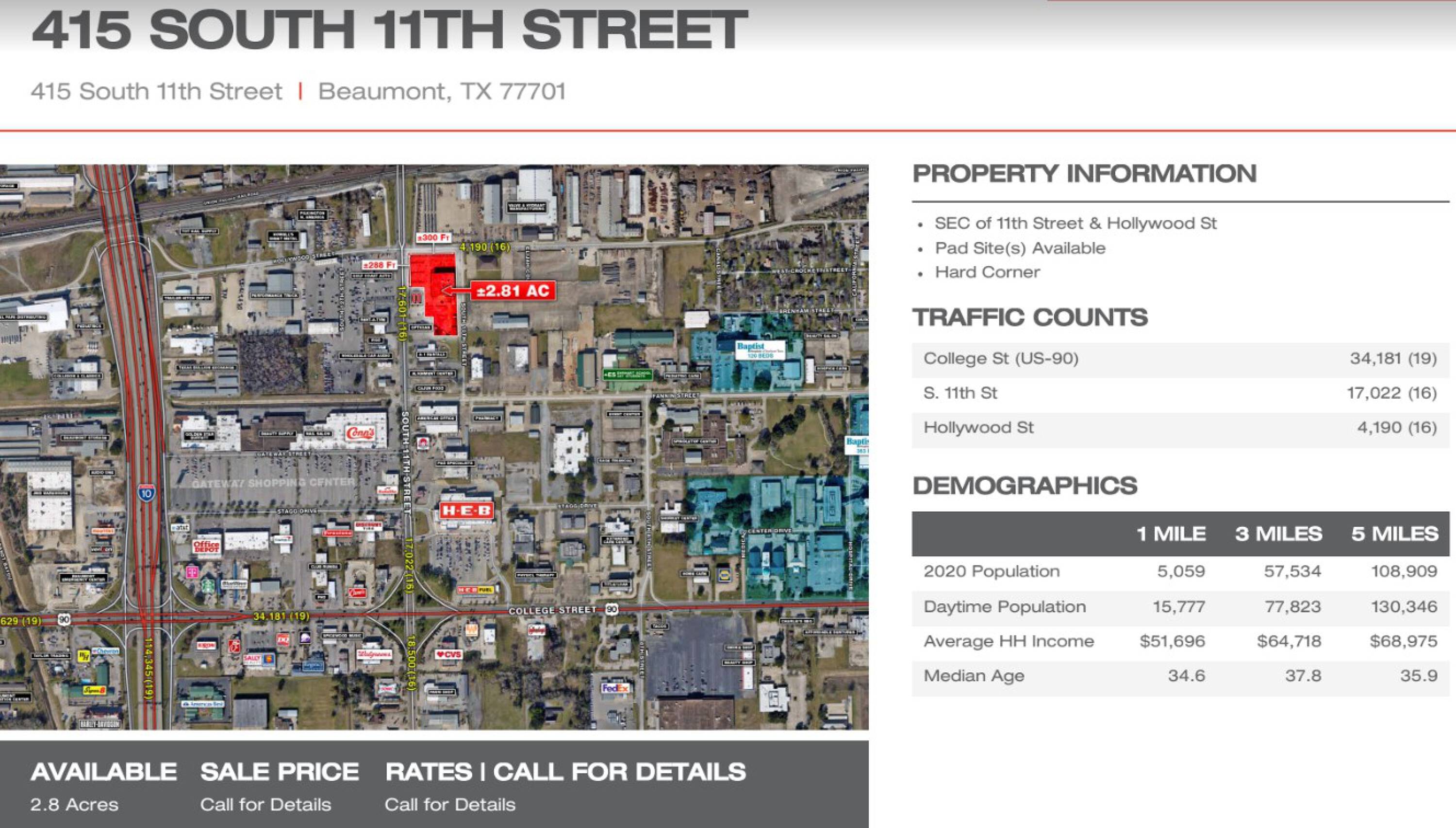 Pad site available at 11th Street and Hollywood Street.