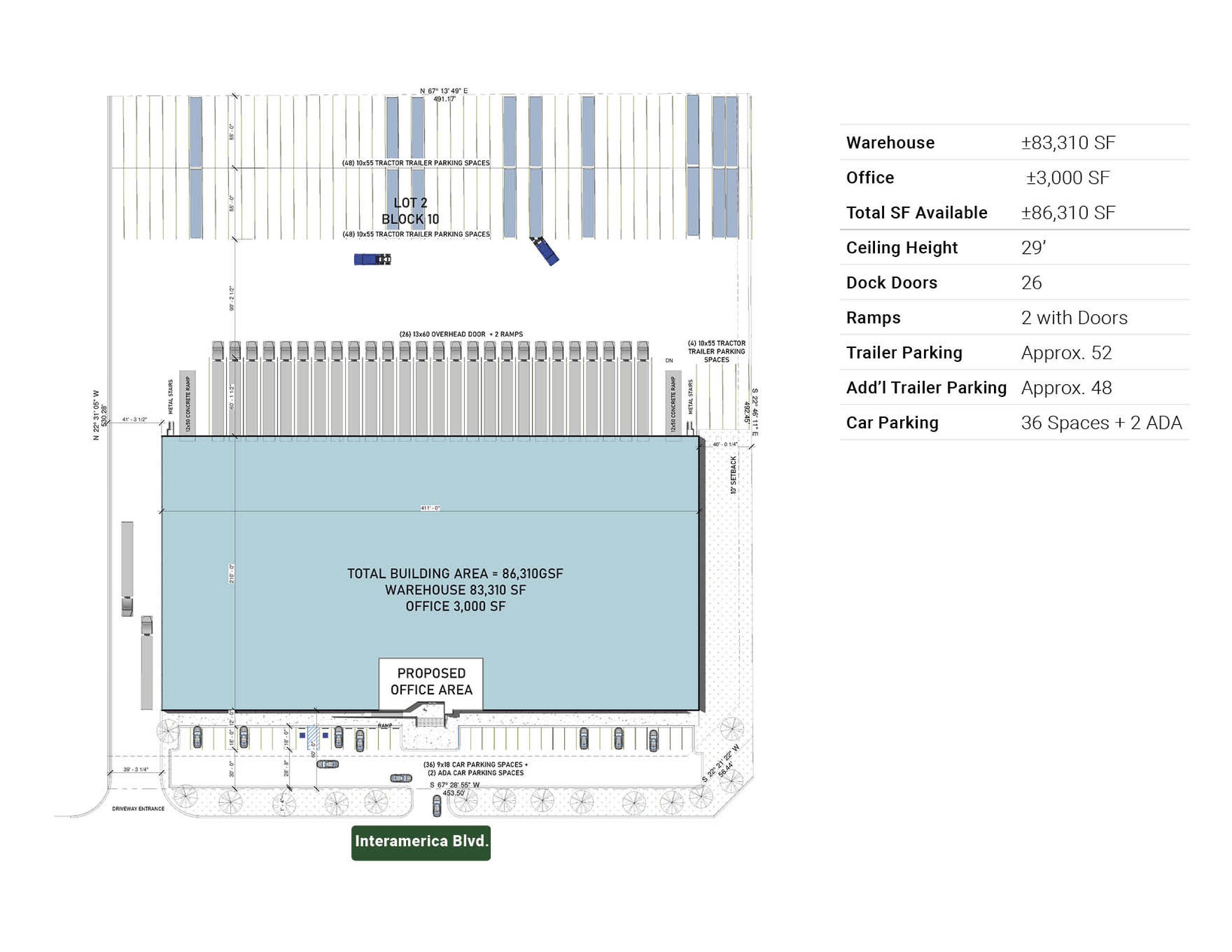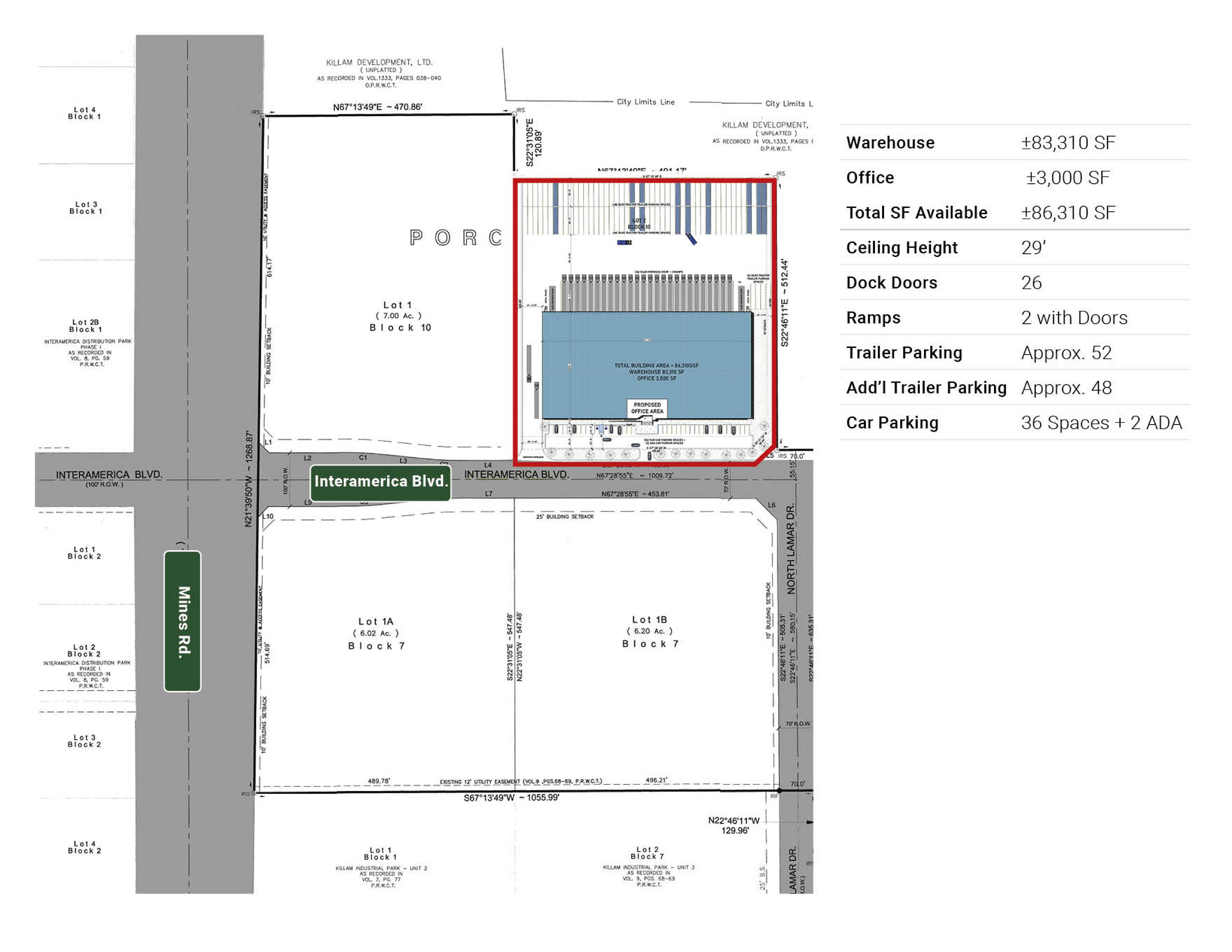 86,310 SqFt industrial space available for single tenant in Laredo.