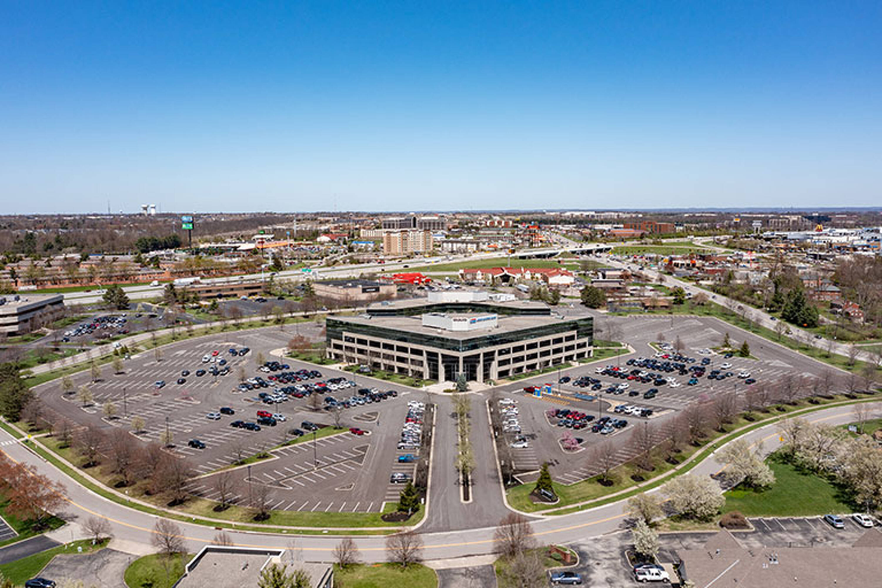 This property features: Class A office buildings in a corporate campus setting.; Located right off Interstate 71 with great visibility.; Large, open‑concept office floor plans.