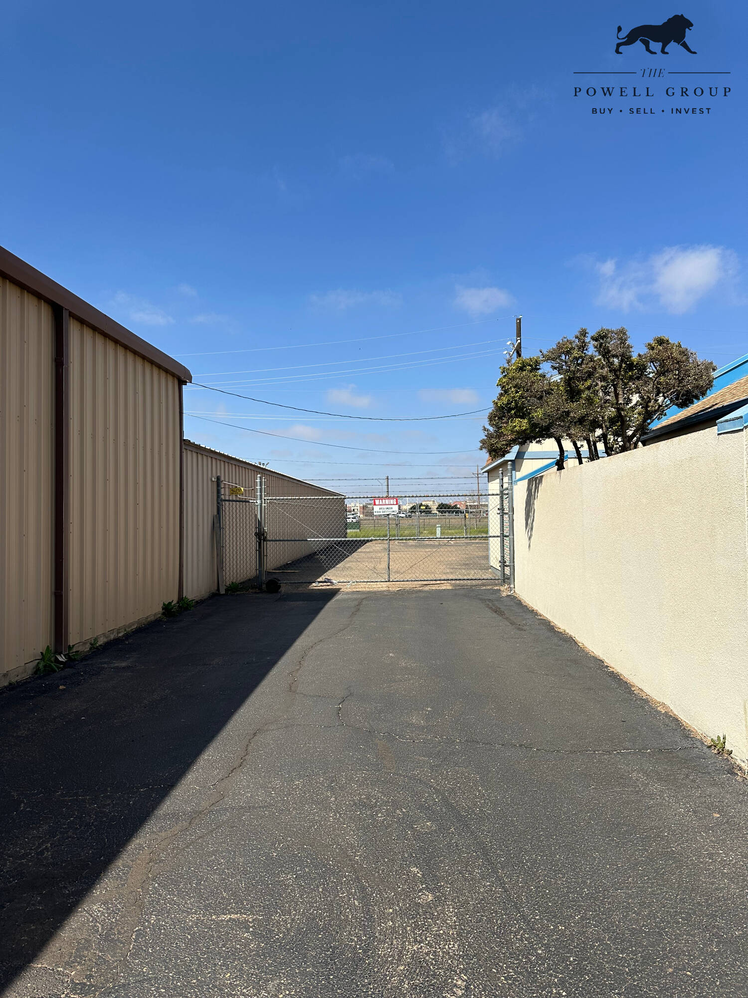 Well-maintained commercial retail property with warehouse and fenced stackyard.