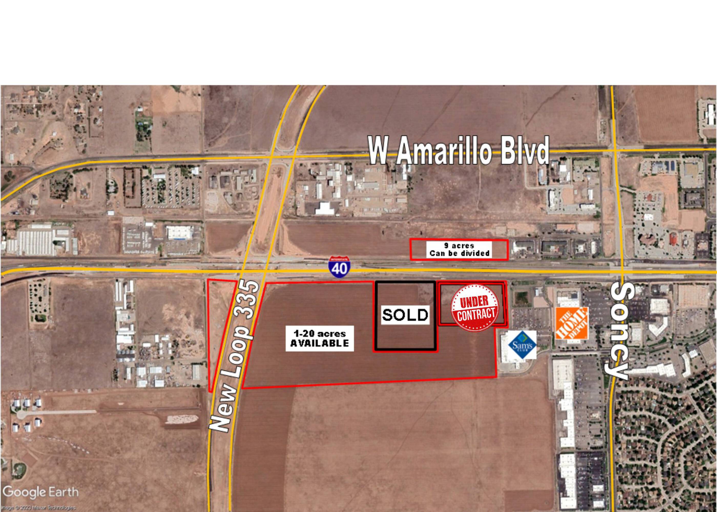 High-visibility land with Loop 335 access, ideal for development.