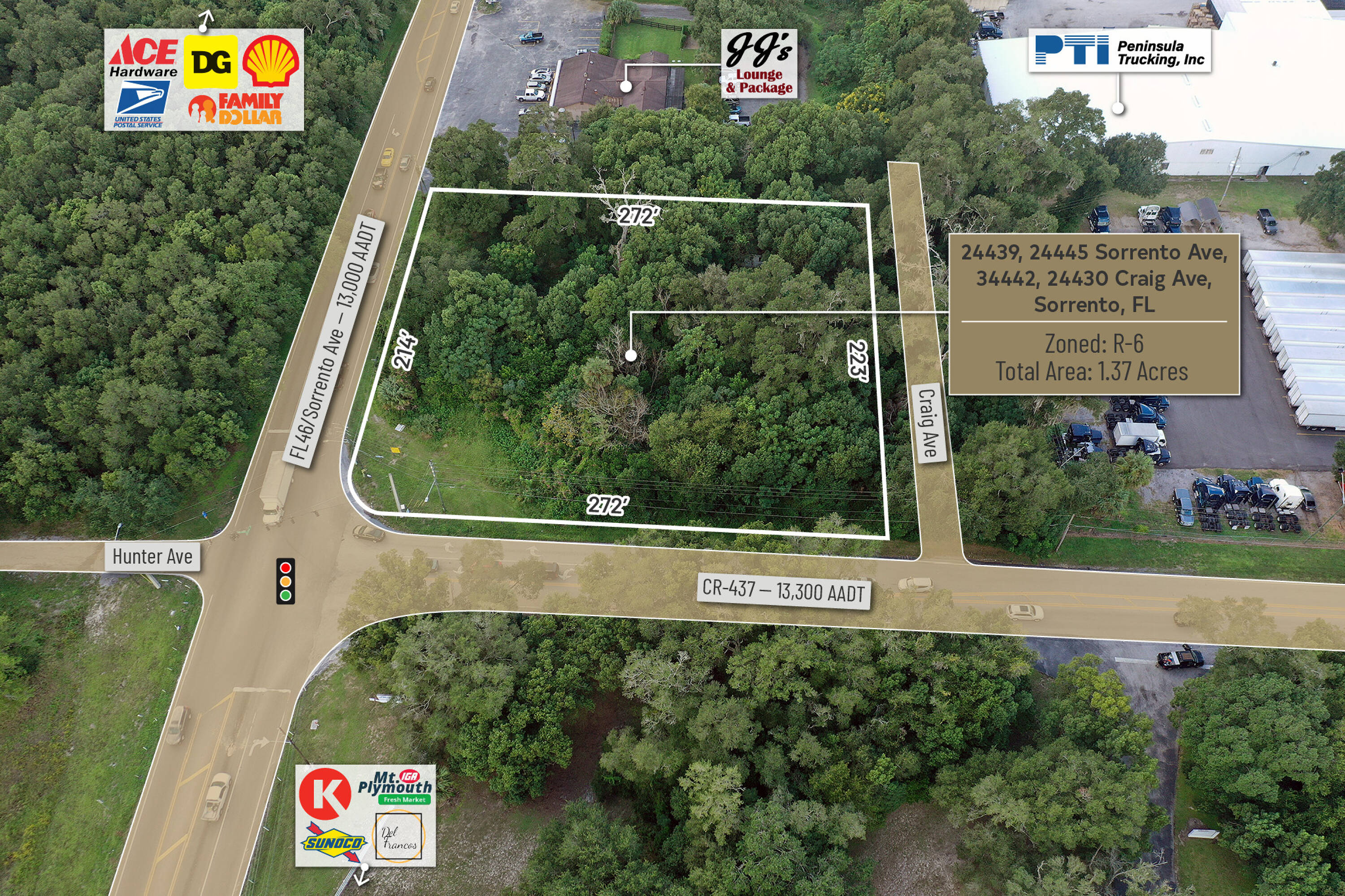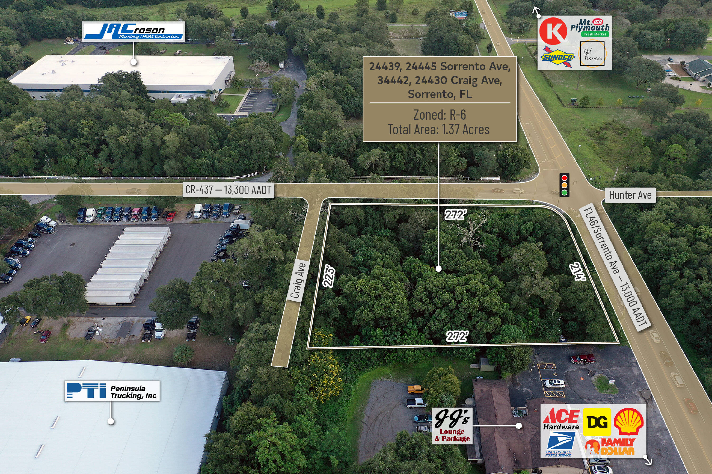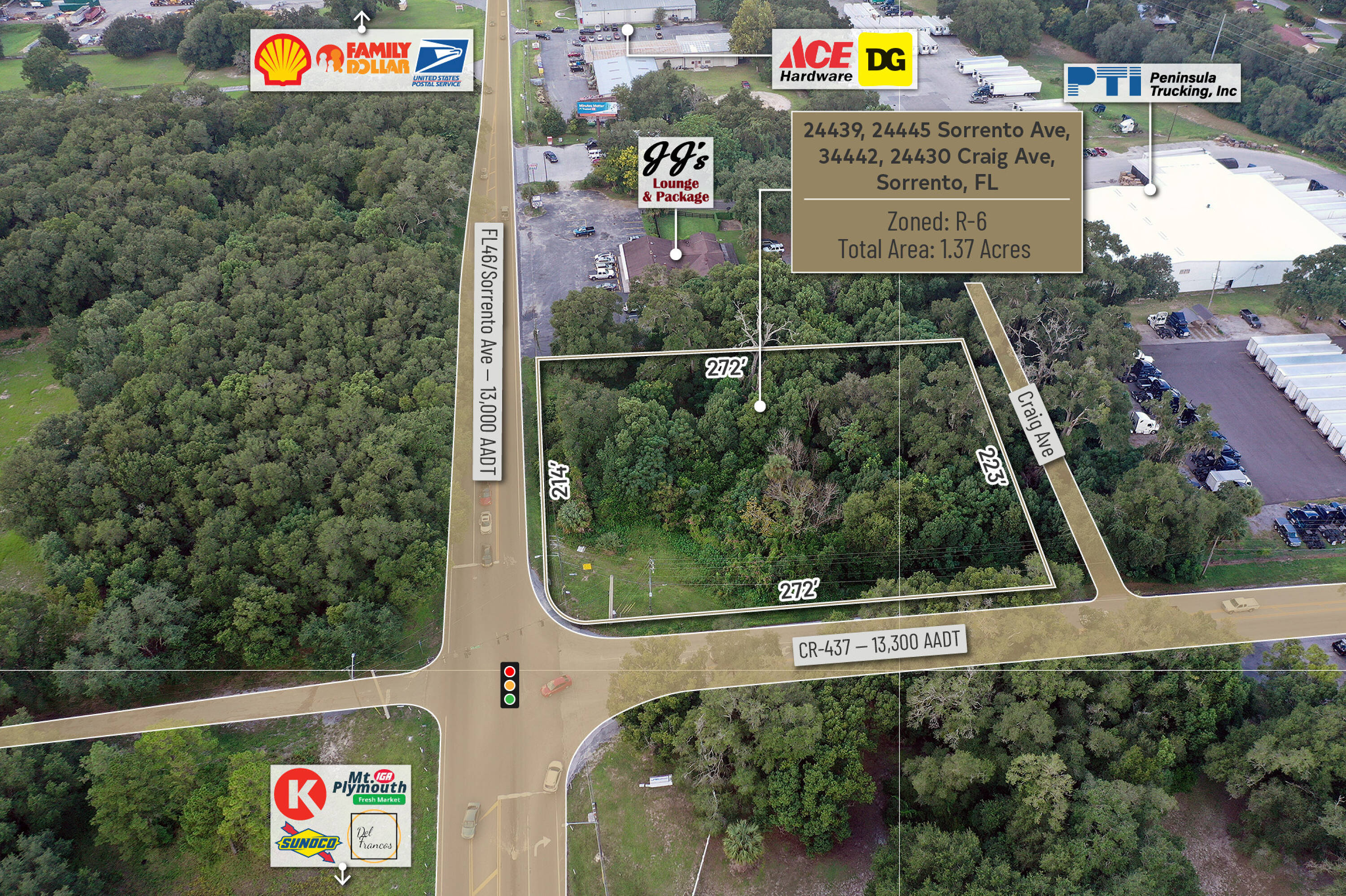 1.37 acres of commercial land at a signalized intersection.