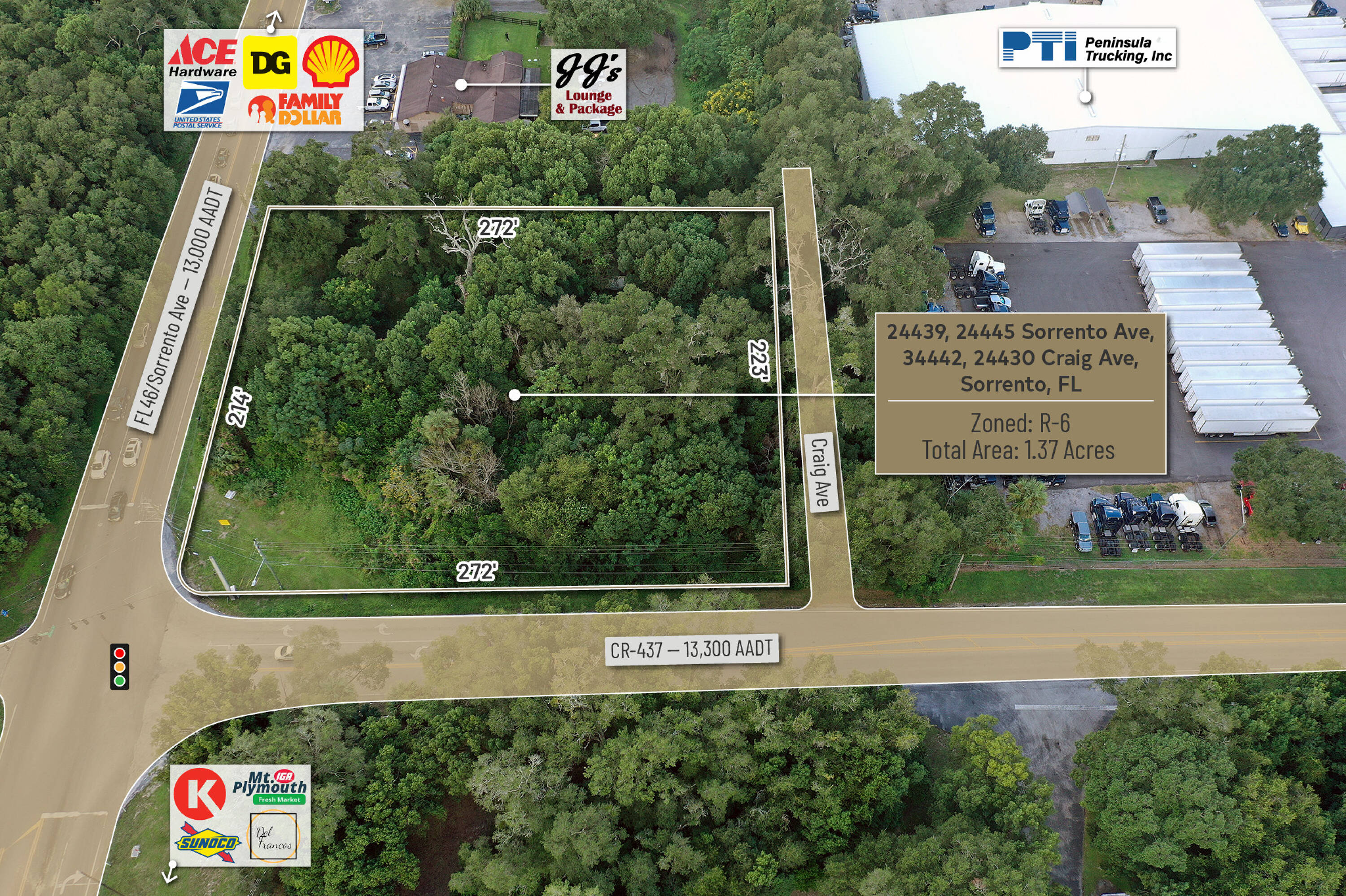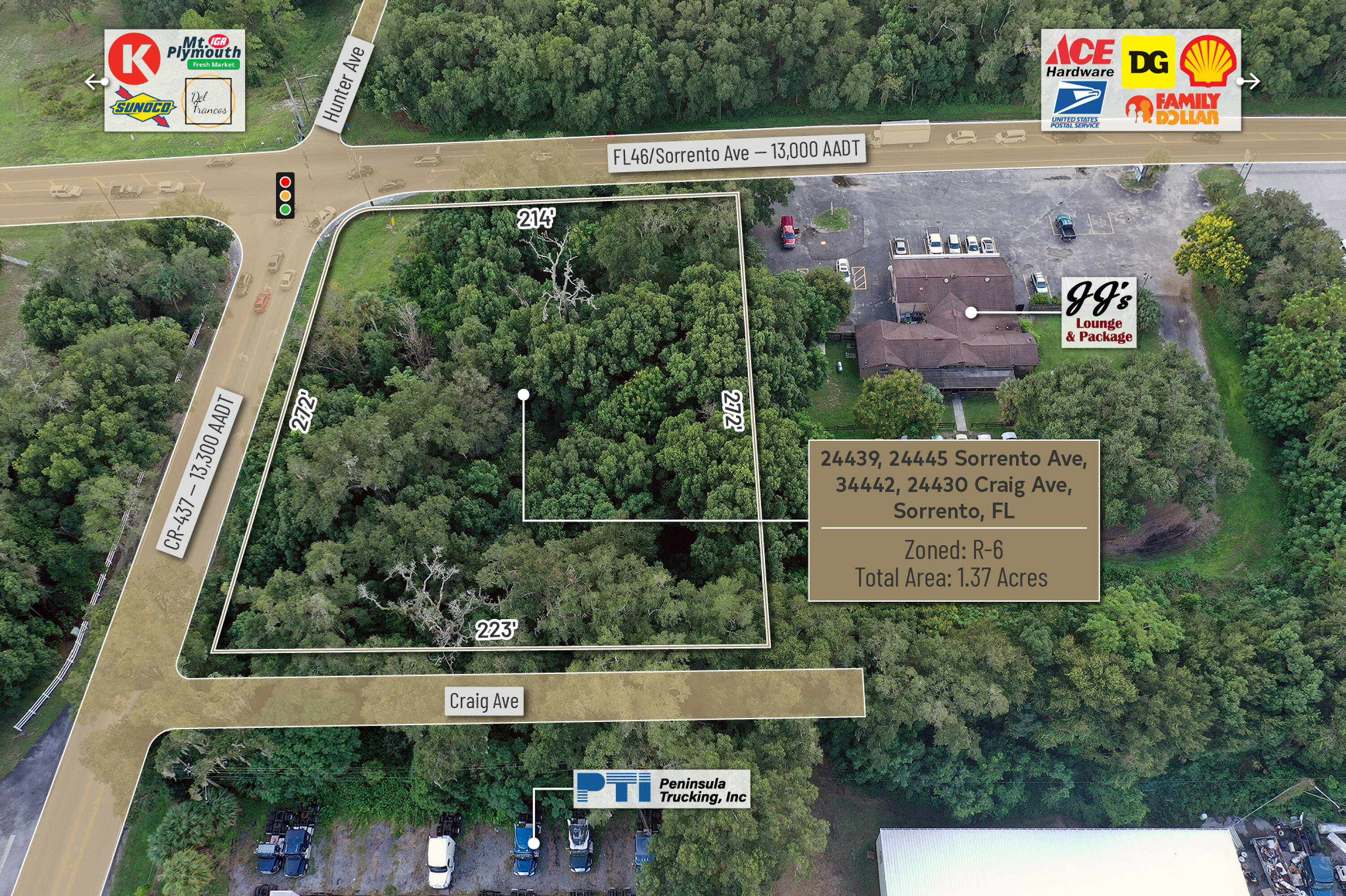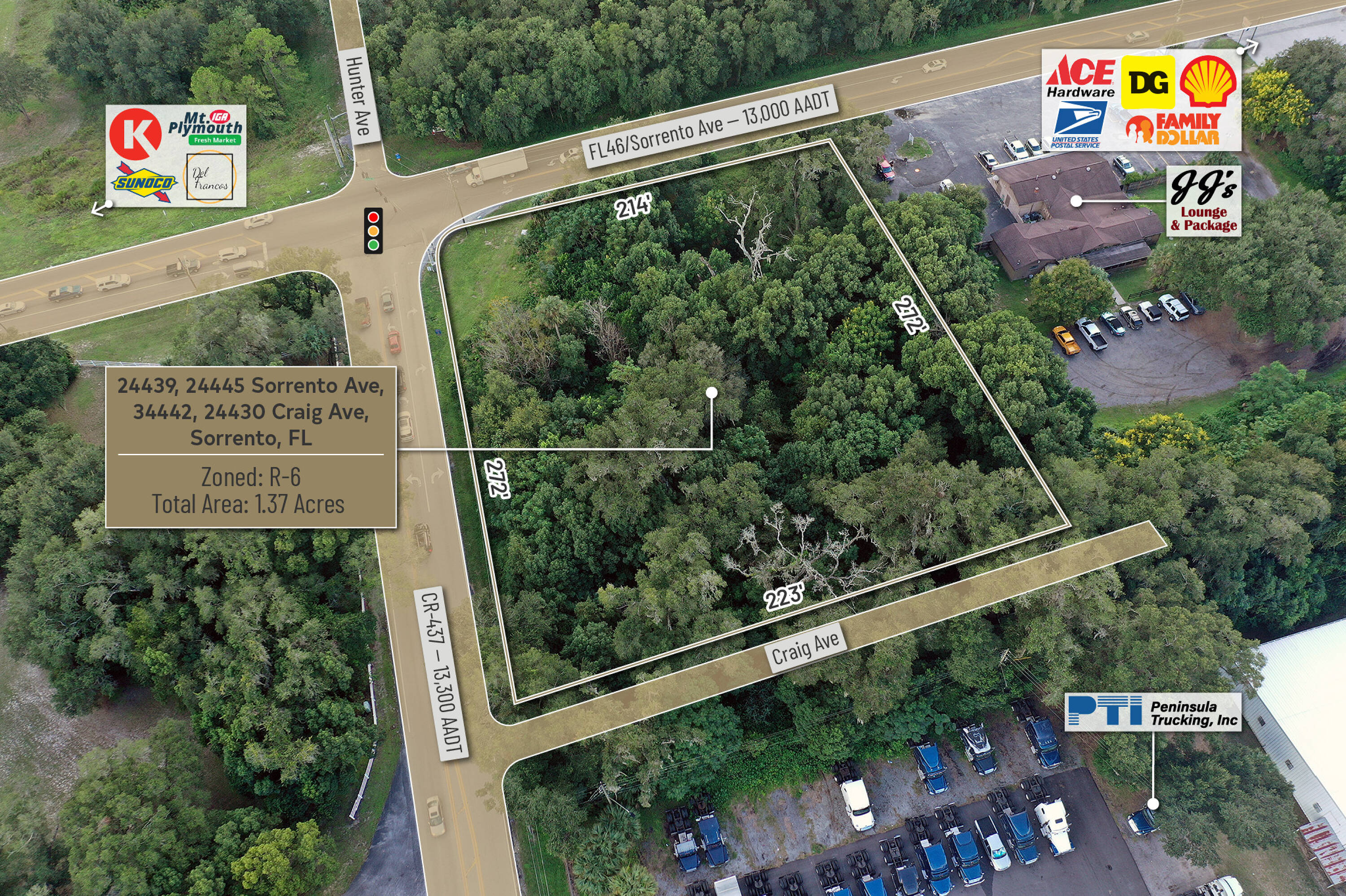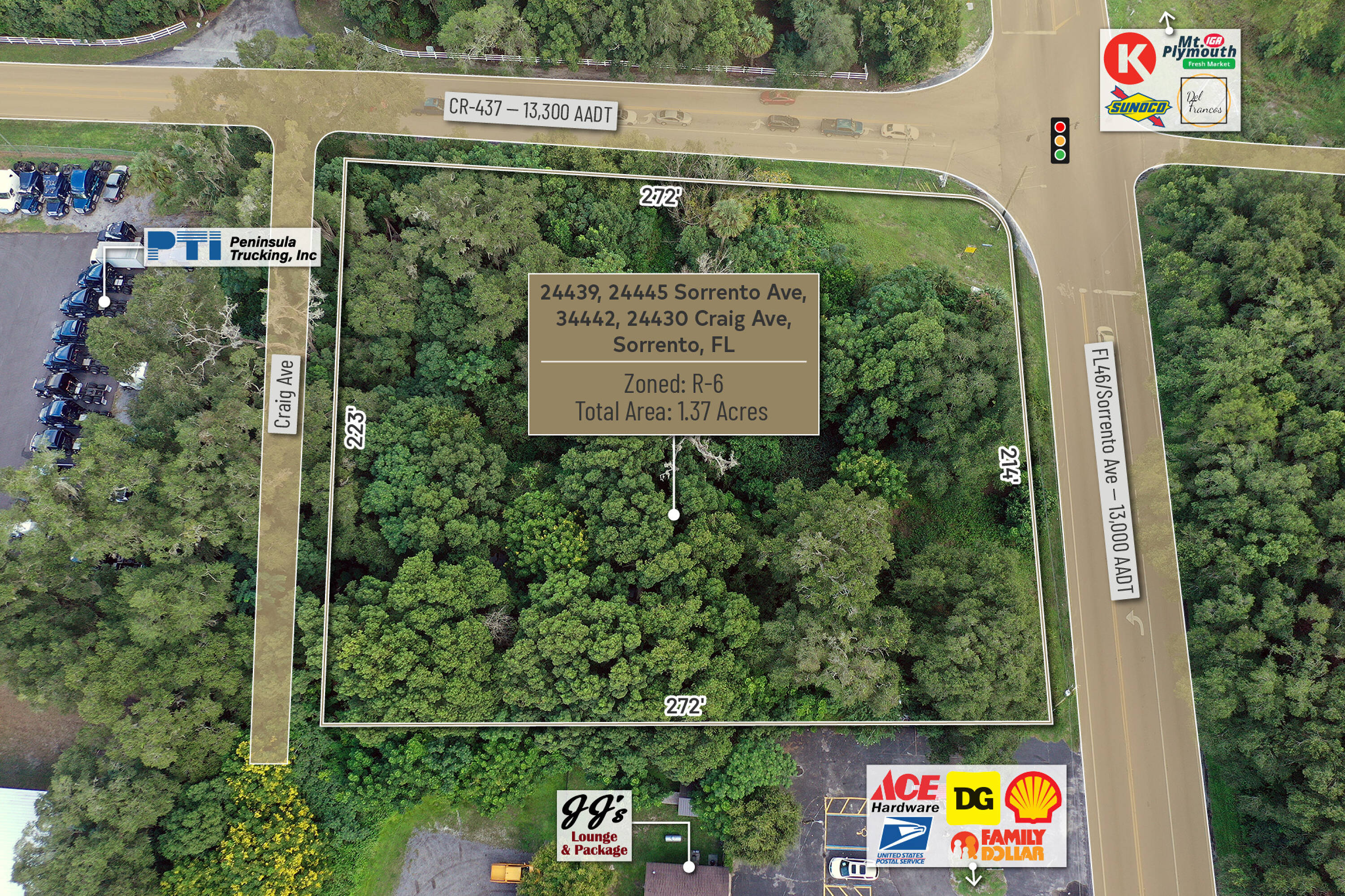 1.37 acres of commercial land at a signalized intersection.