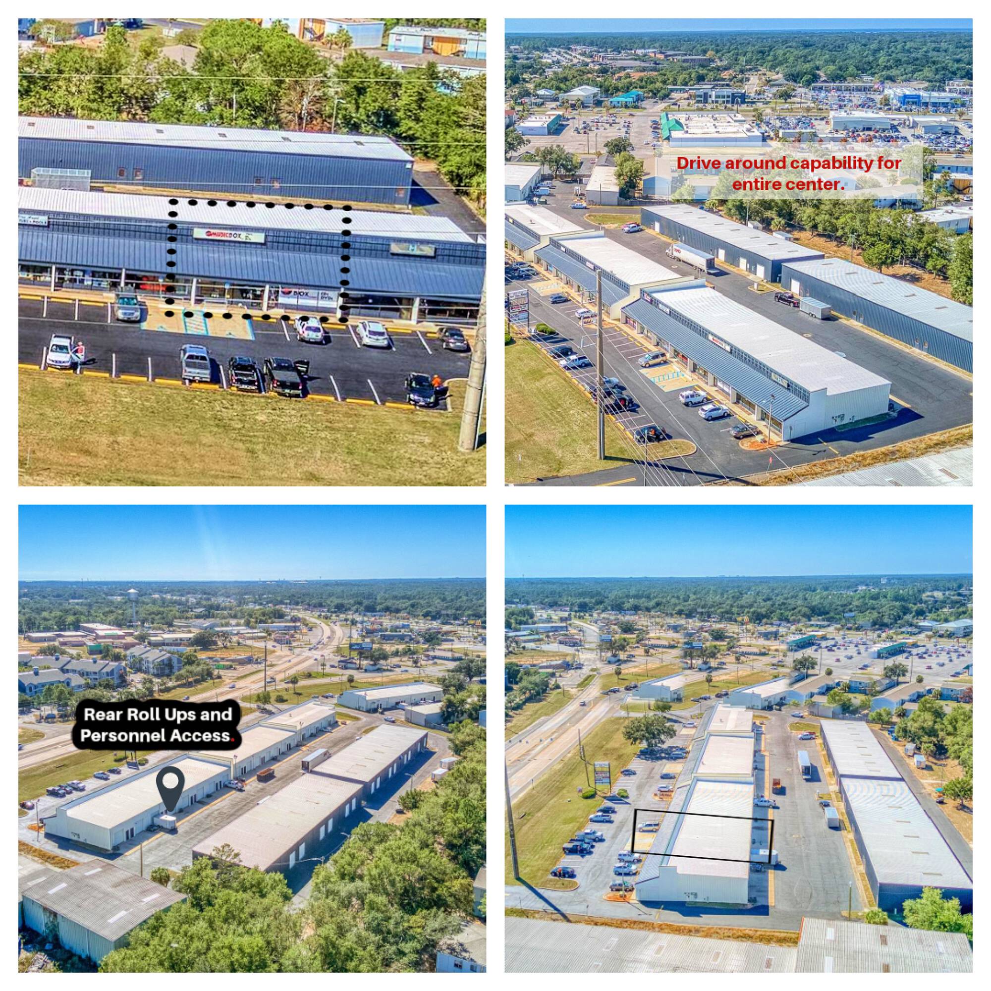 Mixed-use center with office and retail suites for lease.