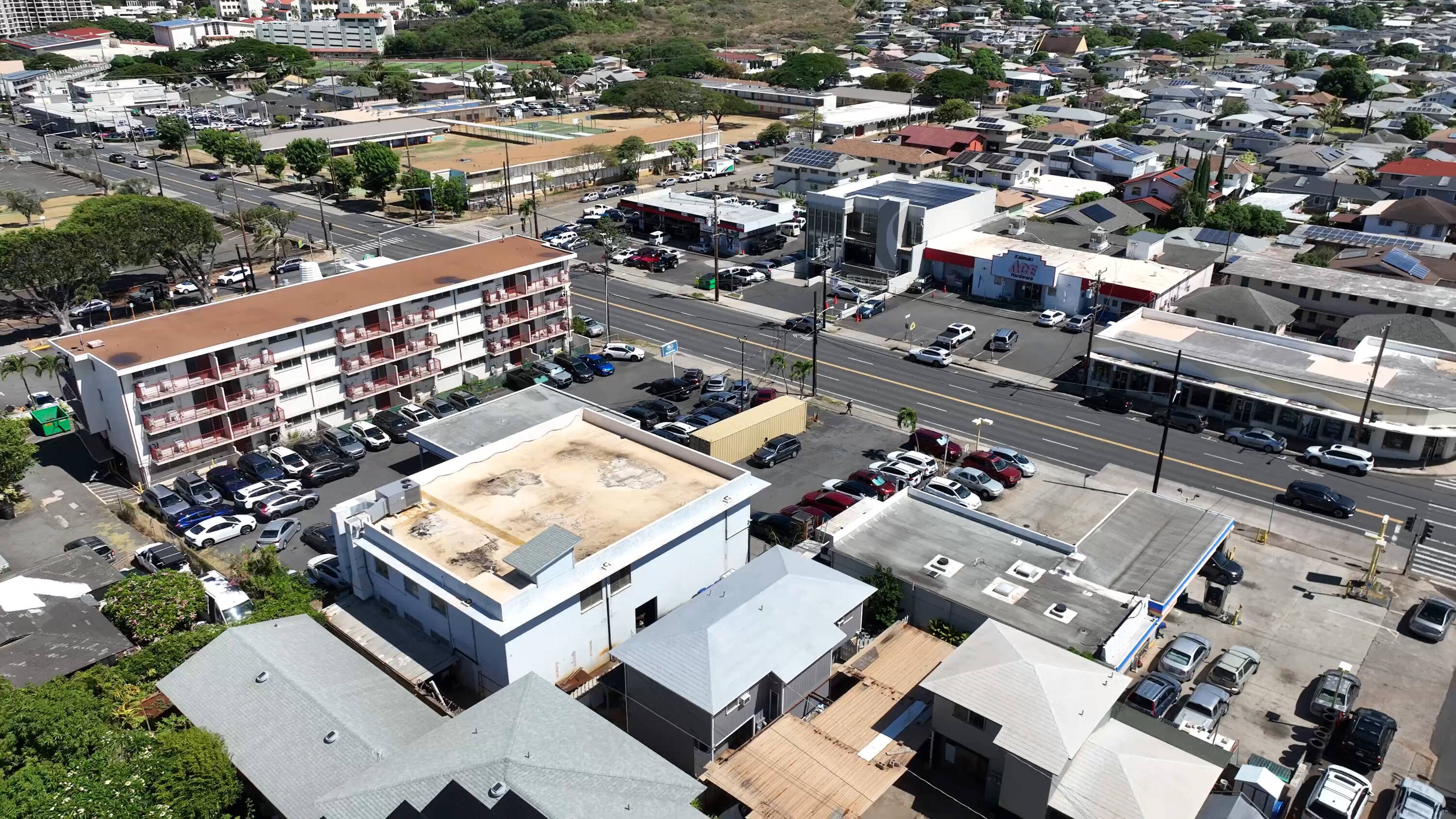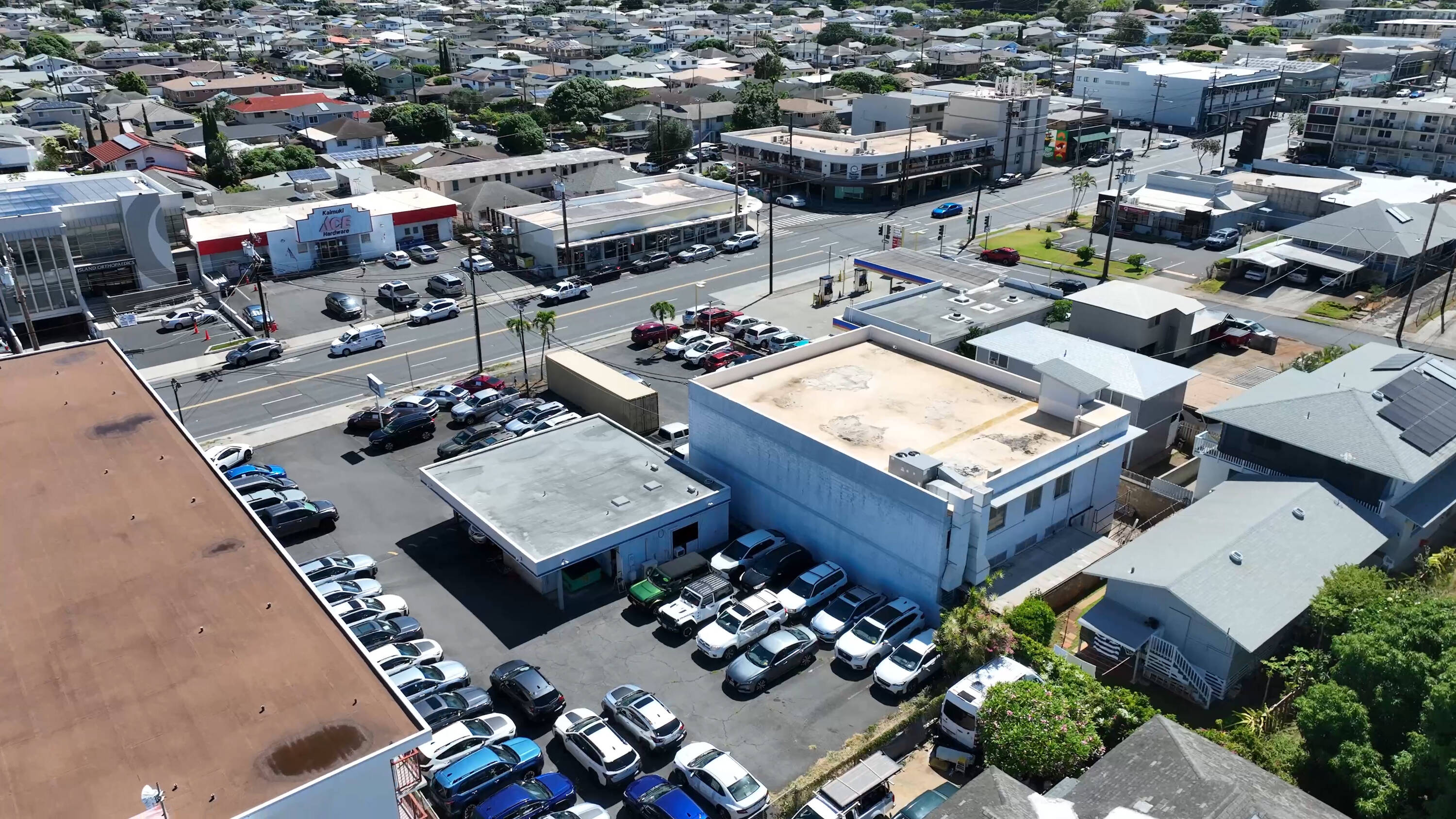 This stand alone building is located on Waialae Avenue in the Kaimuki neighborhood. The property offers retail space, office areas, and a storage space with a roll up door. The location provides high visibility and accessibility. The property is located across the street from Kaimuki Ace Hardware and next to Kaimuki Auto Repair. It suits a variety of business needs.