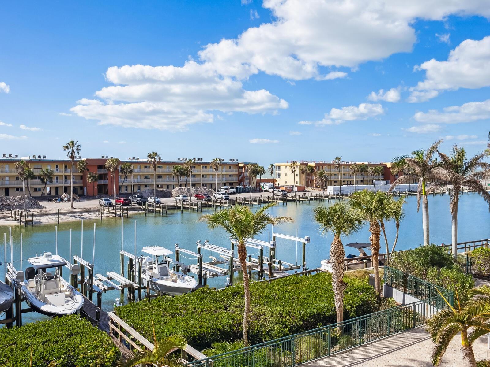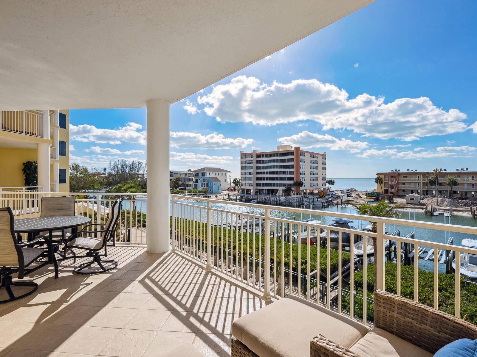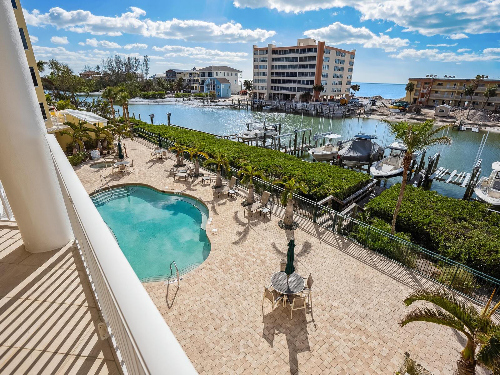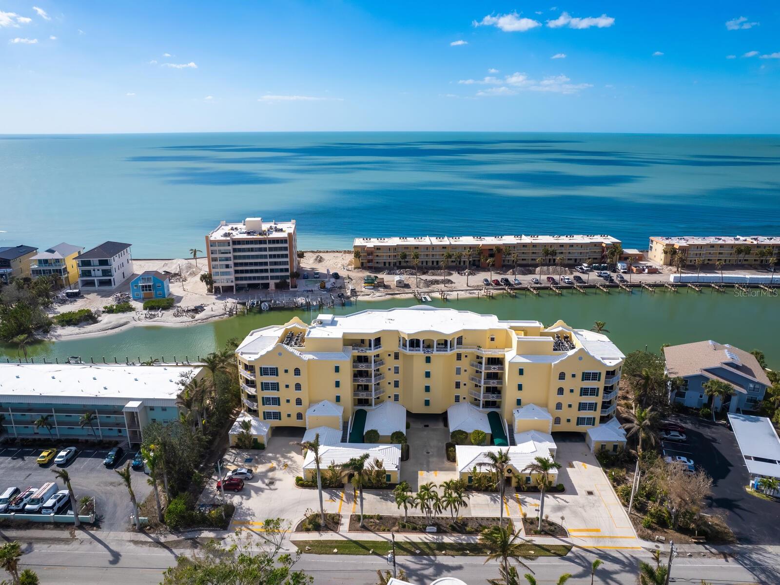 Three-bedroom, two-bath waterfront condominium with gulf views and private garage.