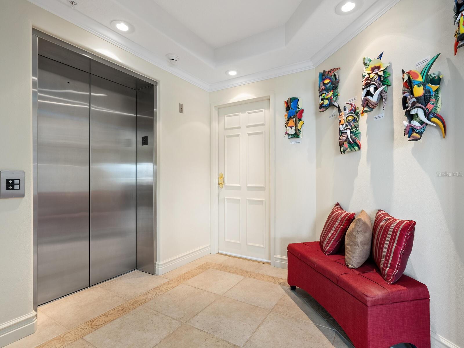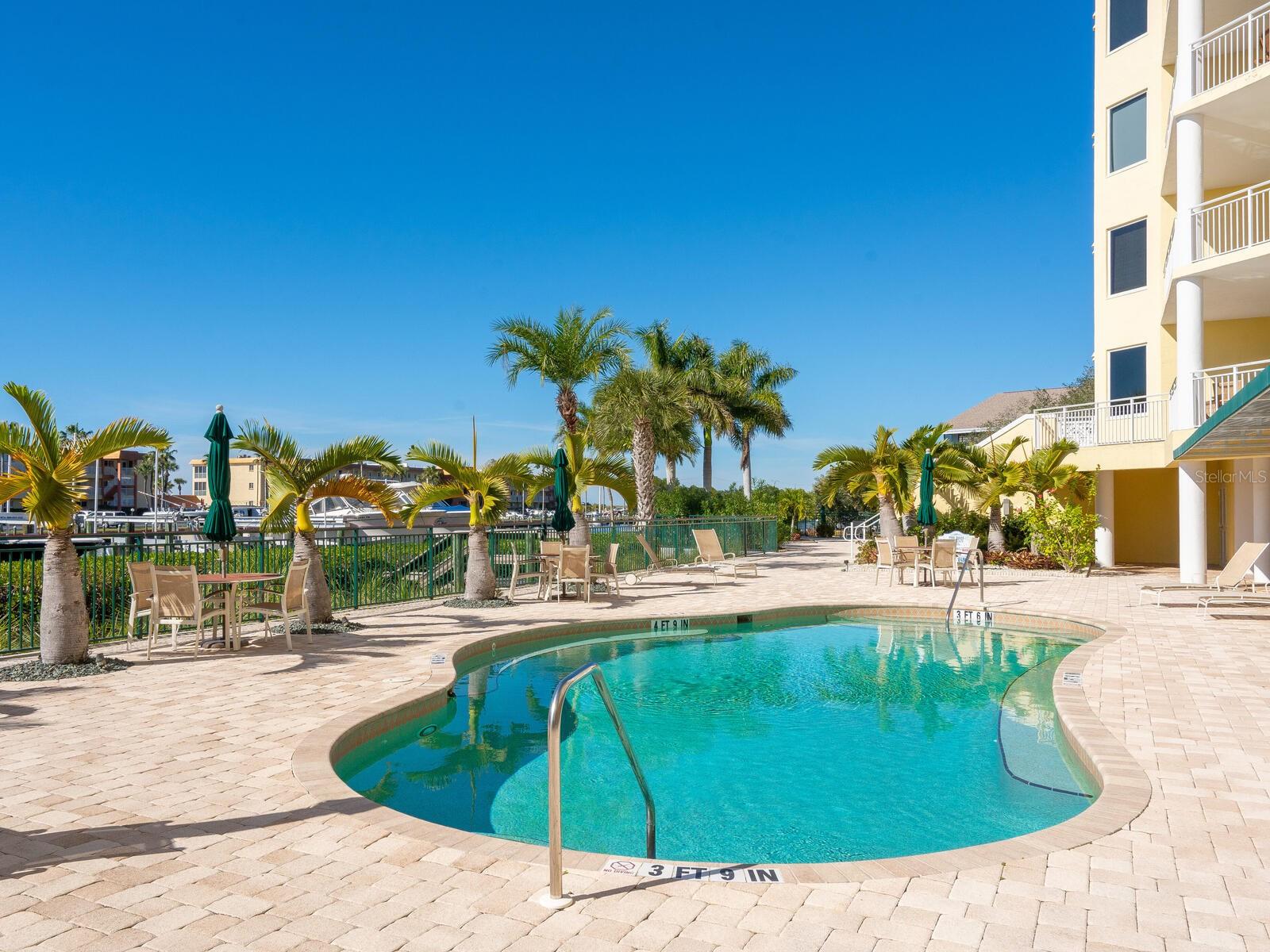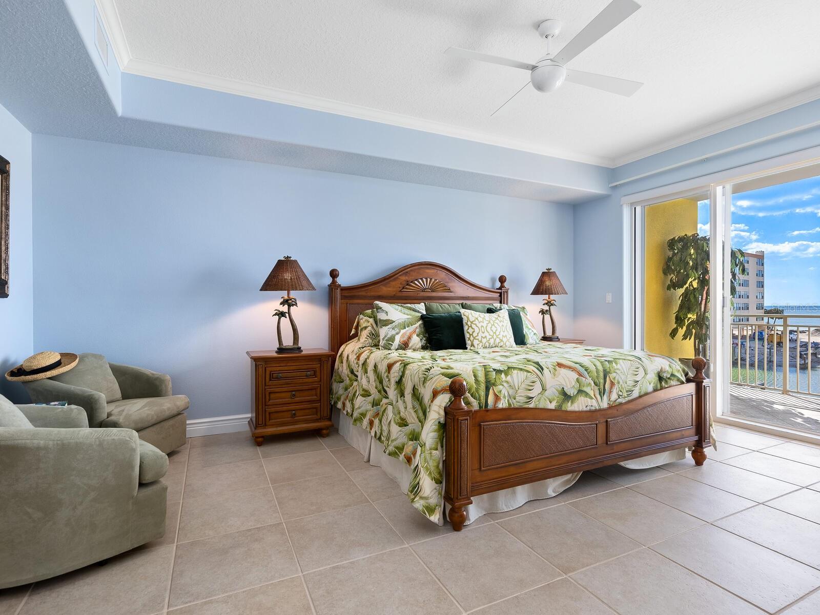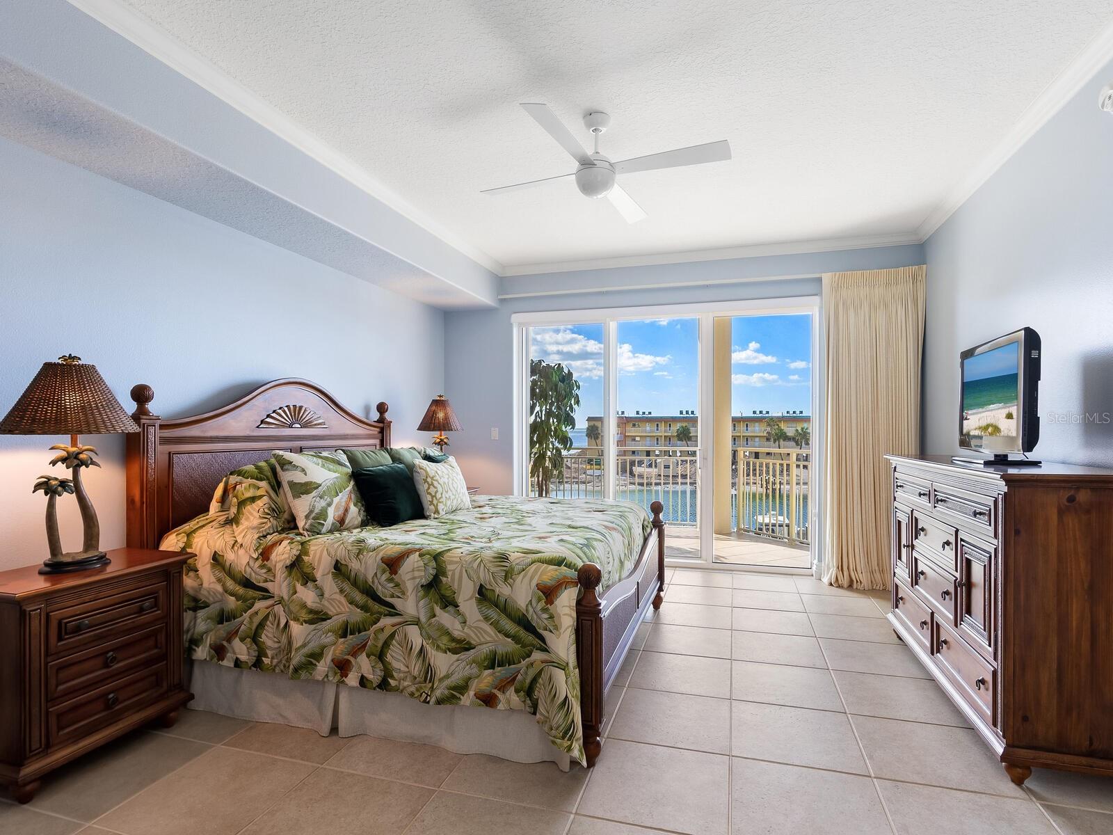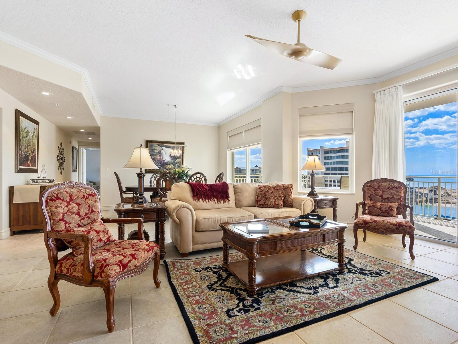 Three-bedroom, two-bath waterfront condominium with gulf views and private garage.