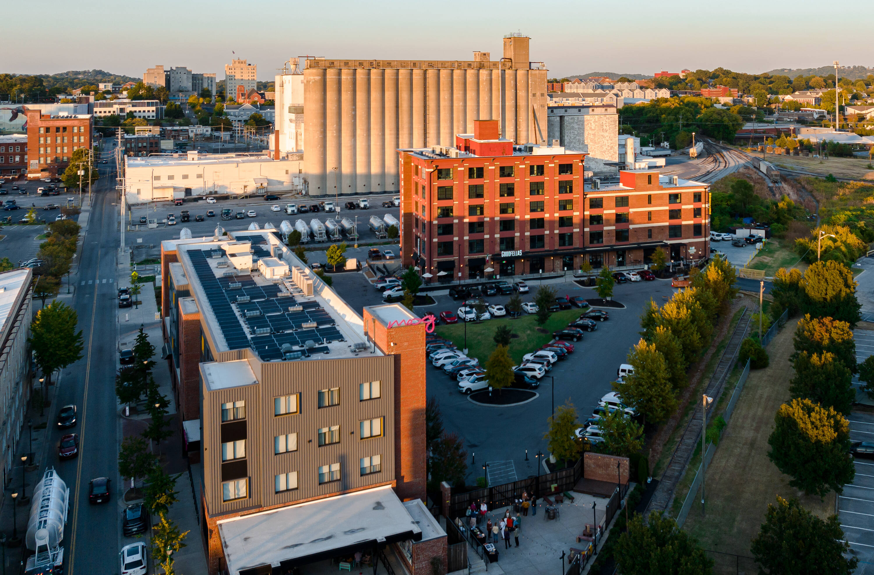 Vibrant mixed-use development with office, hotel, and dining options.
