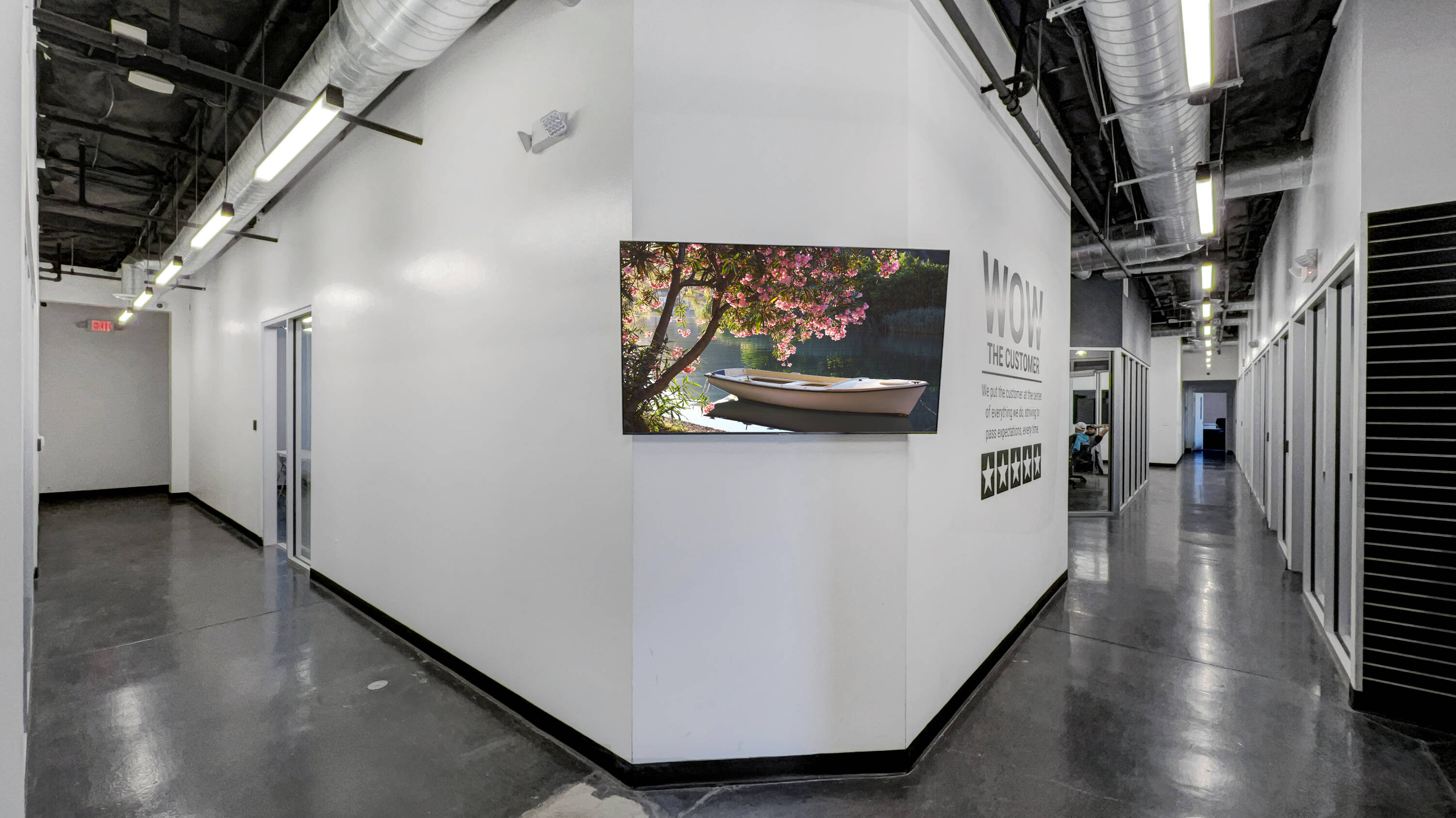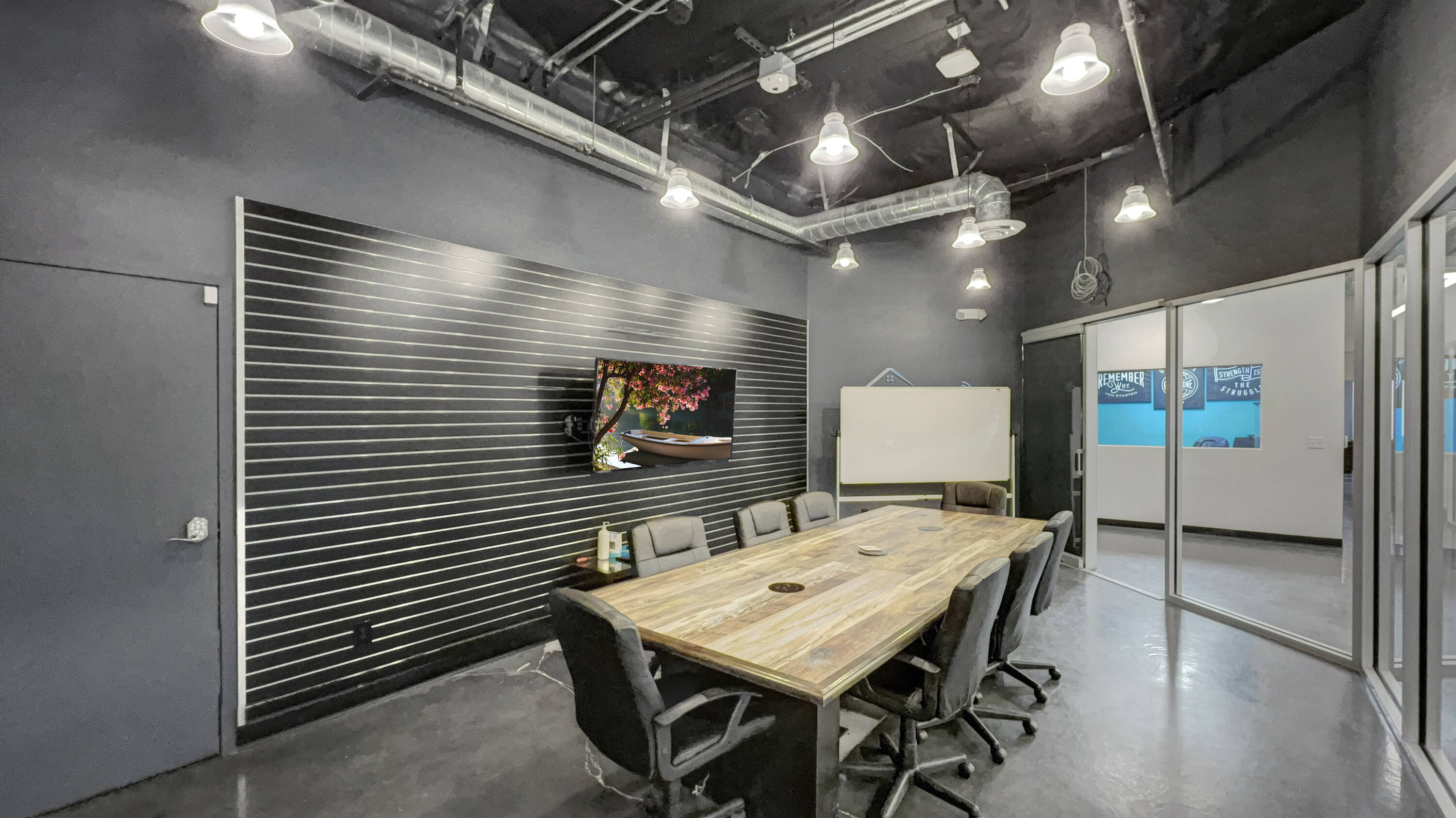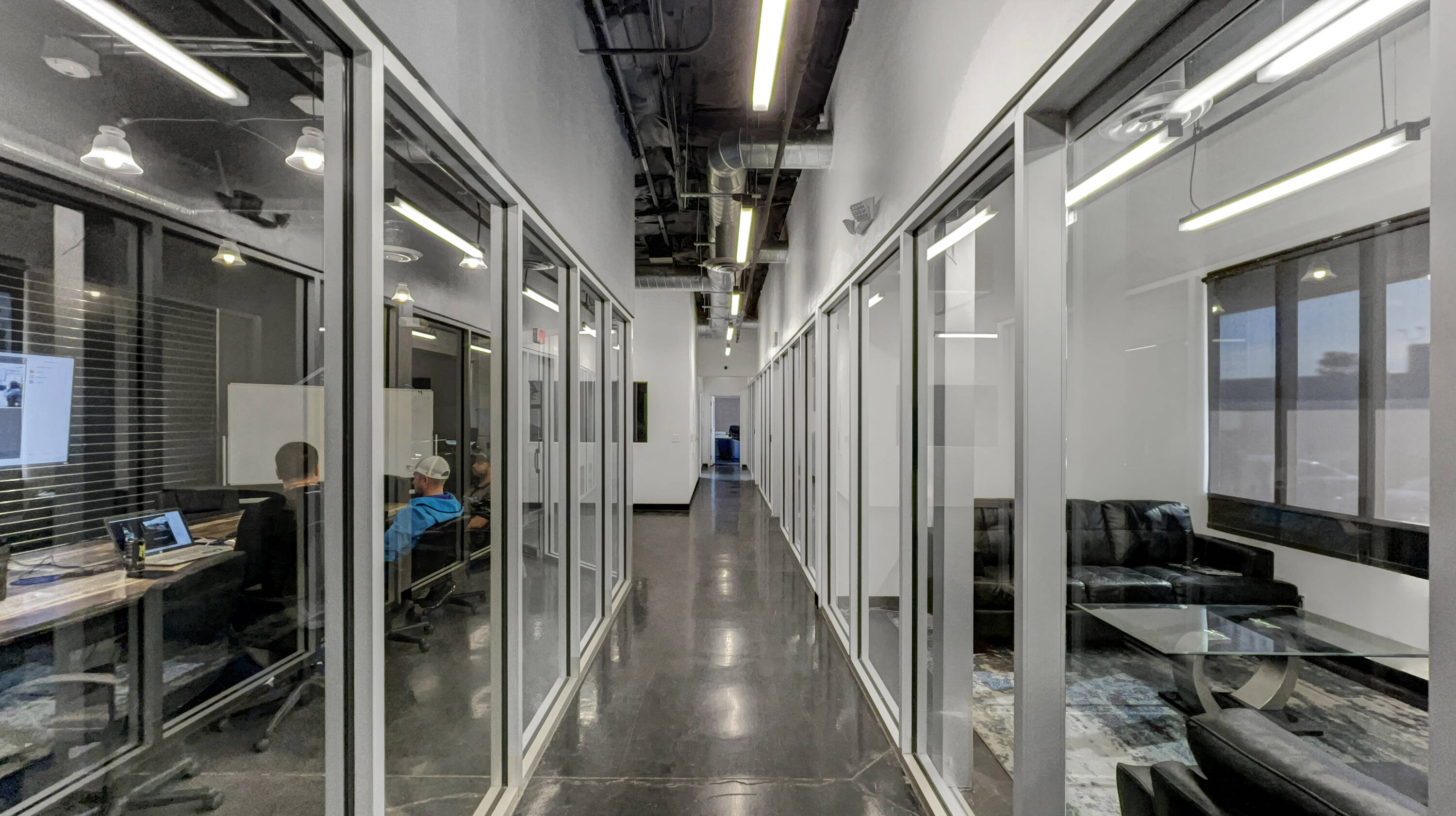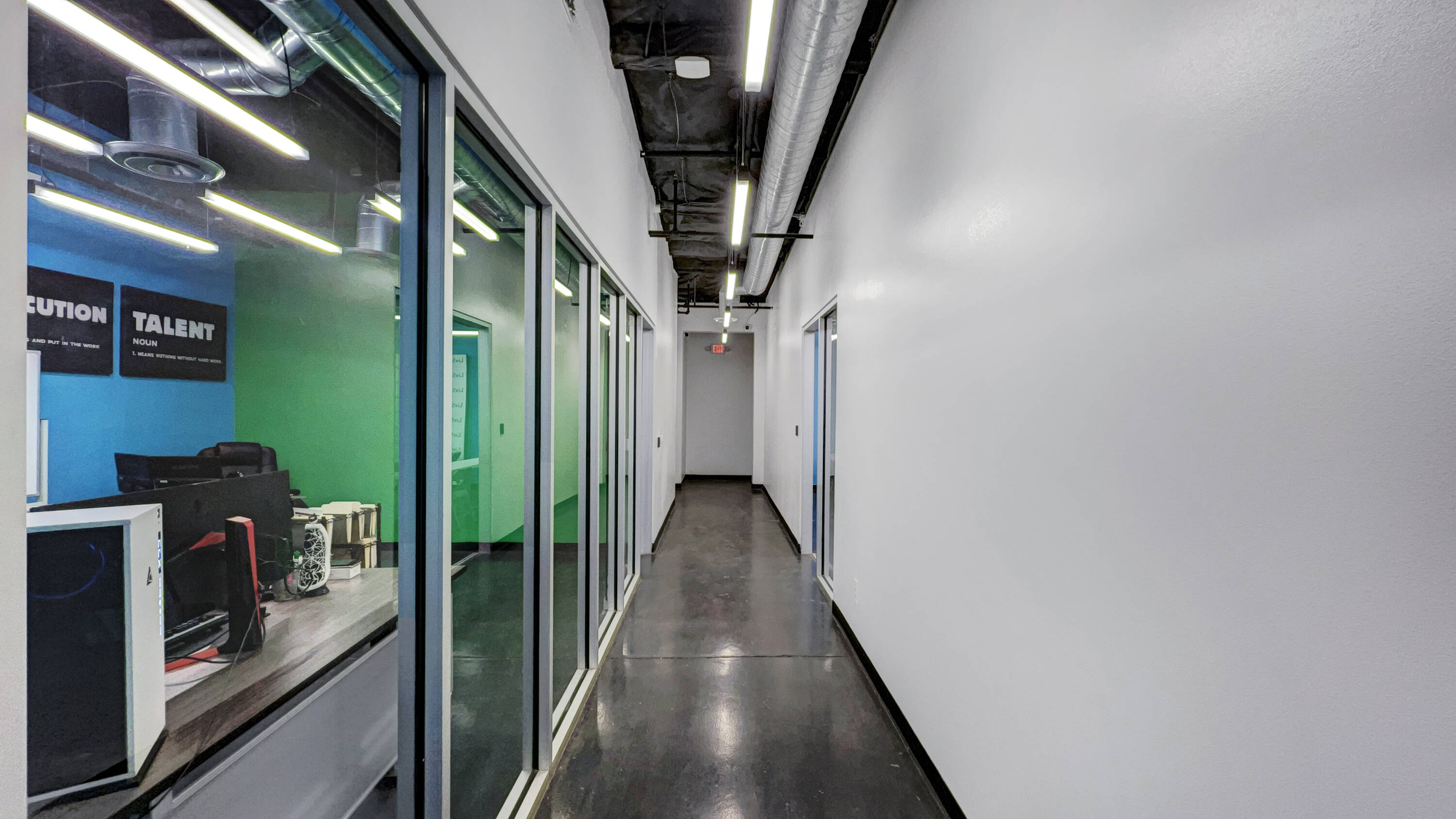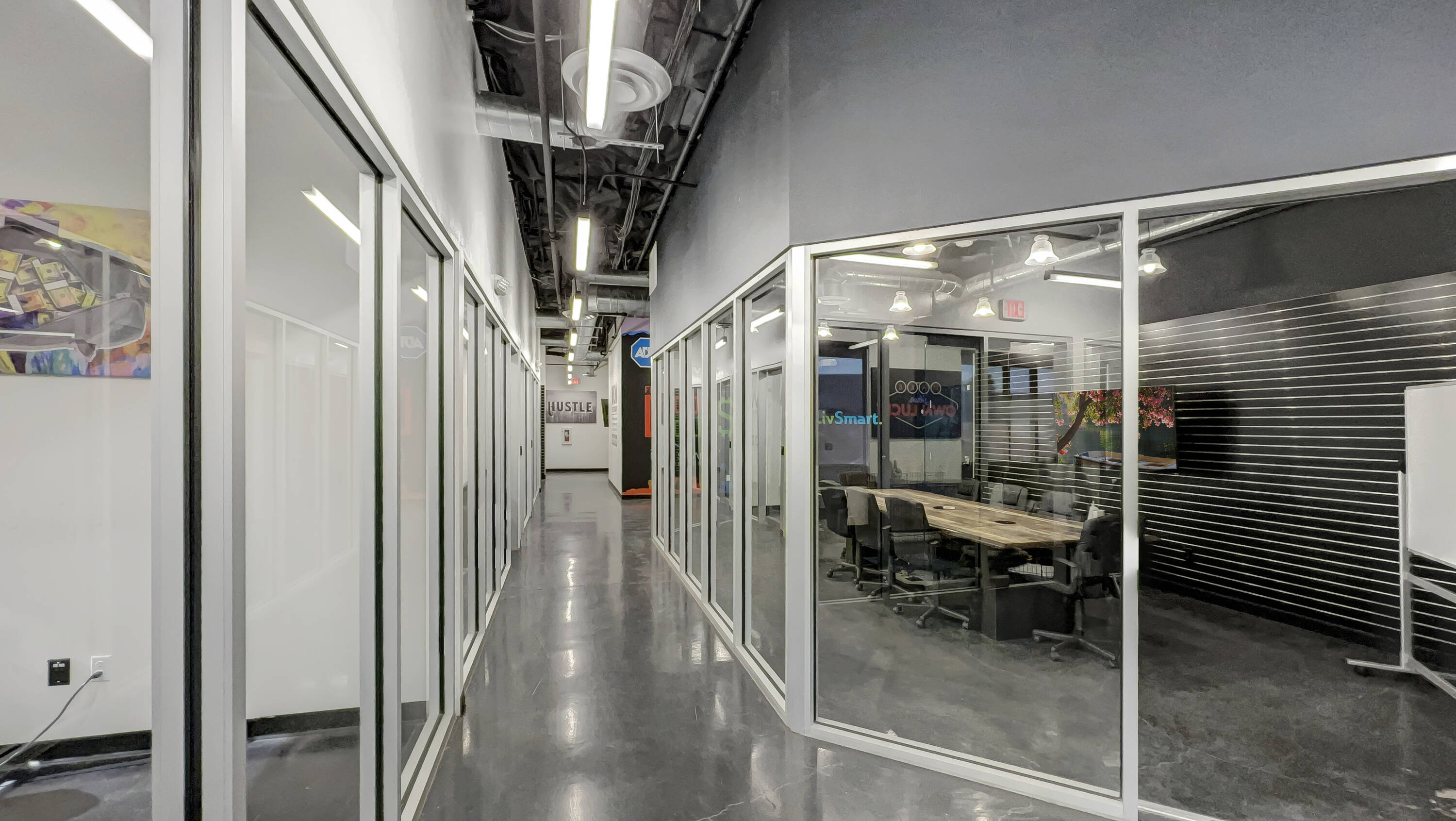 This property features: Ideal office and training environment for a tech company.; Freestanding industrial building with tech appeal.; **Full glass partitions throughout, including a floating conference room.**