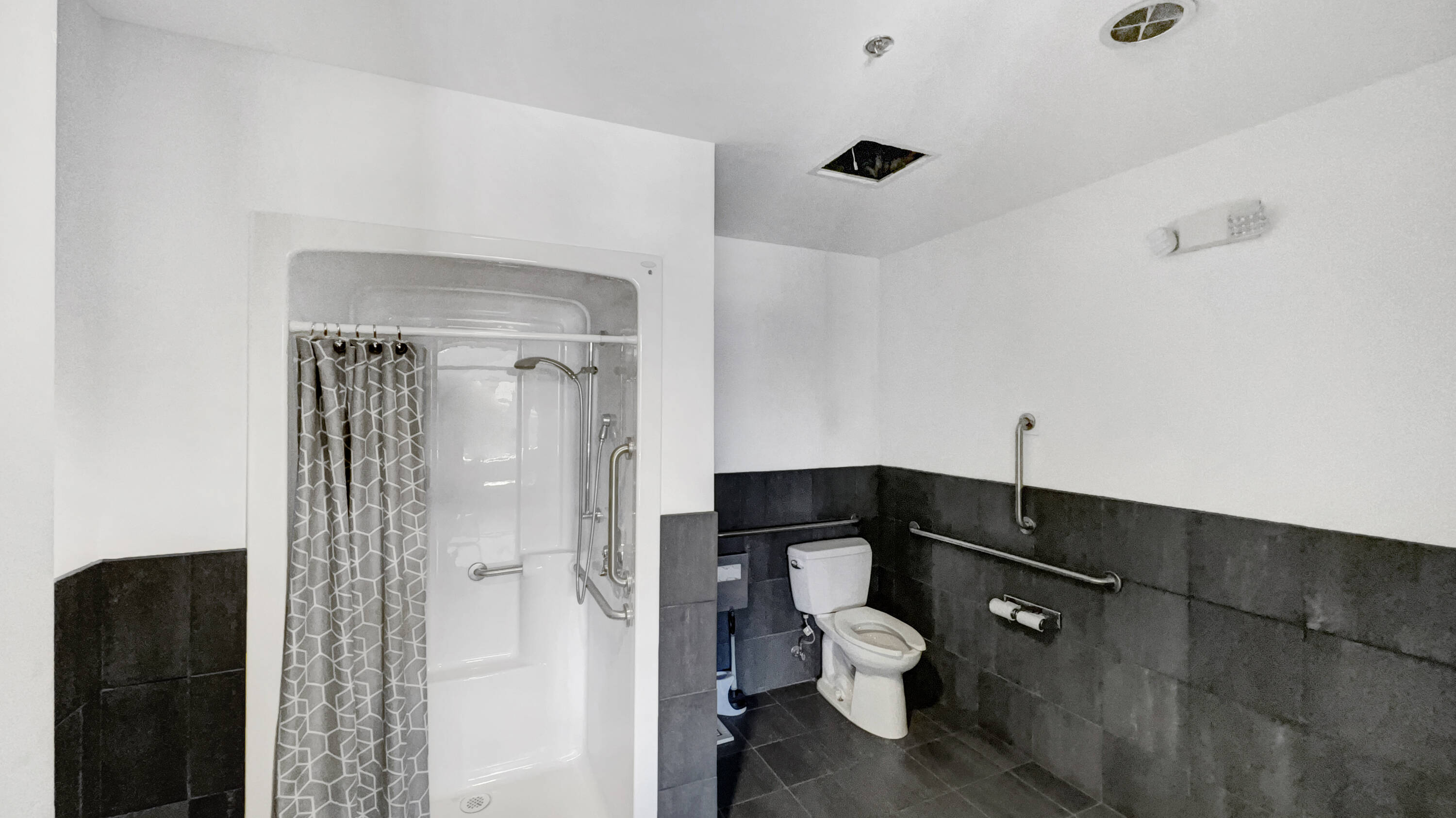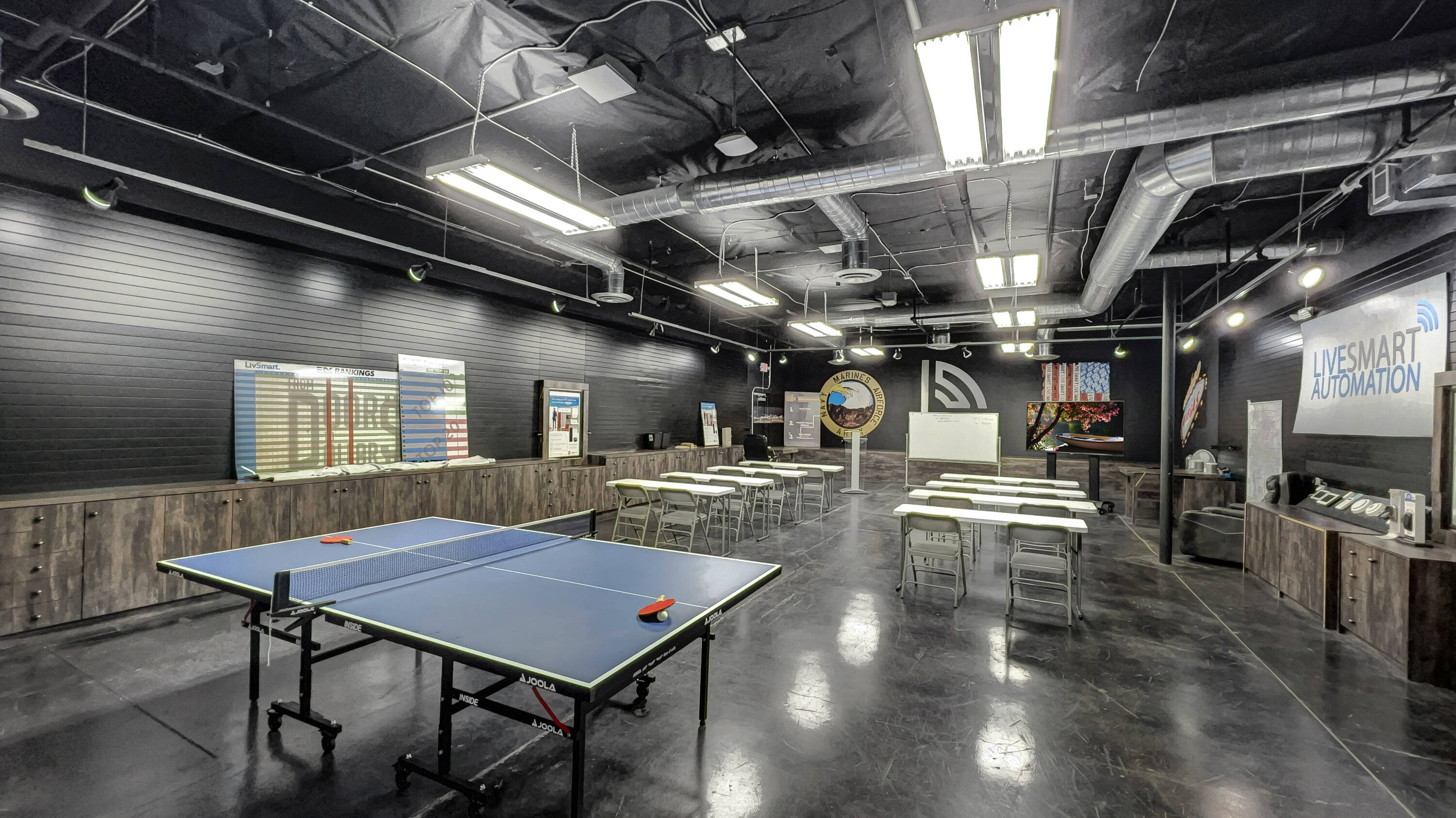 Freestanding industrial building converted into tech company office and training space.