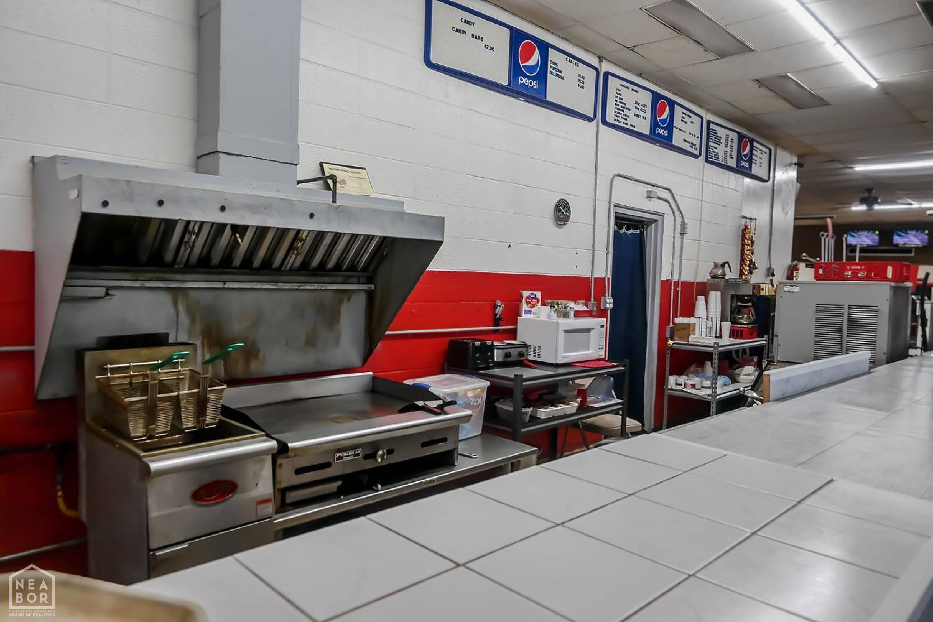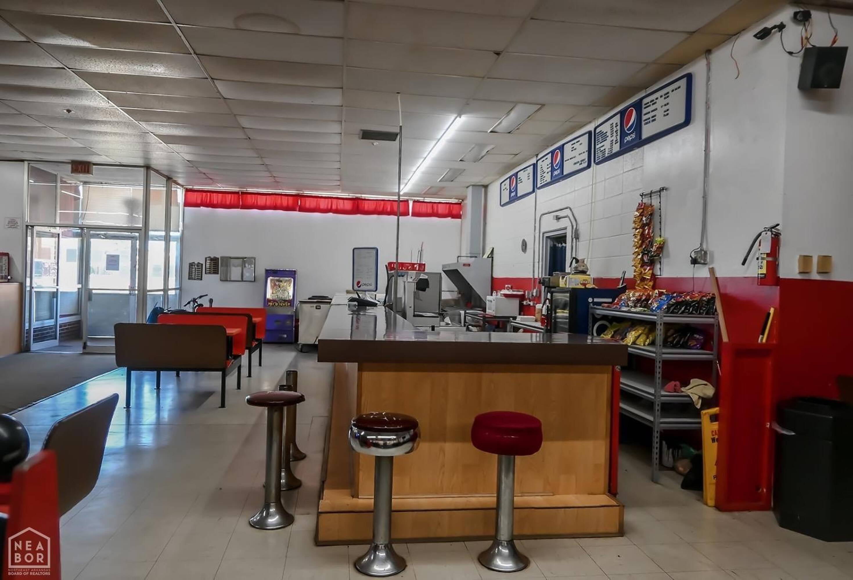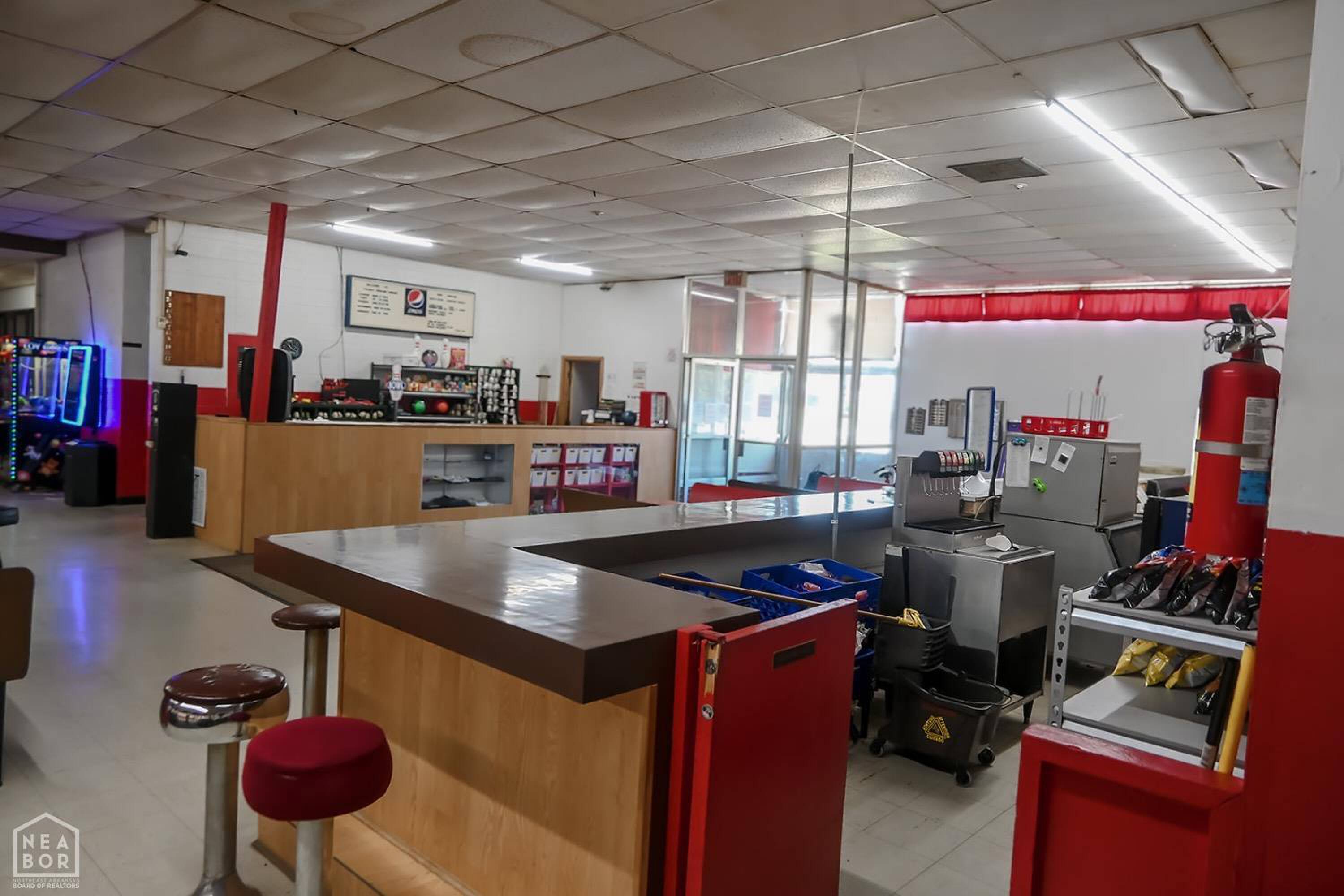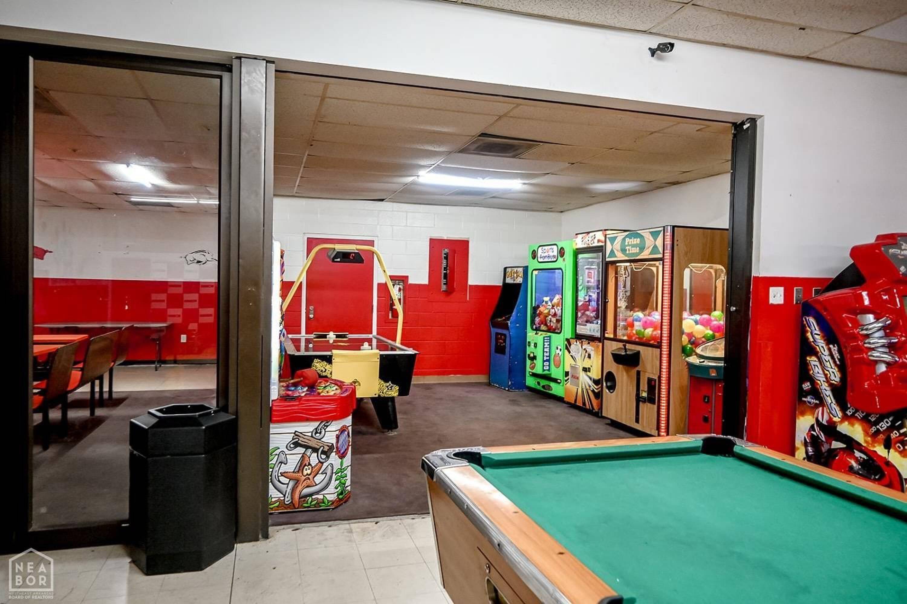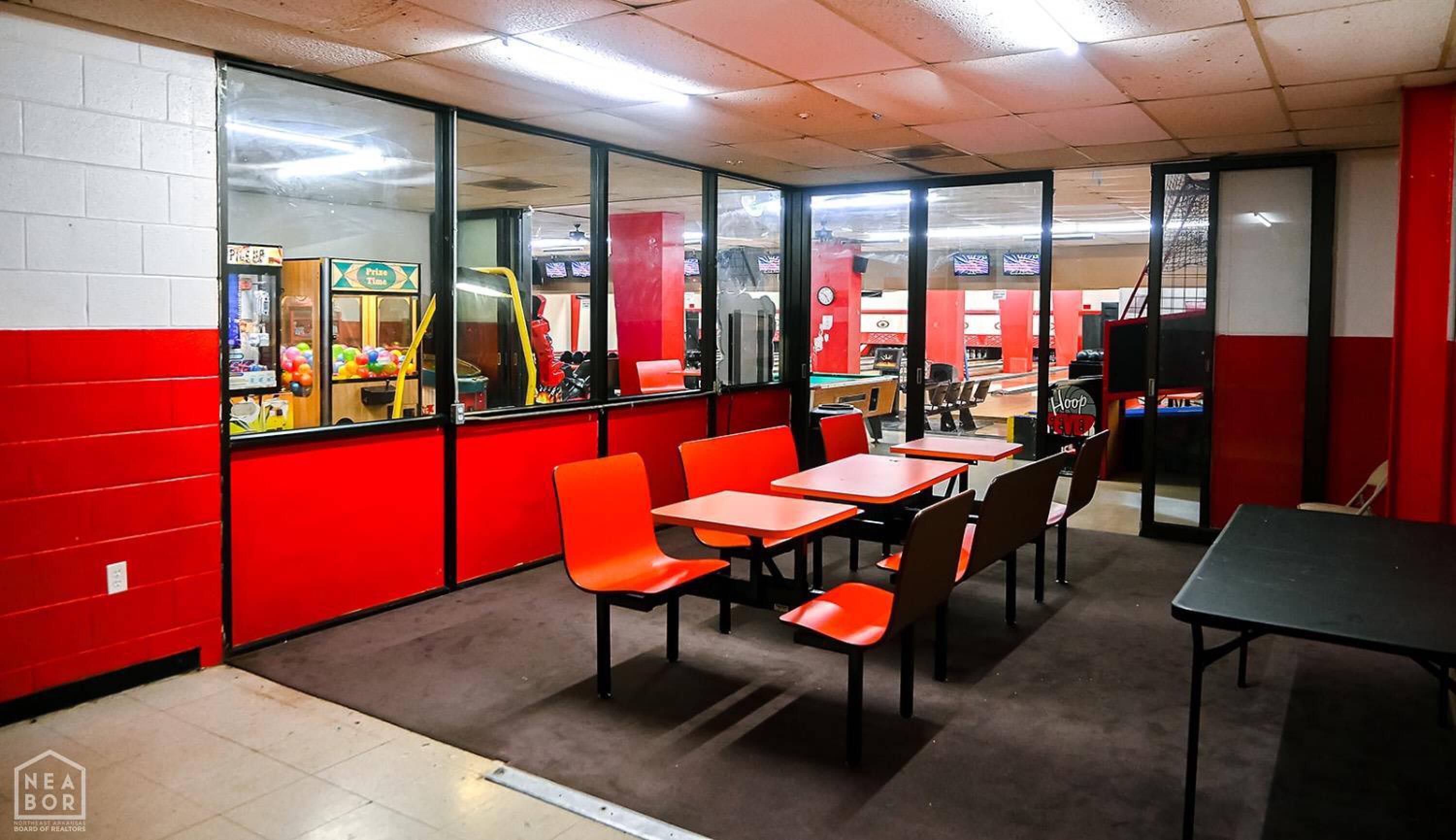 Bowling alley with arcade, restaurant, and party room.