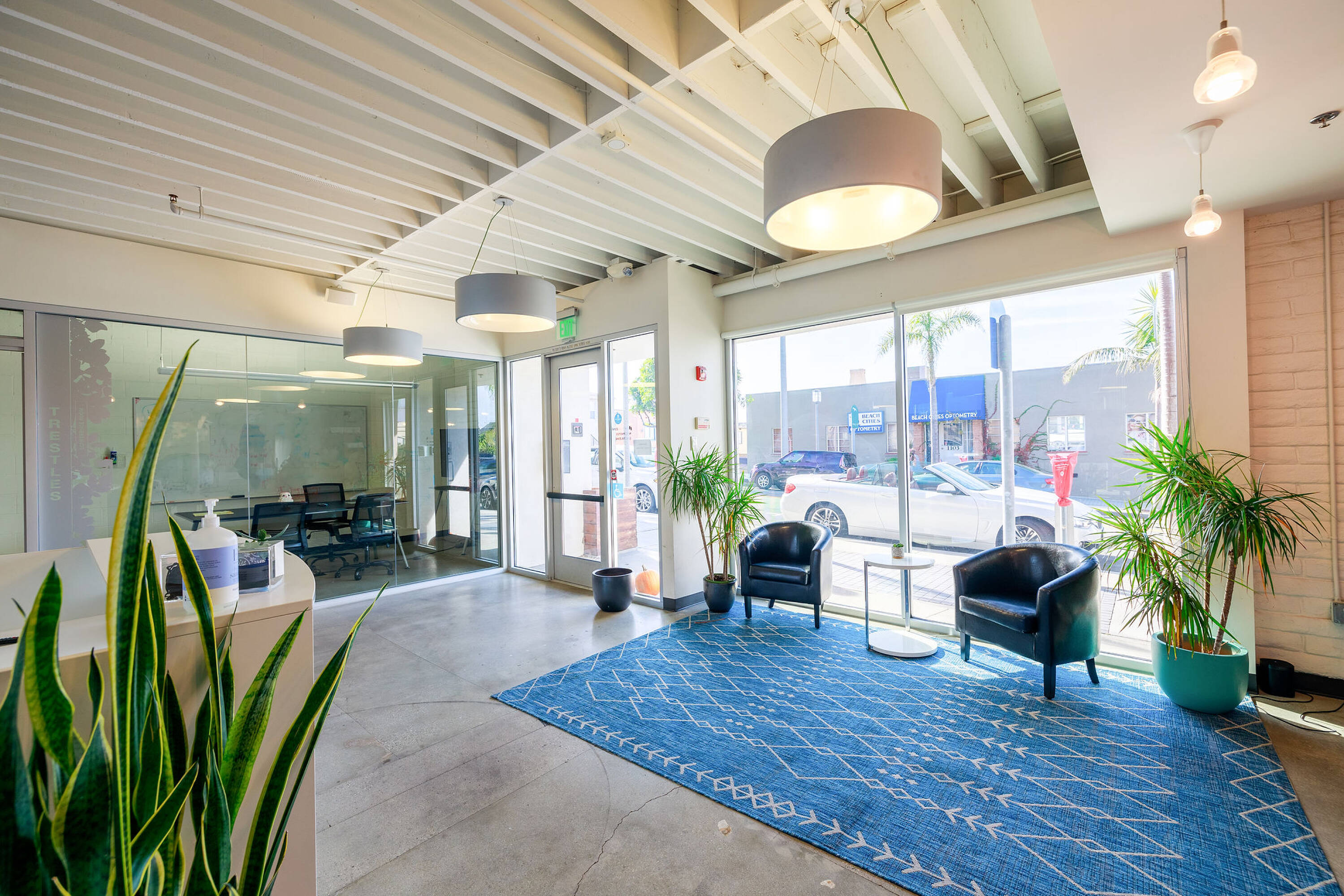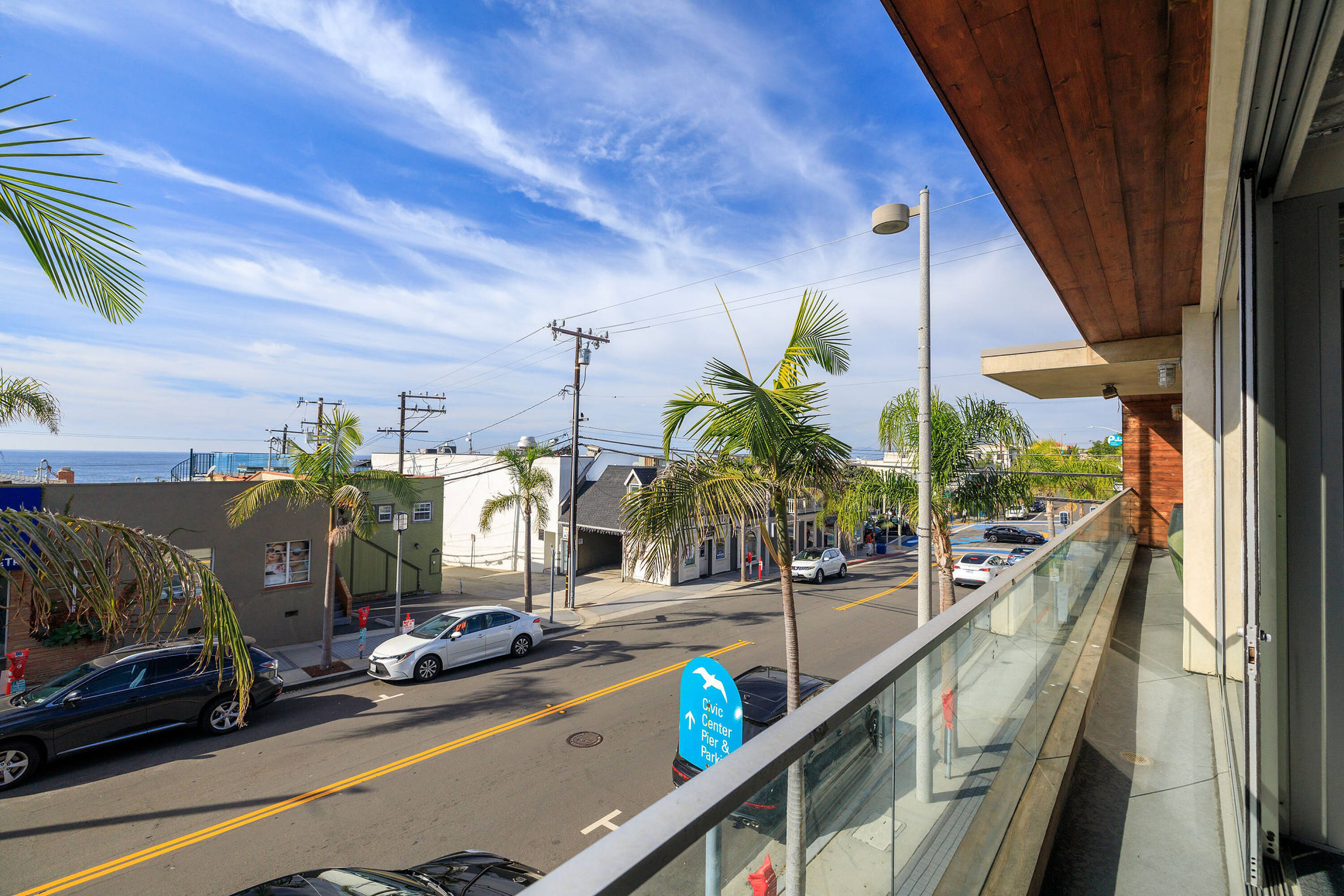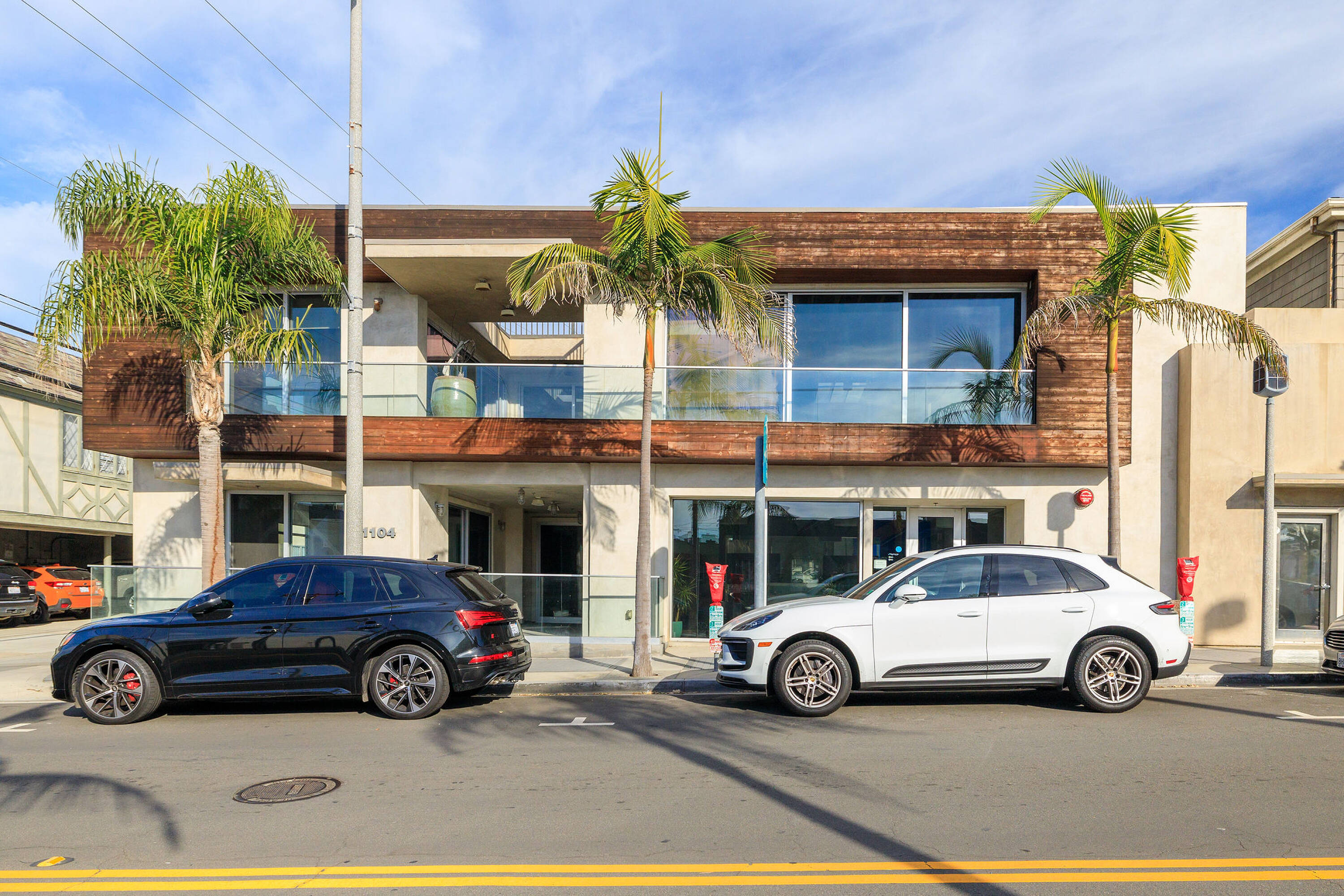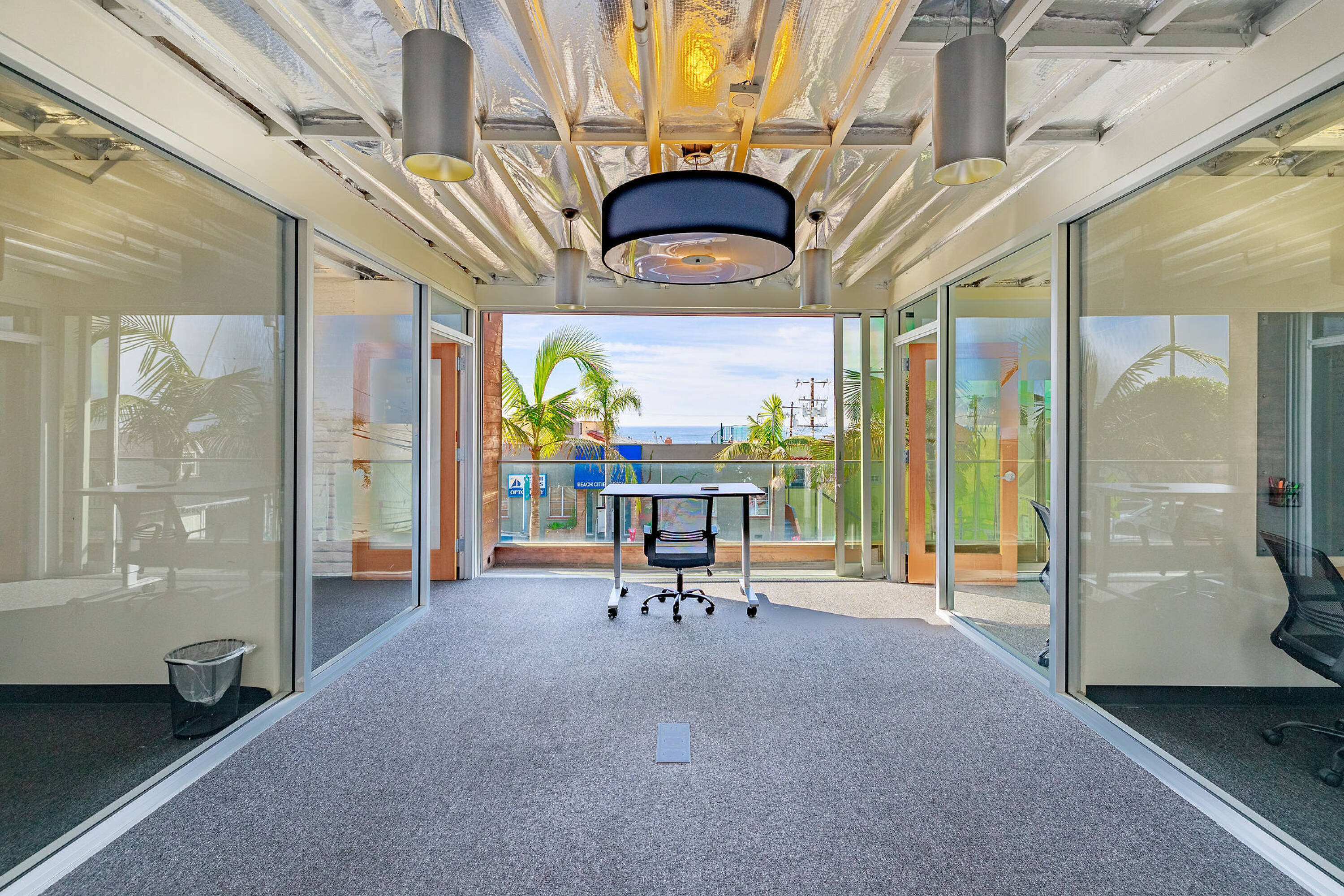 Split-level office building in downtown Manhattan Beach with ocean views.
