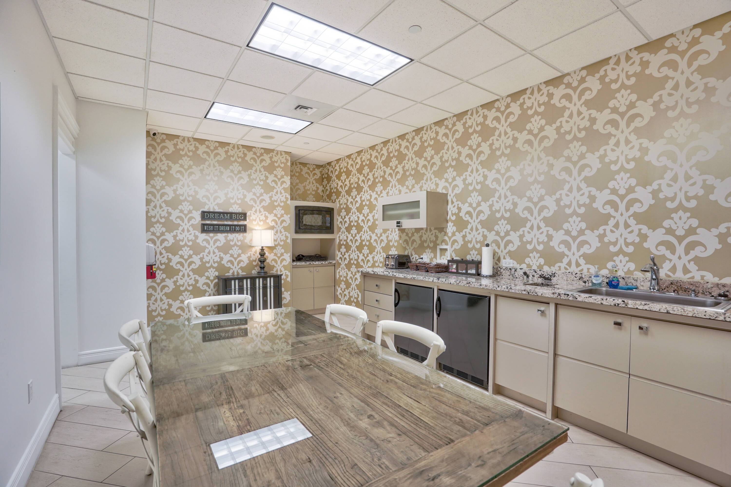 Beautiful office suite with a tiled reception area, large conference room, kitchenette,...