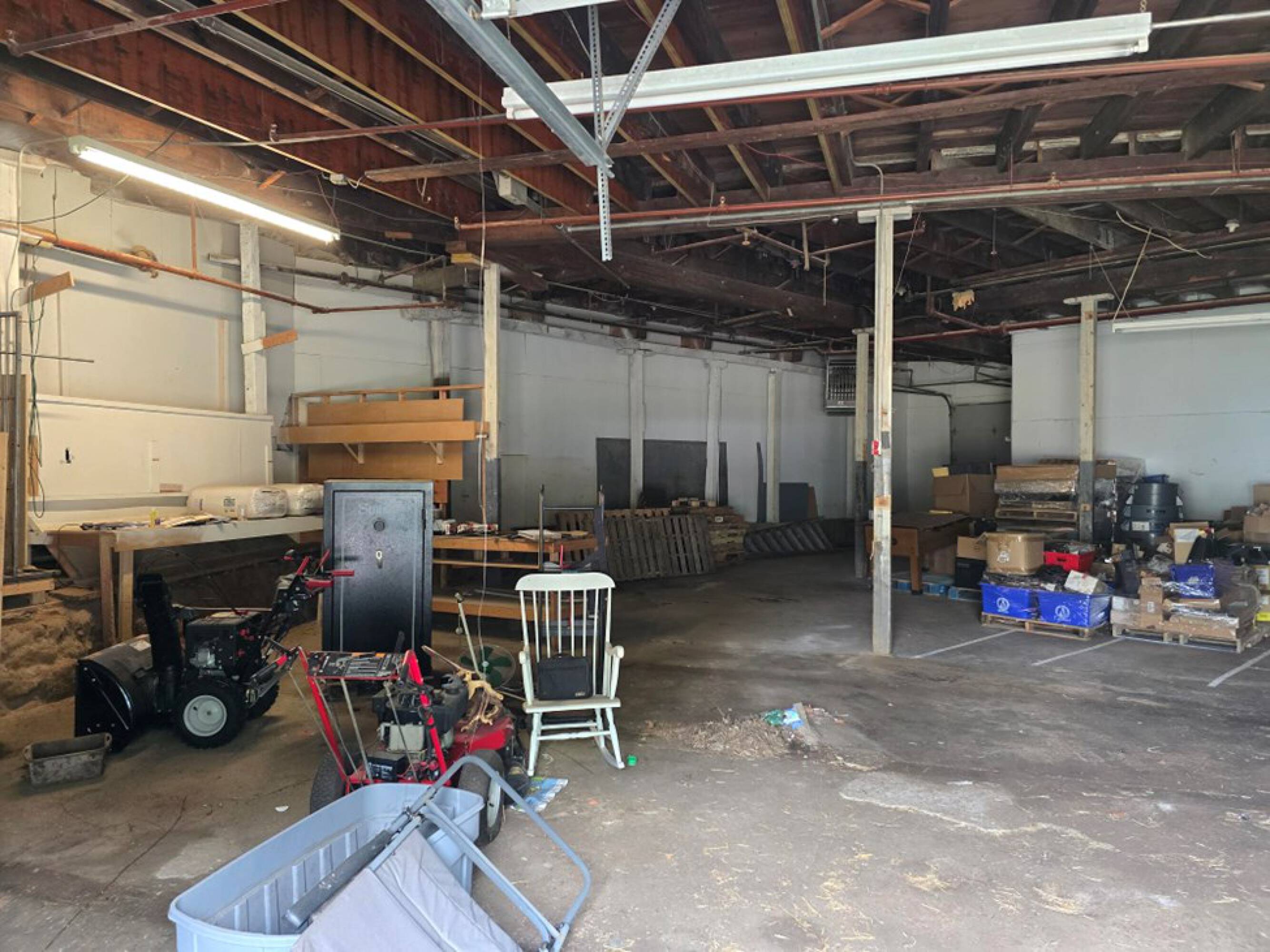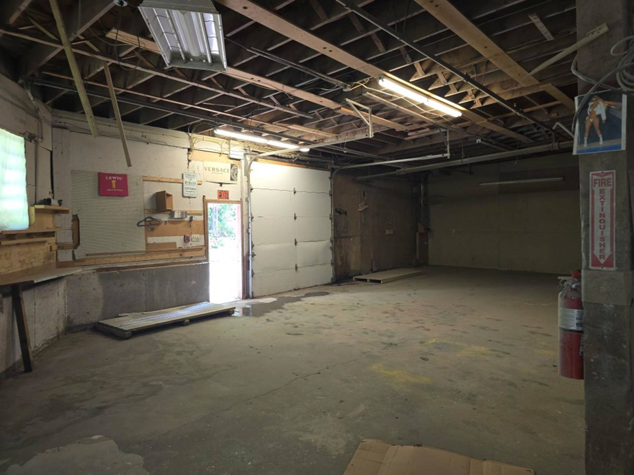 Warehouse space with loading dock and drive-in door available.