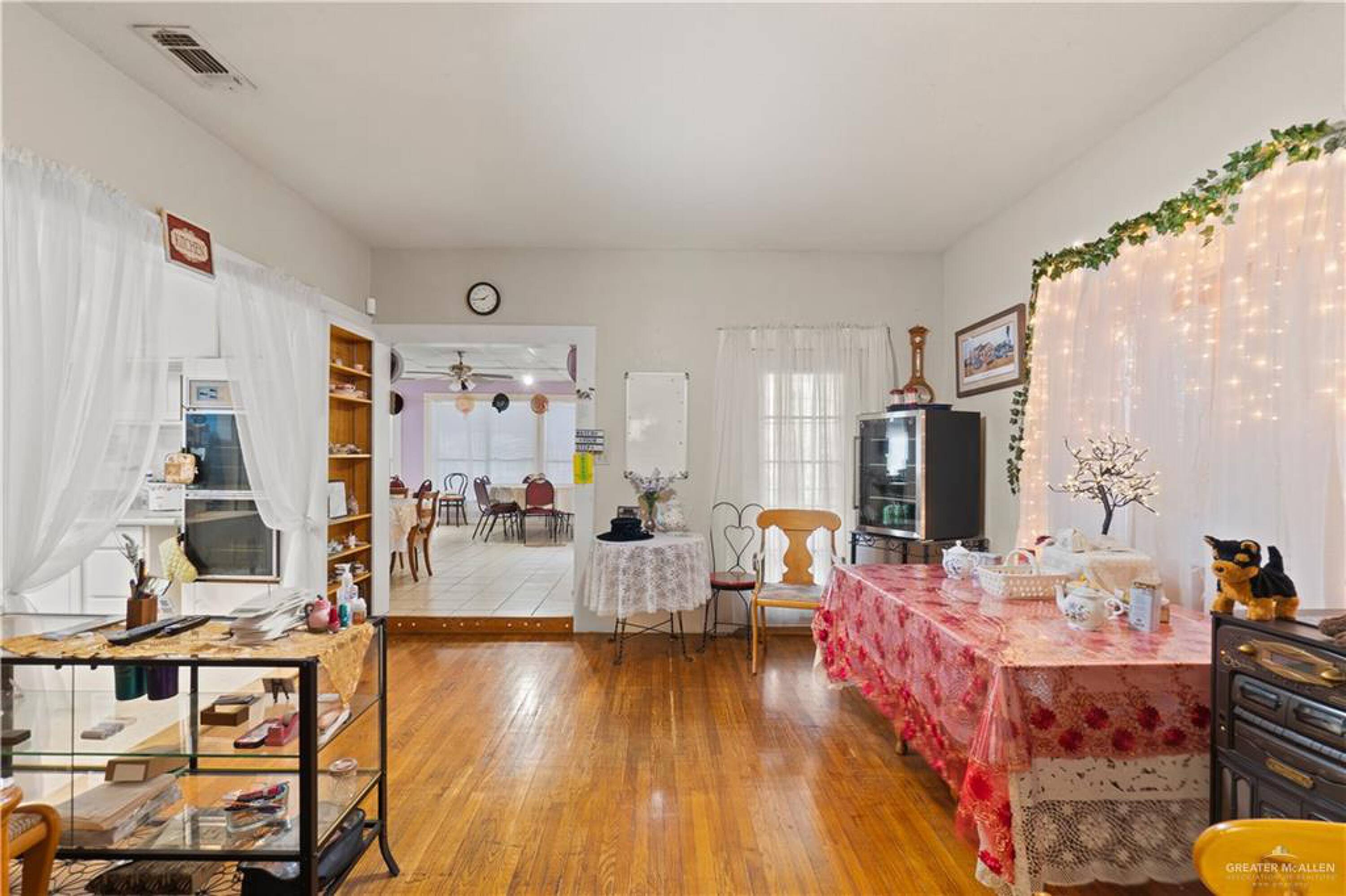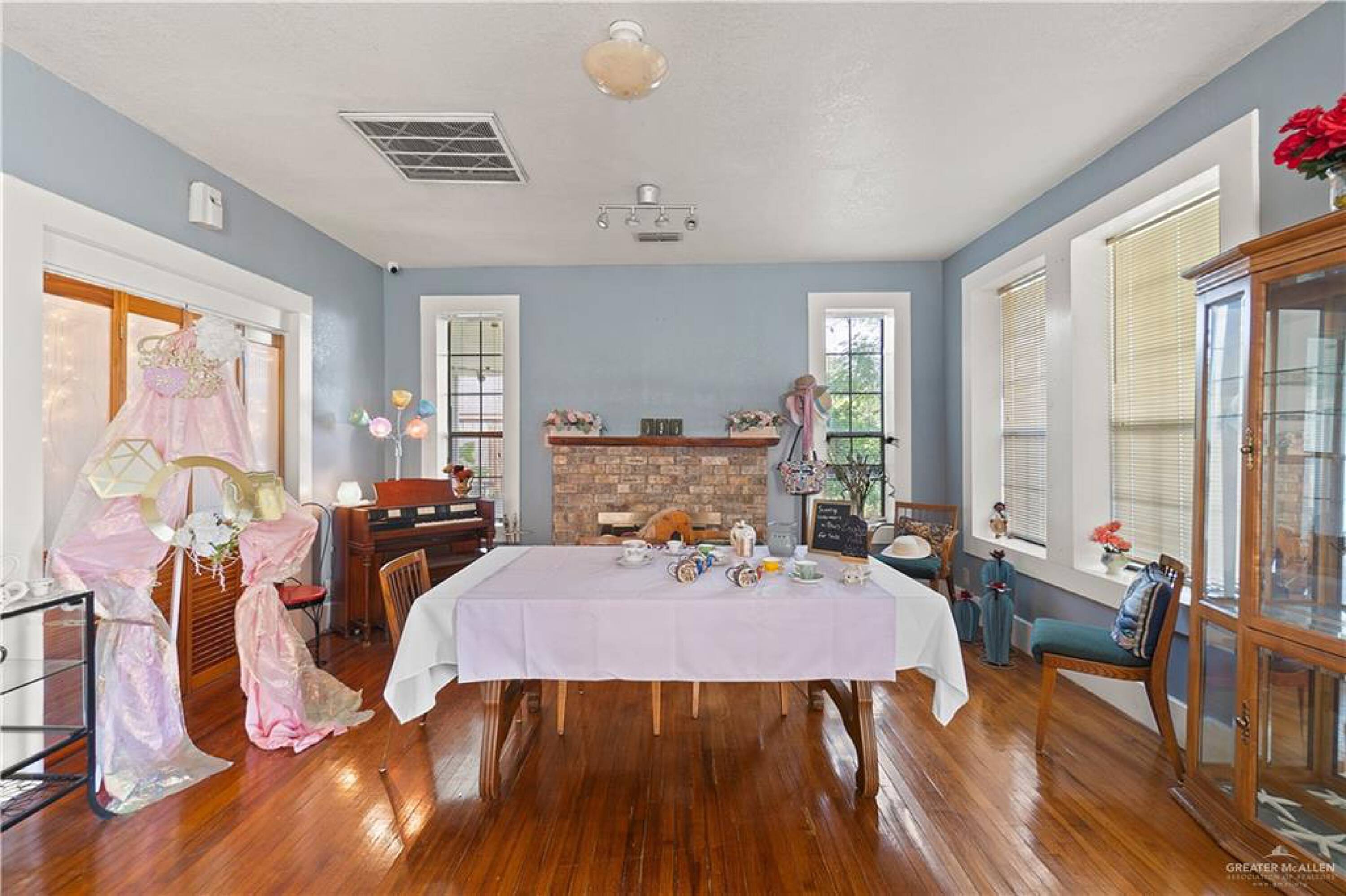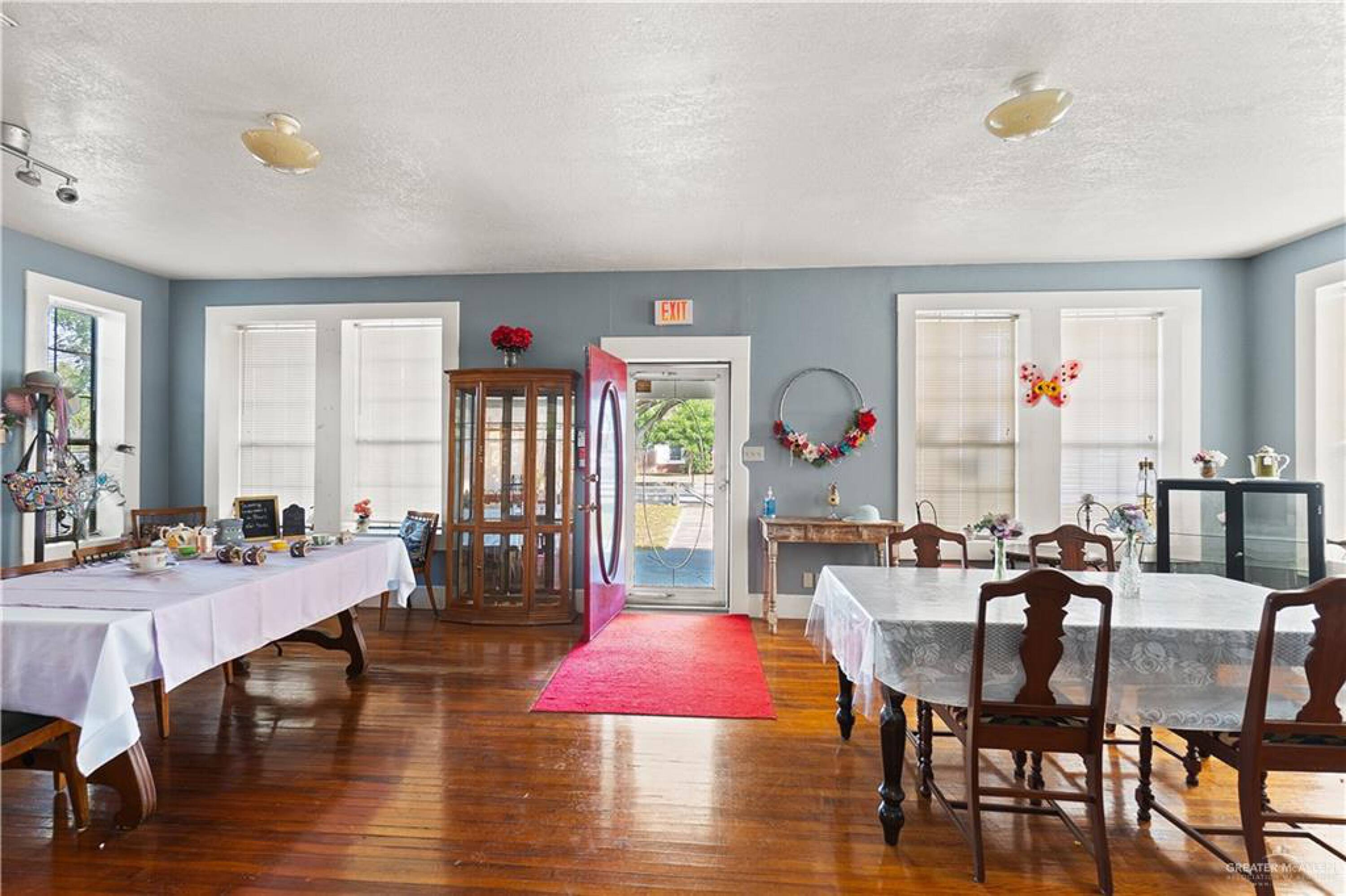 This converted home, previously used as a tea room for lunches and events, offers space for various rooms or offices. It is located near UTRGV and down the street from the courthouse and polling center, with quick access to the expressway. The property is suitable for an attorney's office, event planning, or a community center. The property size is 2478 square feet and includes two restrooms.