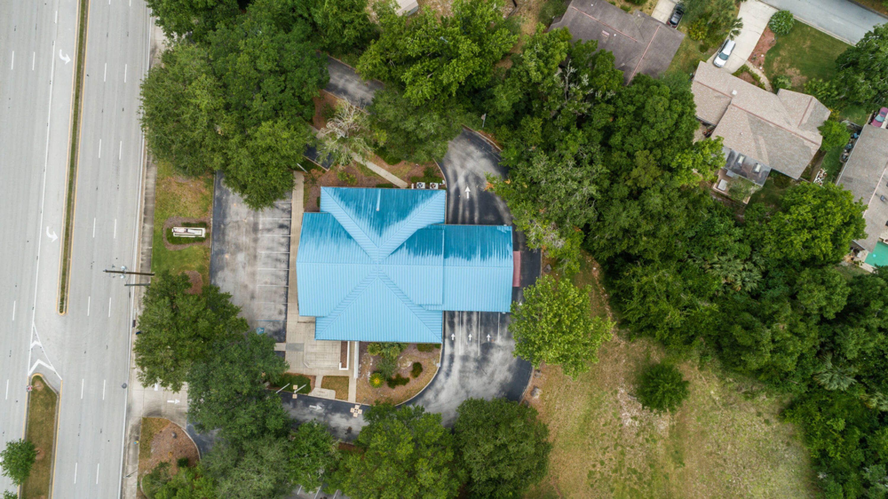 5,060 SF former bank with three drive-thru lanes.