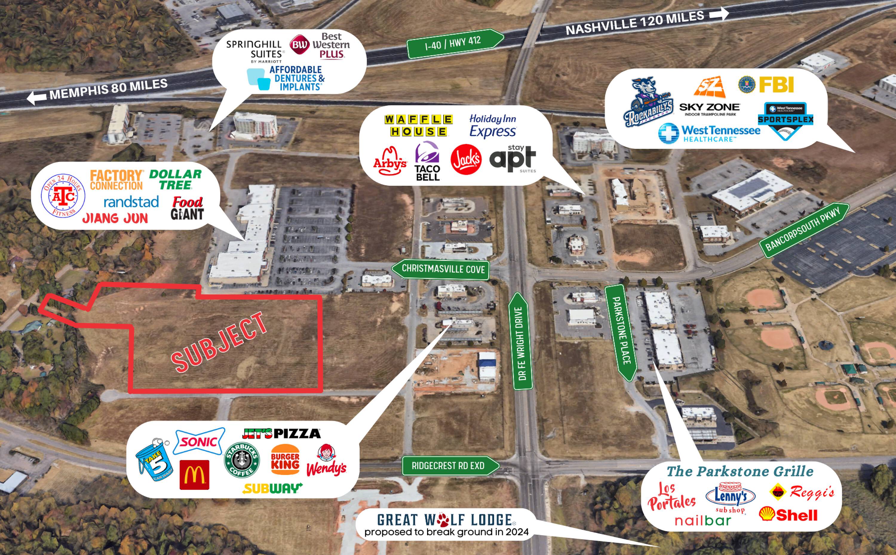 This property features: Located at Exit 85, Jackson's fastest growing exit.; Anchored by Jackson Ball Park with over 300,000 visitors.; Proximity to Future Great Wolf Lodge.