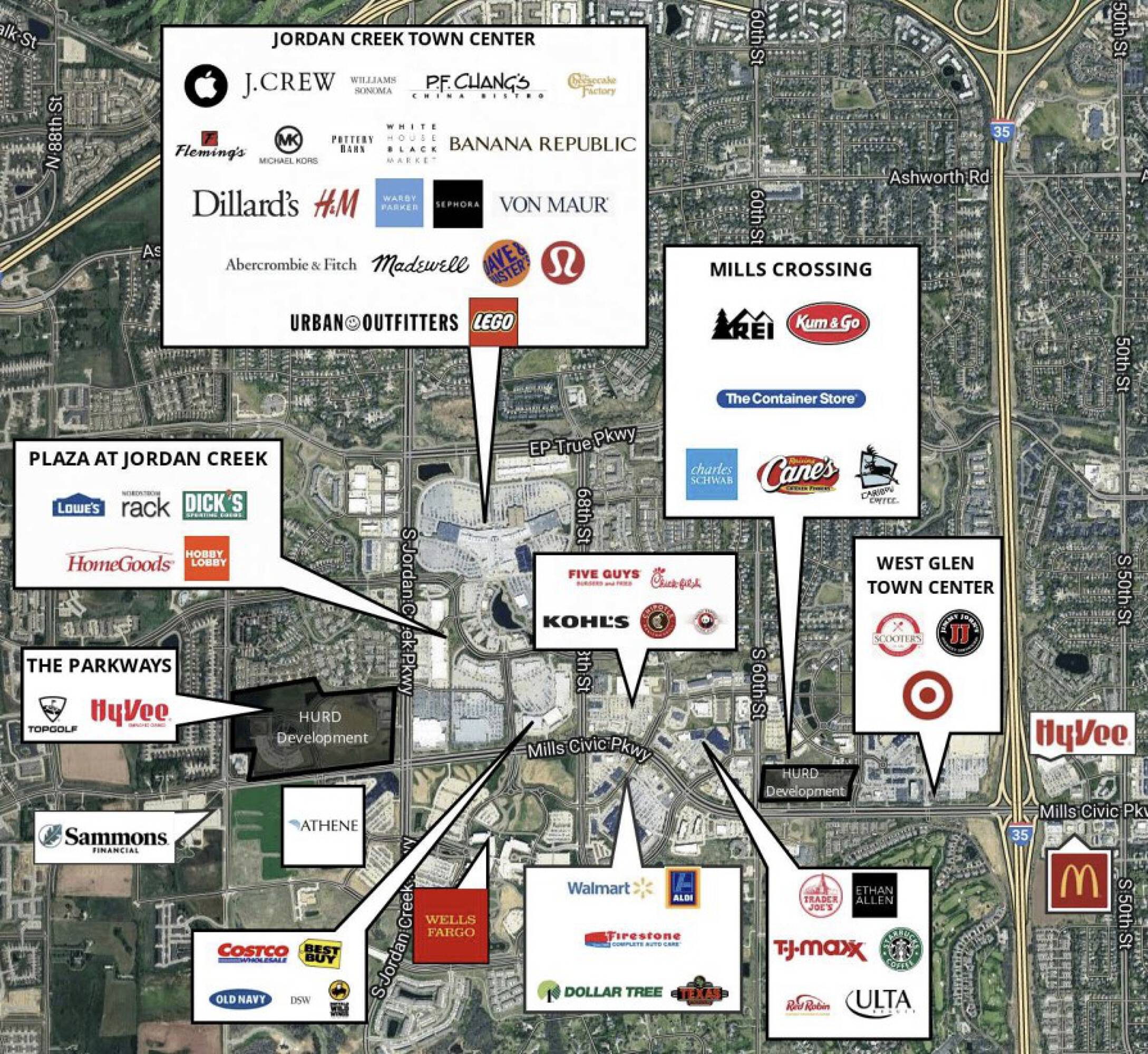 REI Bike Shop (Bike/Boat/Book/etc) Store Mills Crossing Shopping Center & Mall Kum & Go Gas Station Alysha Osborne, Iowa ... Real Estate Agency Iowa Realty Dan ... Real Estate Agency