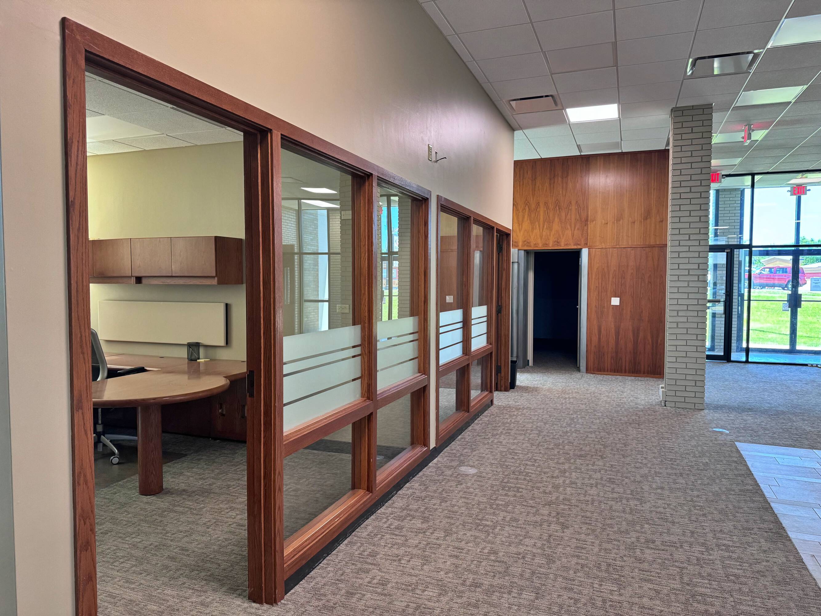 This property features: High visibility and access in a sought‑after location.; Former bank property with **existing vault, teller line, and drive‑thru**.; **Spacious lobby, offices, and conference room** on the main level.