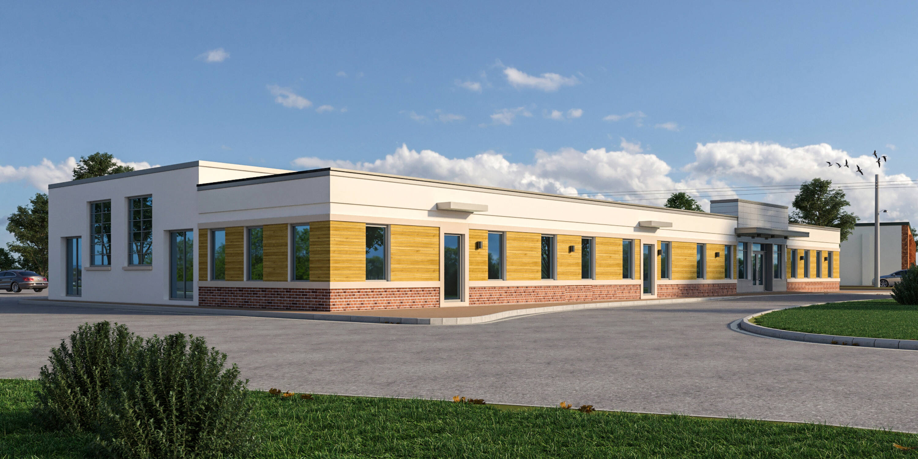 Freestanding building suitable for offices or daycare center.