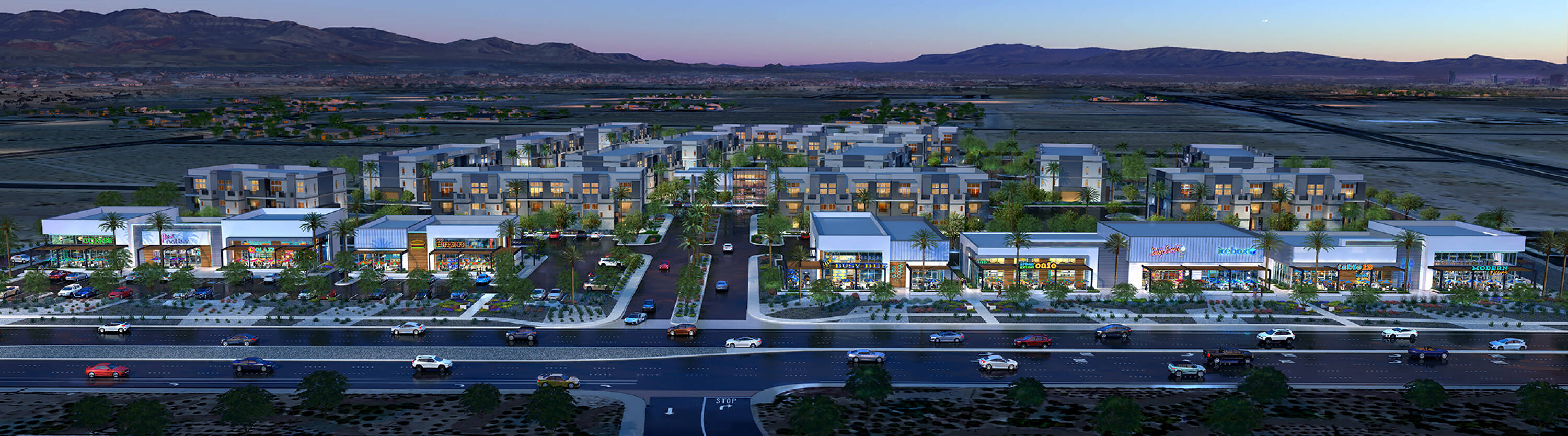 Retail and restaurant spaces for lease in booming southwest Las Vegas.