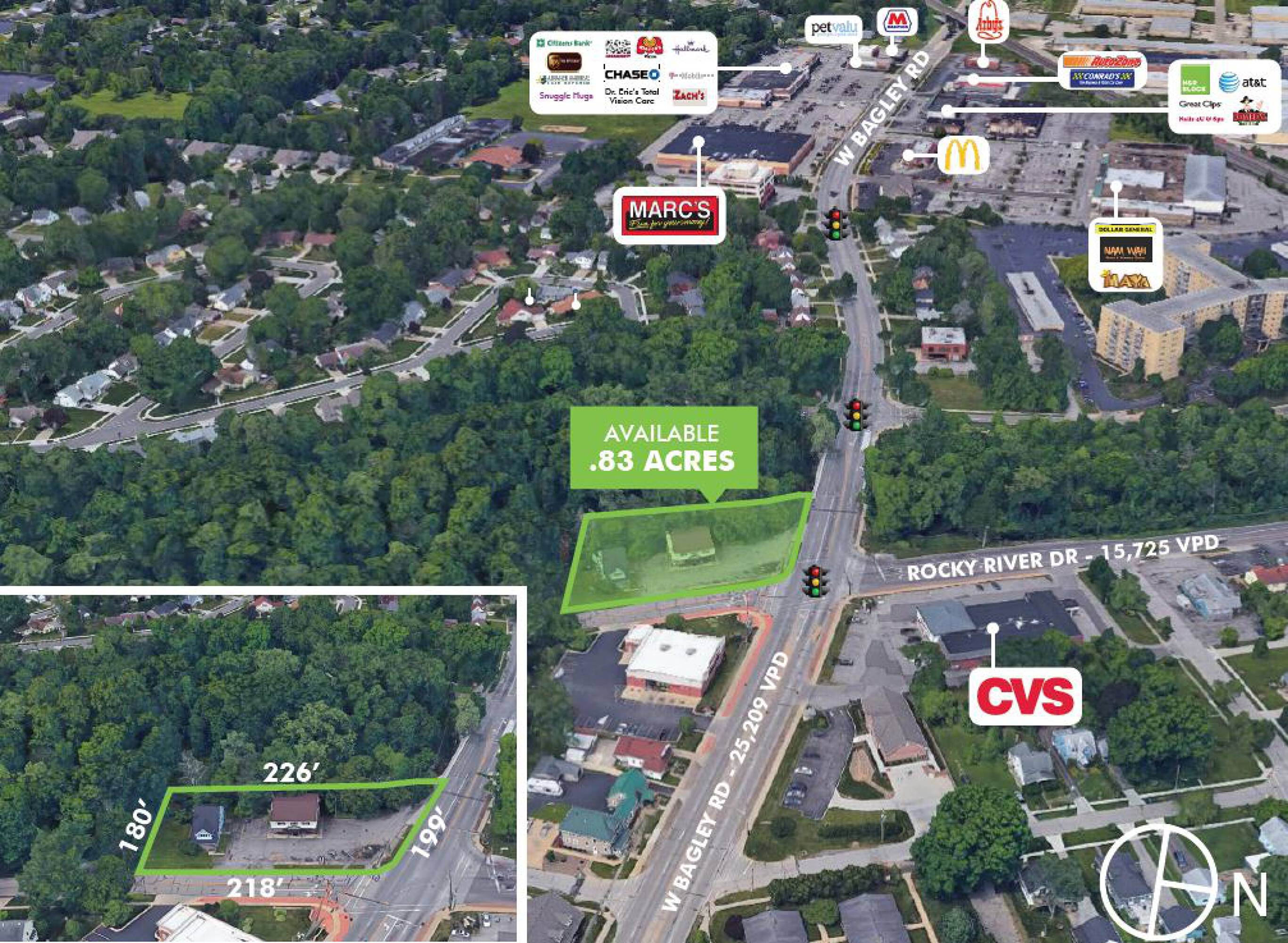 0.83 acre commercial land site with high traffic counts.