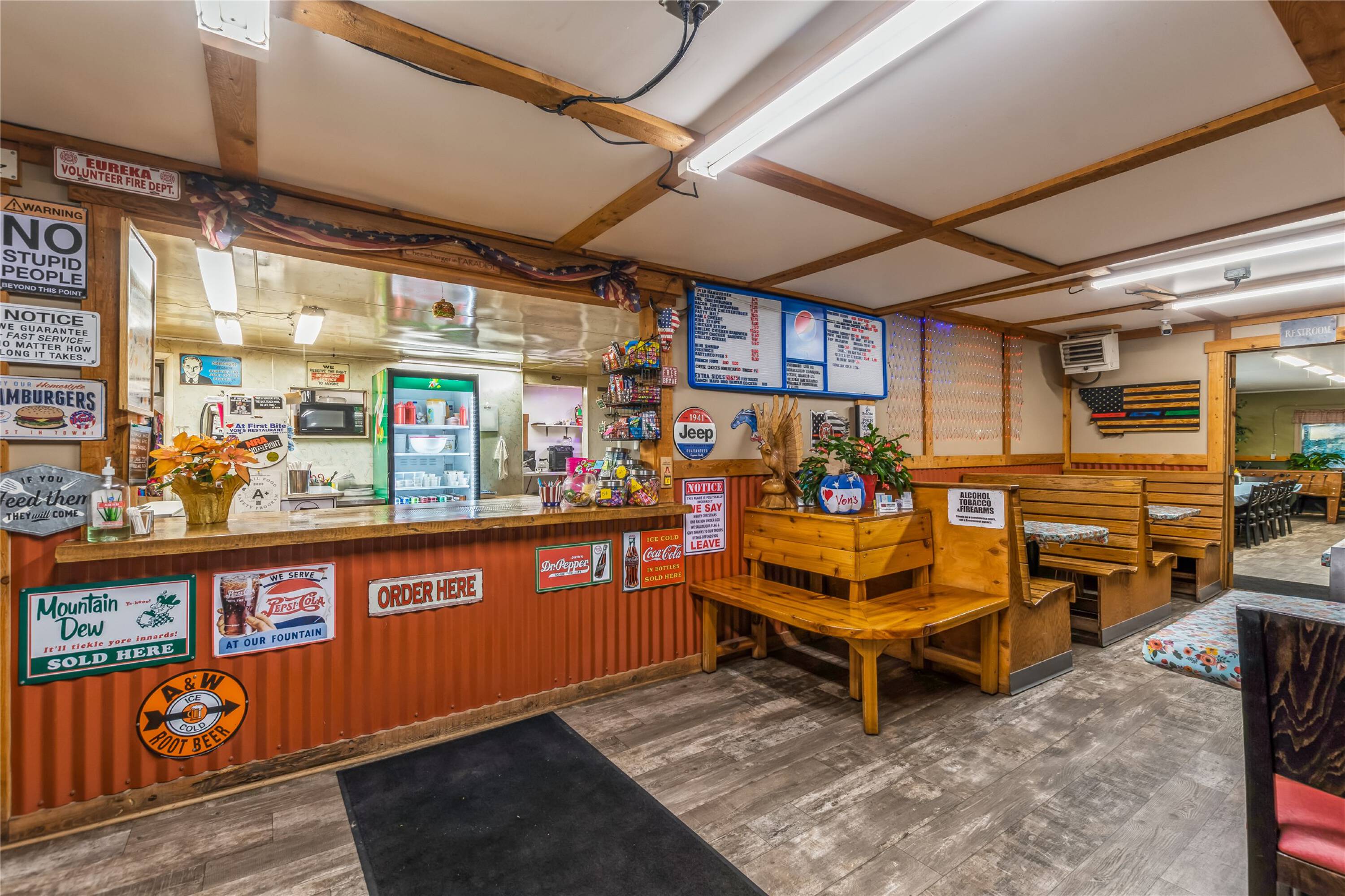 This property features: Turnkey business opportunity: Von's Cafe, a fully operational burger restaurant, is ready for immediate takeover.; Established business with a 47‑year legacy and a loyal customer base.; Excellent location in the heart of Eureka.